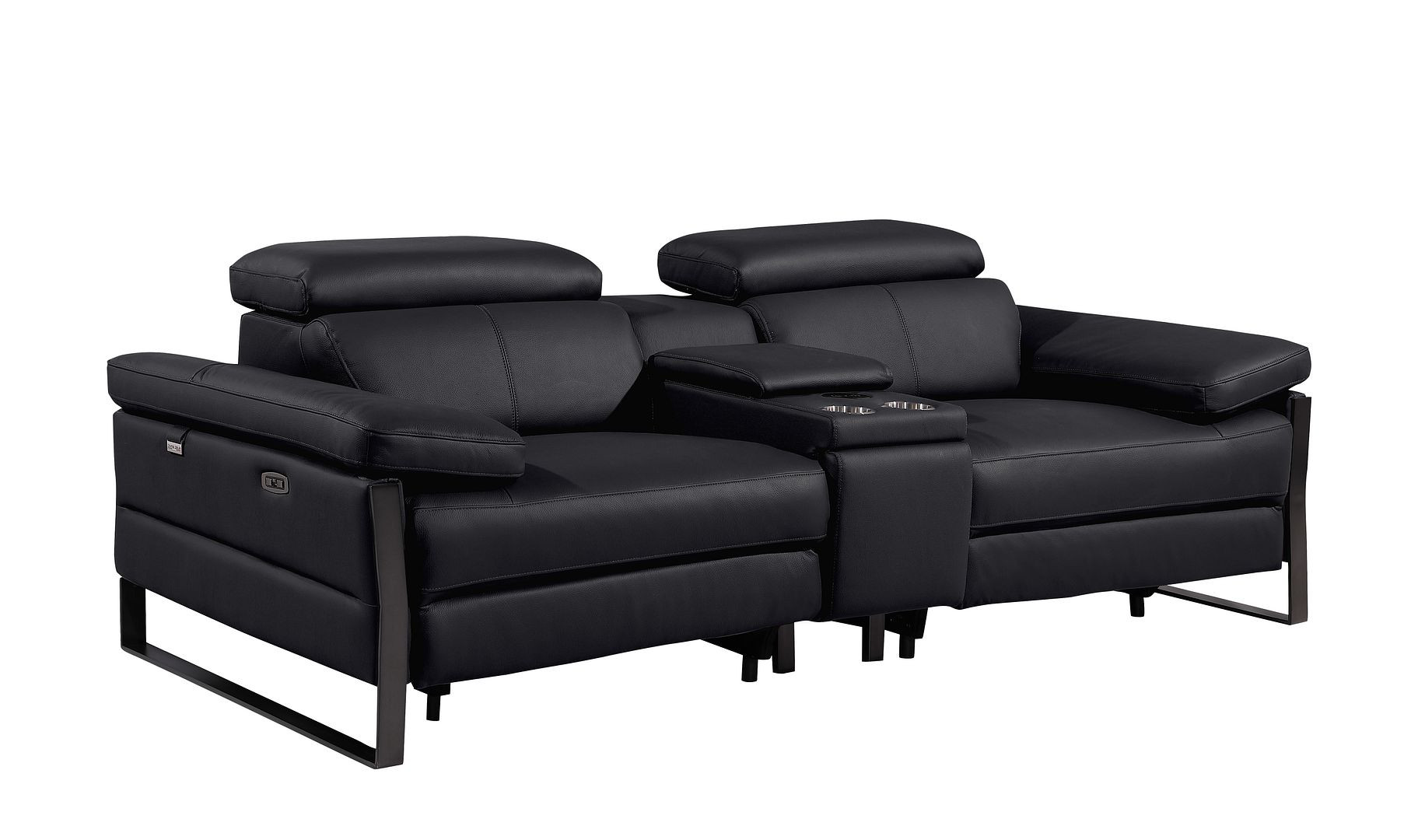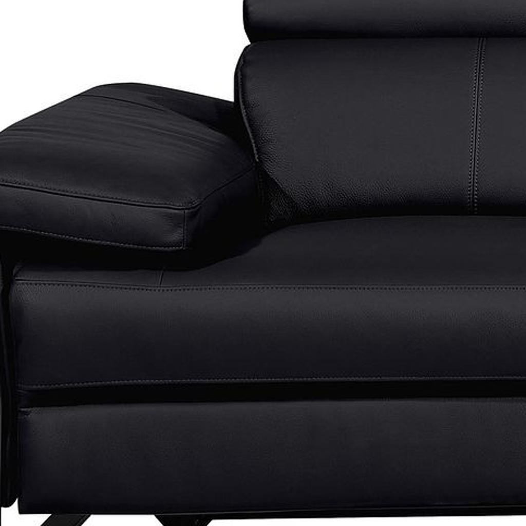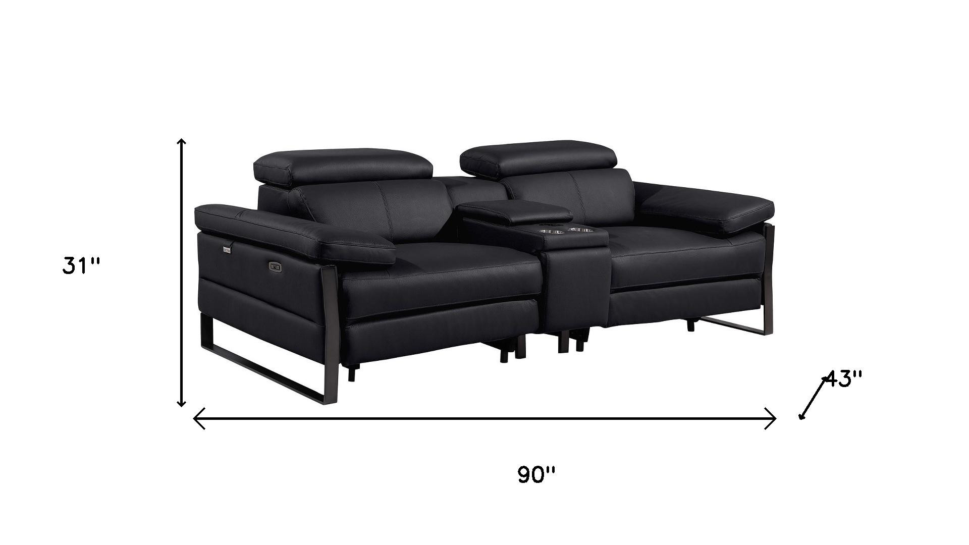 An interior designer's dream, this buttery soft high grade leather 90-inch black italian leather power reclining loveseat with storage will bring just the right touch to your space. The high grade premium leather used makes your lounging luxuriously comfortable and adds an elegant appeal to your space. Rolled arms offer a comfy place to rest and give this piece some interest and shape. Black metal legs effortlessly elevate the room and add a touch of contemporary design. A great showpiece for your room, this sofa is a must have. 31.00-inch h x 90.00-inch w x 43.00-inch d.