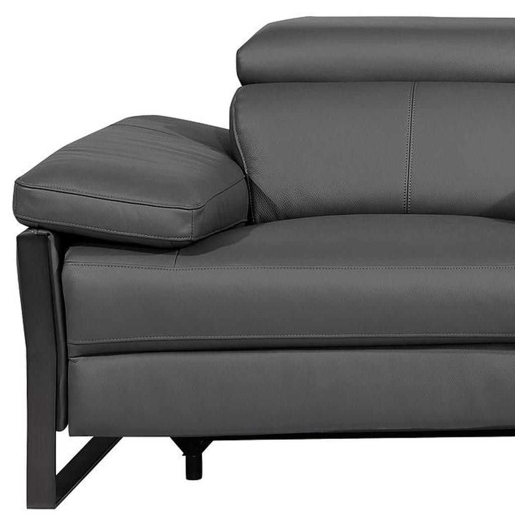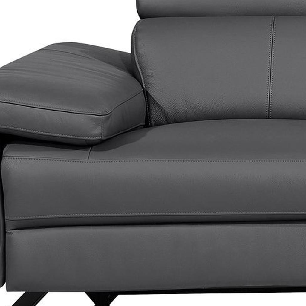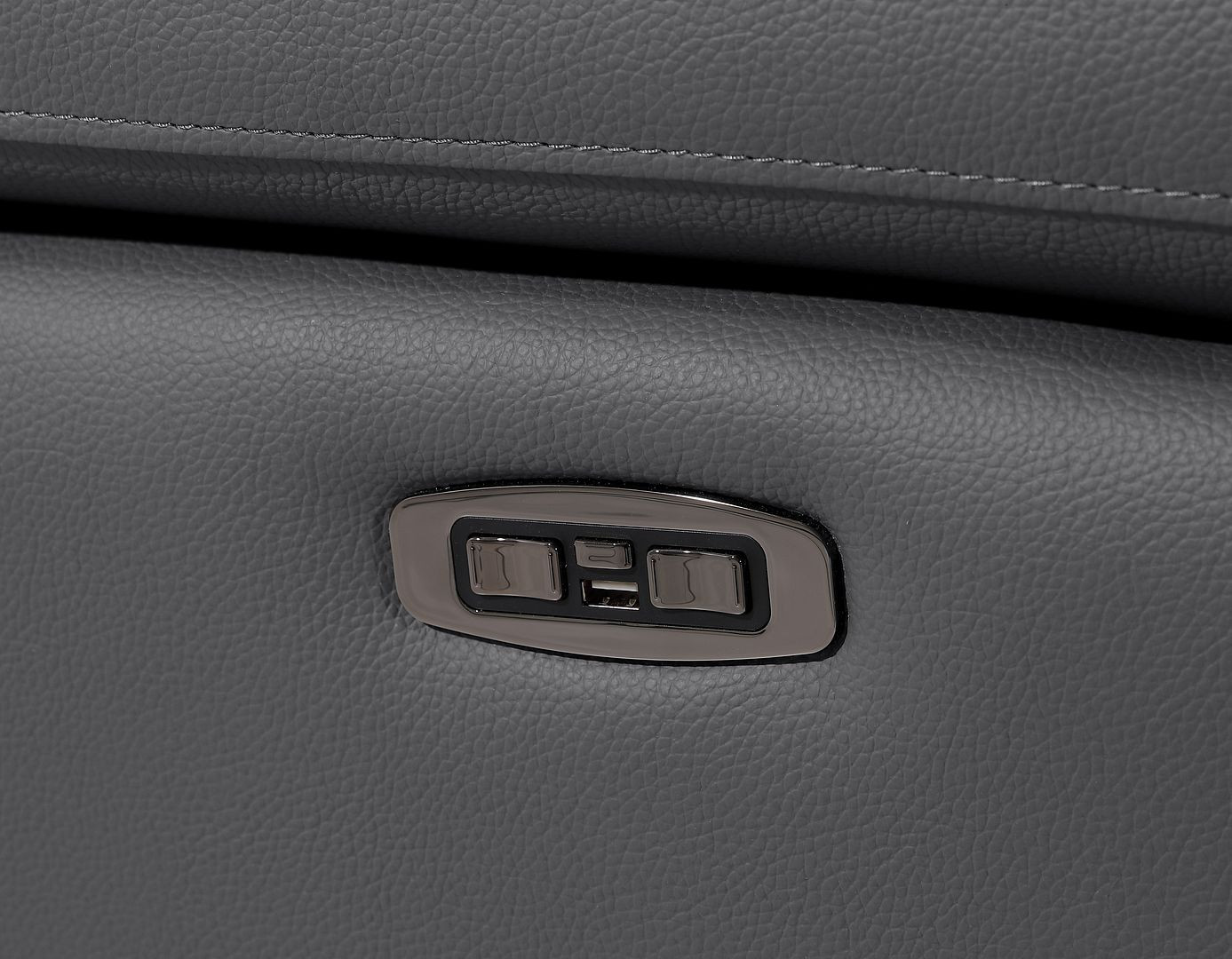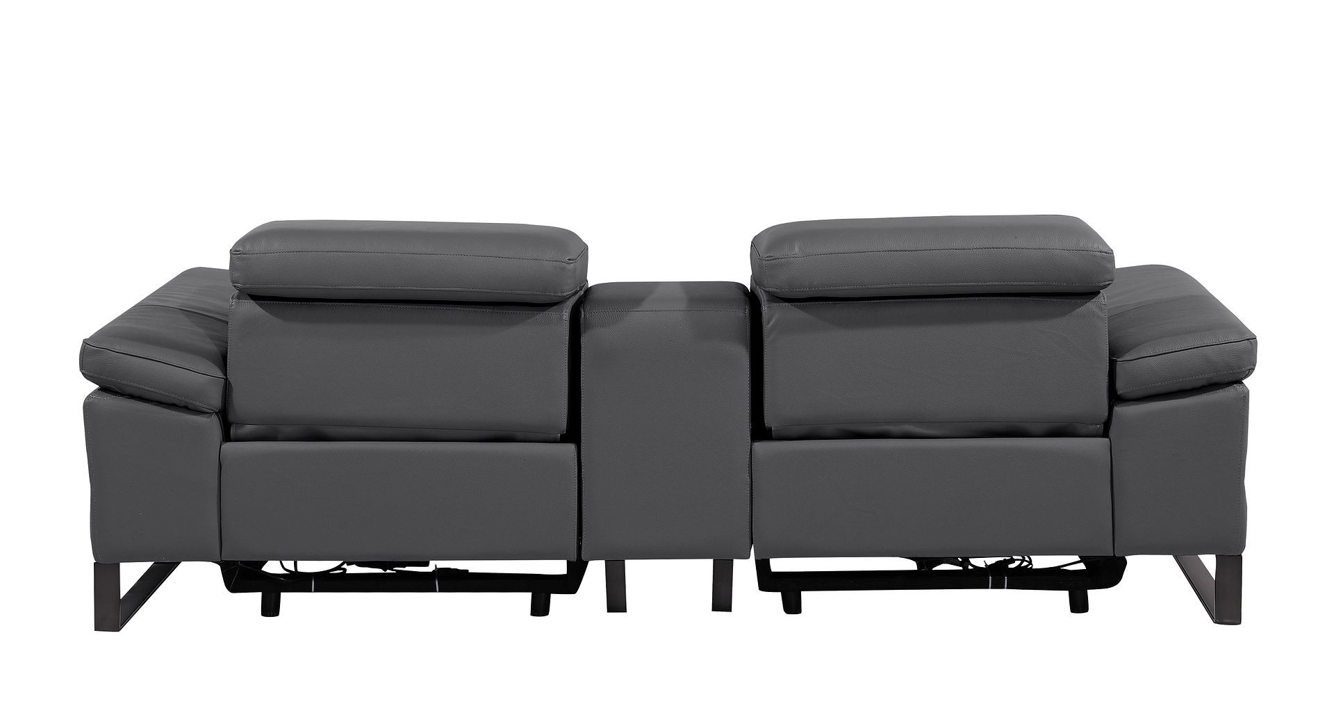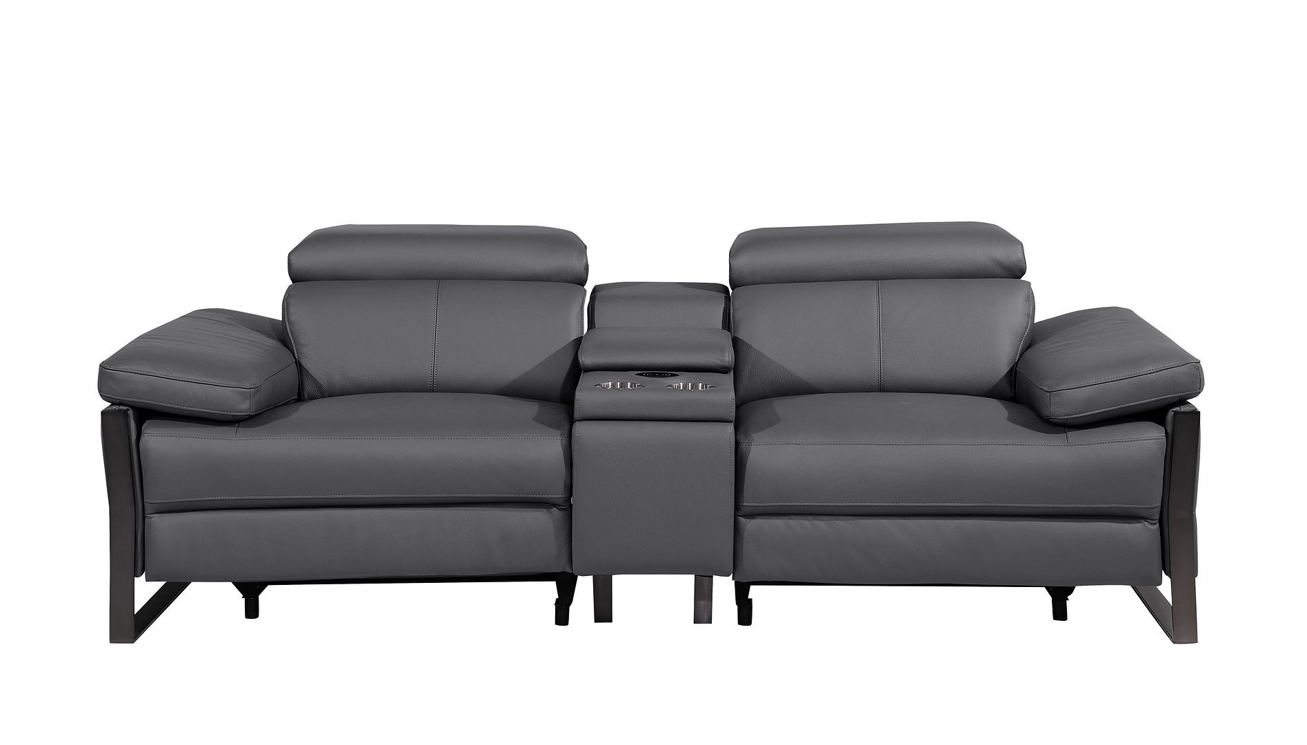 An interior designer's dream, this buttery soft high grade leather 90-inch dark gray and black italian leather power reclining loveseat with storage will bring just the right touch to your space. The high grade premium leather used makes your lounging luxuriously comfortable and adds an elegant appeal to your space. Rolled arms offer a comfy place to rest and give this piece some interest and shape. Black metal legs effortlessly elevate the room and add a touch of contemporary design. A great showpiece for your room, this sofa is a must have. 31.00-inch h x 90.00-inch w x 43.00-inch d.