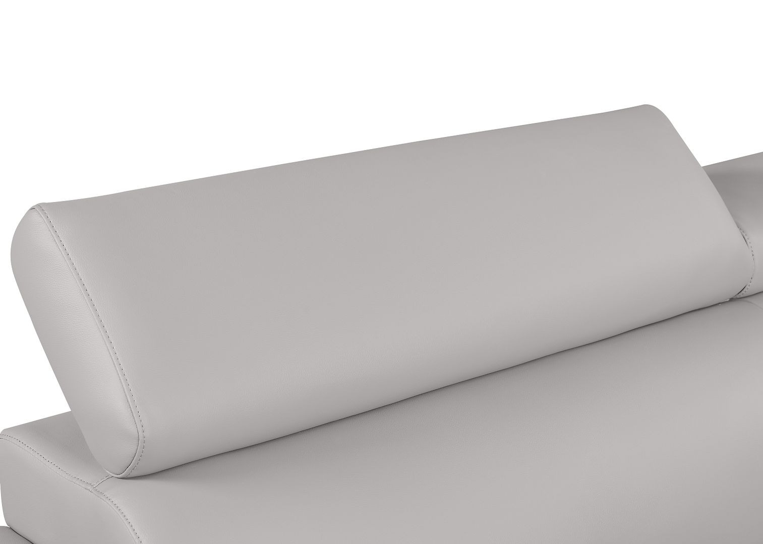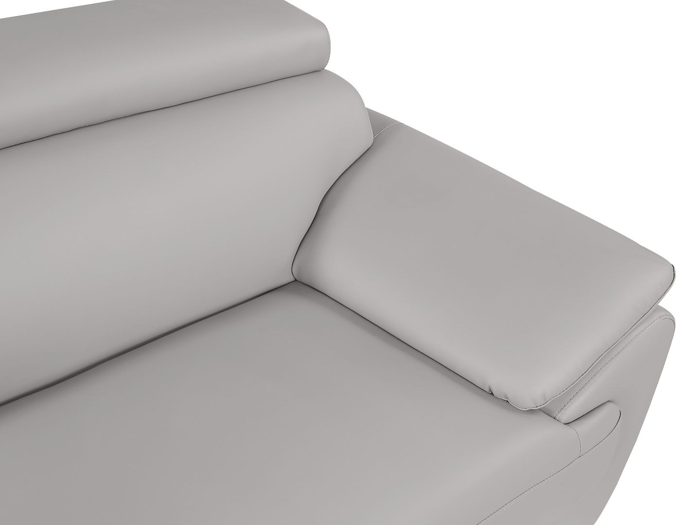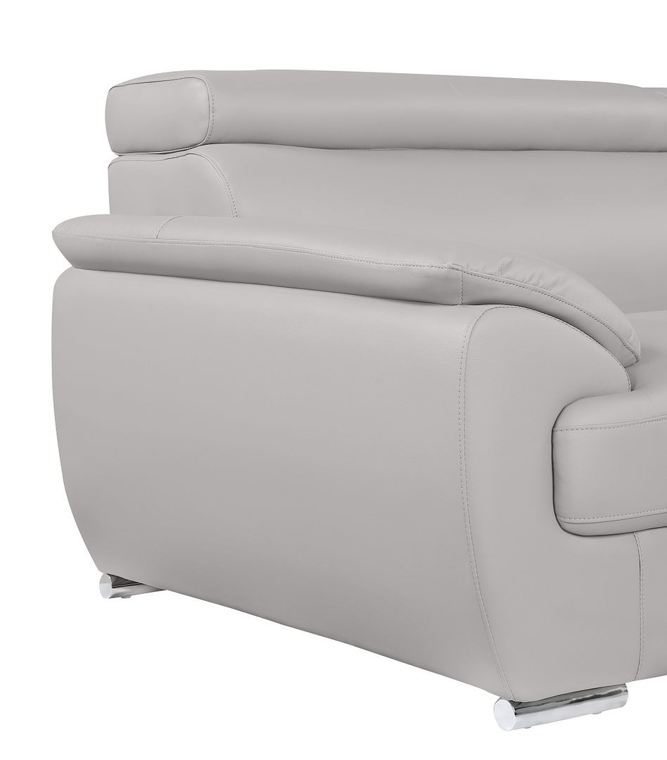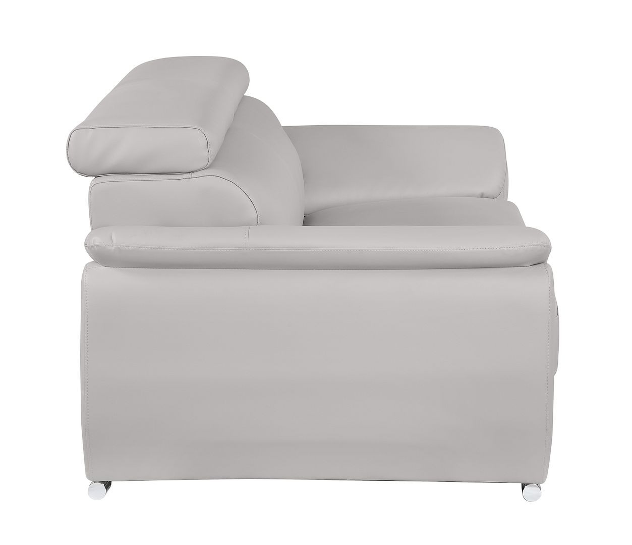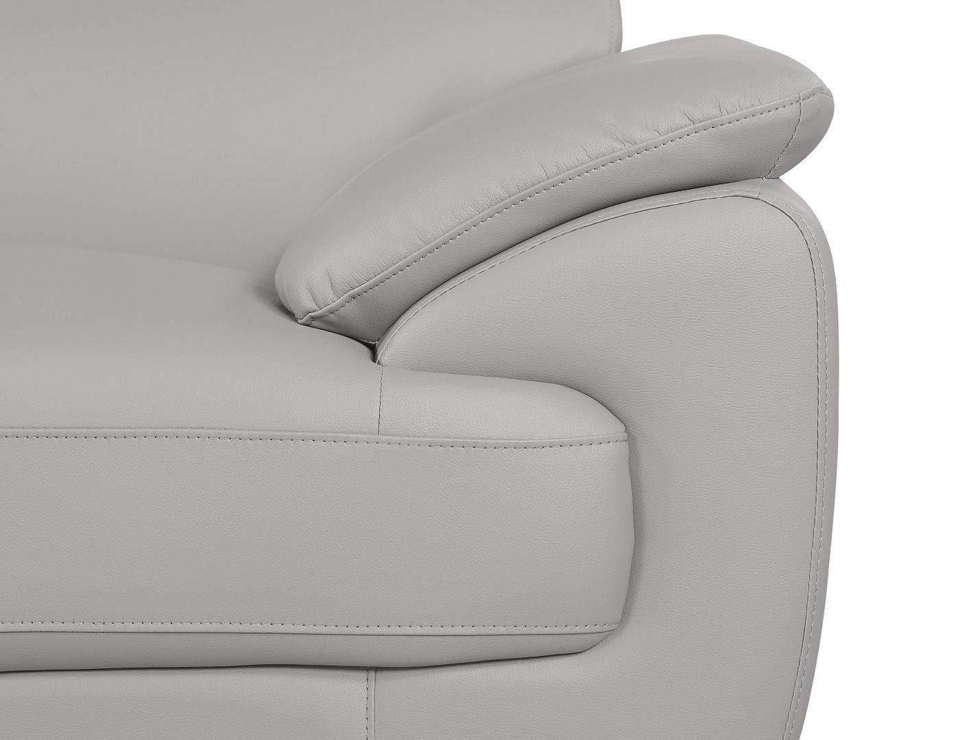 Made of top quality, supple leather, this 69-inch light gray and silver leather loveseat will be the star of your space. The high grade premium leather used makes your lounging luxuriously comfortable and adds an elegant appeal to your space. Round arms offer a comfy place to rest and give this piece some interest and shape. Silver metal legs effortlessly elevate the room and add a touch of contemporary design. A great showpiece for your room, this sofa is a must have. 32.00-inch h x 69.00-inch w x 39.00-inch d.