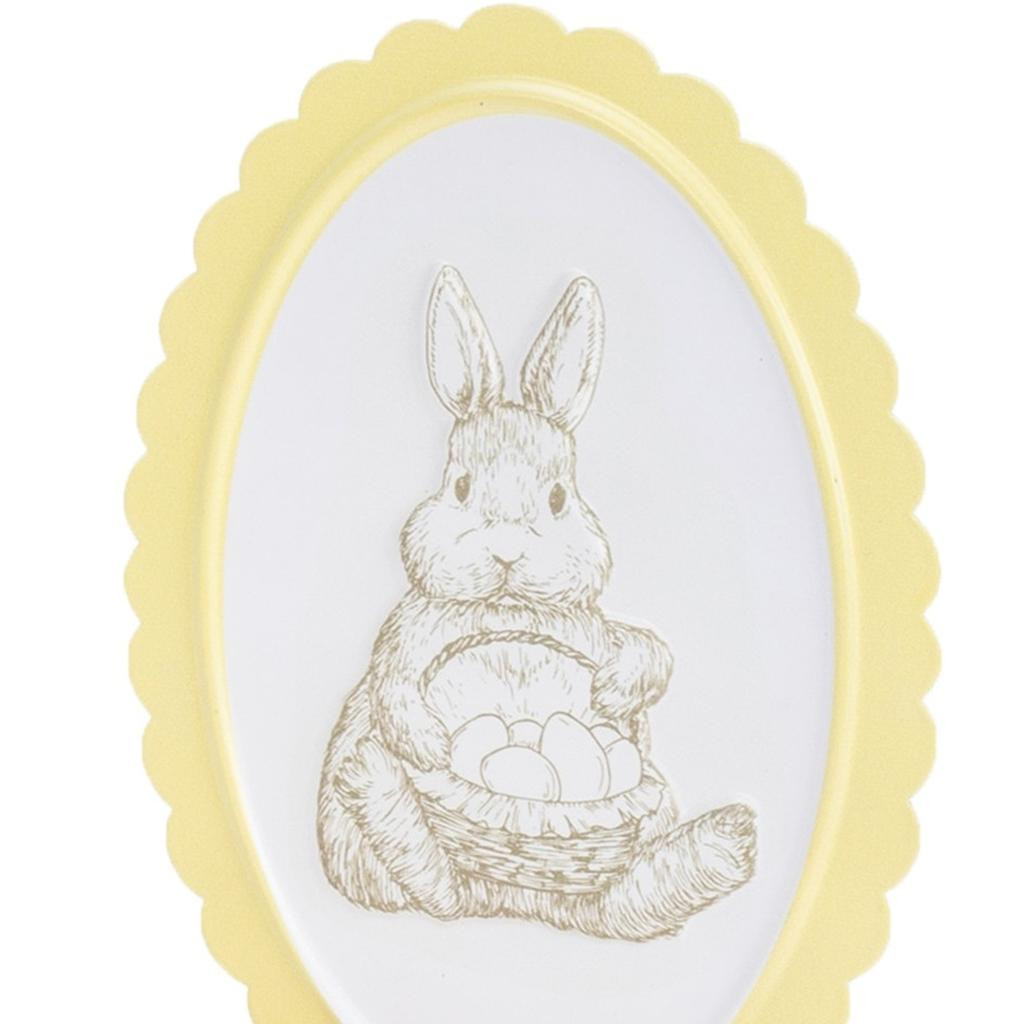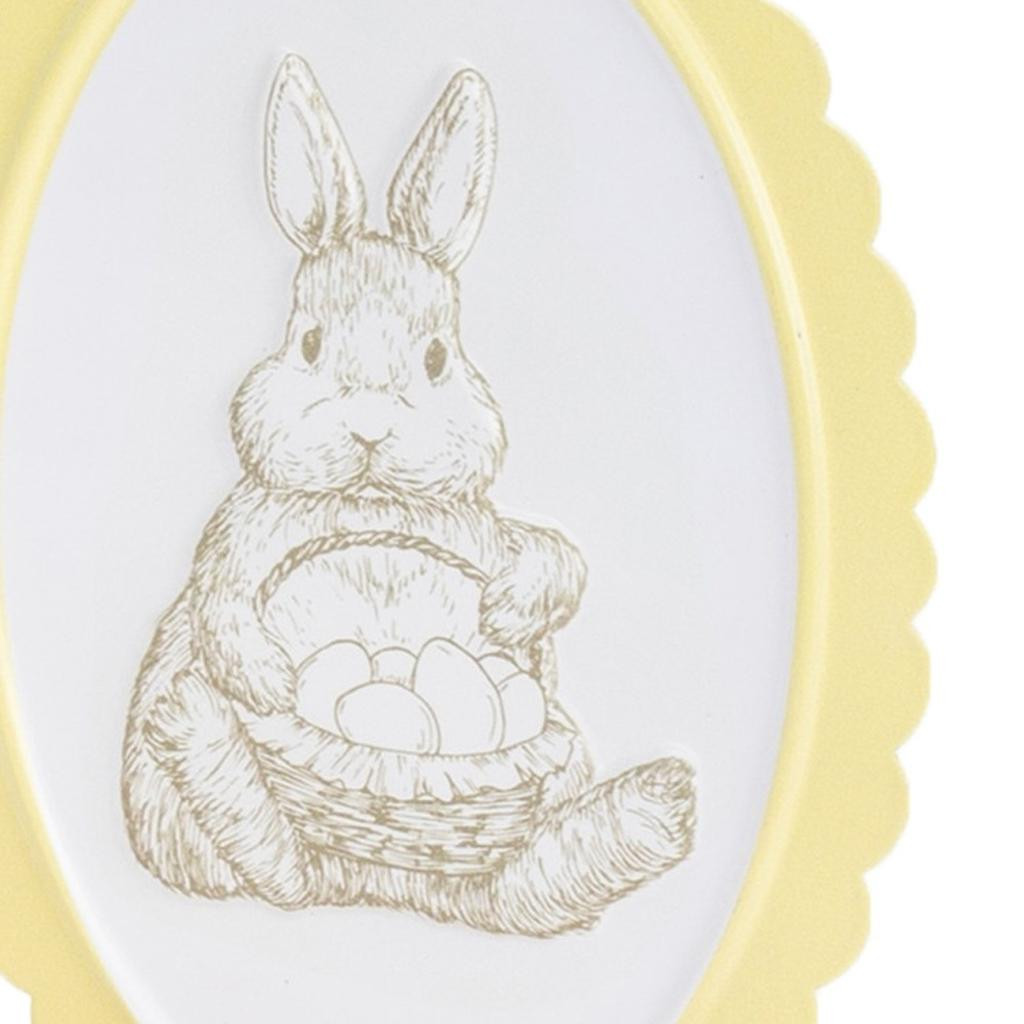 Bring some sizzle to your space with this eye-catching set of two yellow pink and beige iron rabbit tabletop sign. Update your room with this woodland animal decor. A perfect decorative addition for anyone who loves a stylish look and feel. These machine-made sculptures showcase traditional craftsmanship, adding a unique flair to your tabletop. Each piece features adorable rabbit designs that capture the essence of playful charm, making them an ideal choice for animal lovers seeking a whimsical touch in their decor. 8.50-inch h x 6.00-inch w x 2.00-inch d.