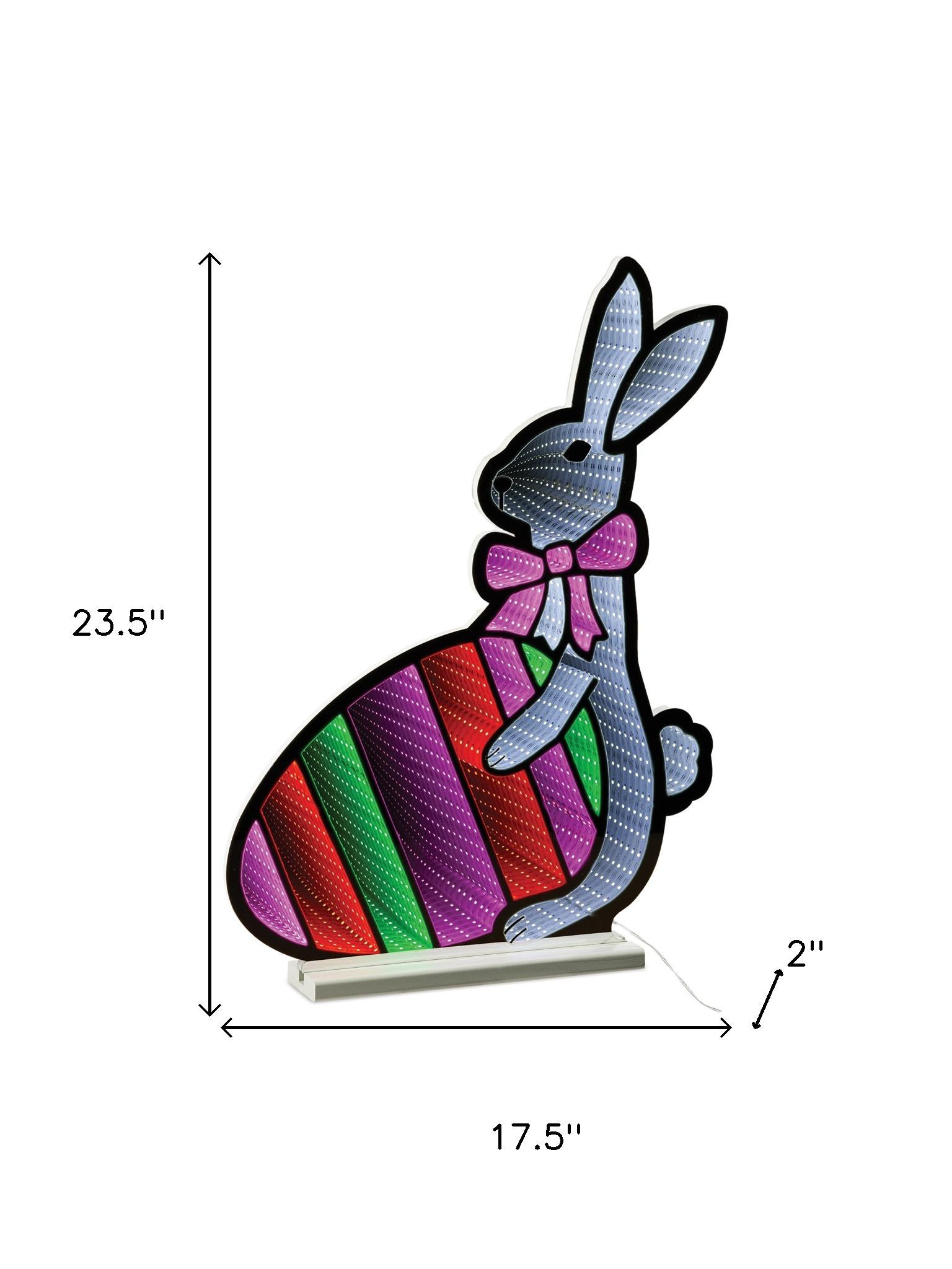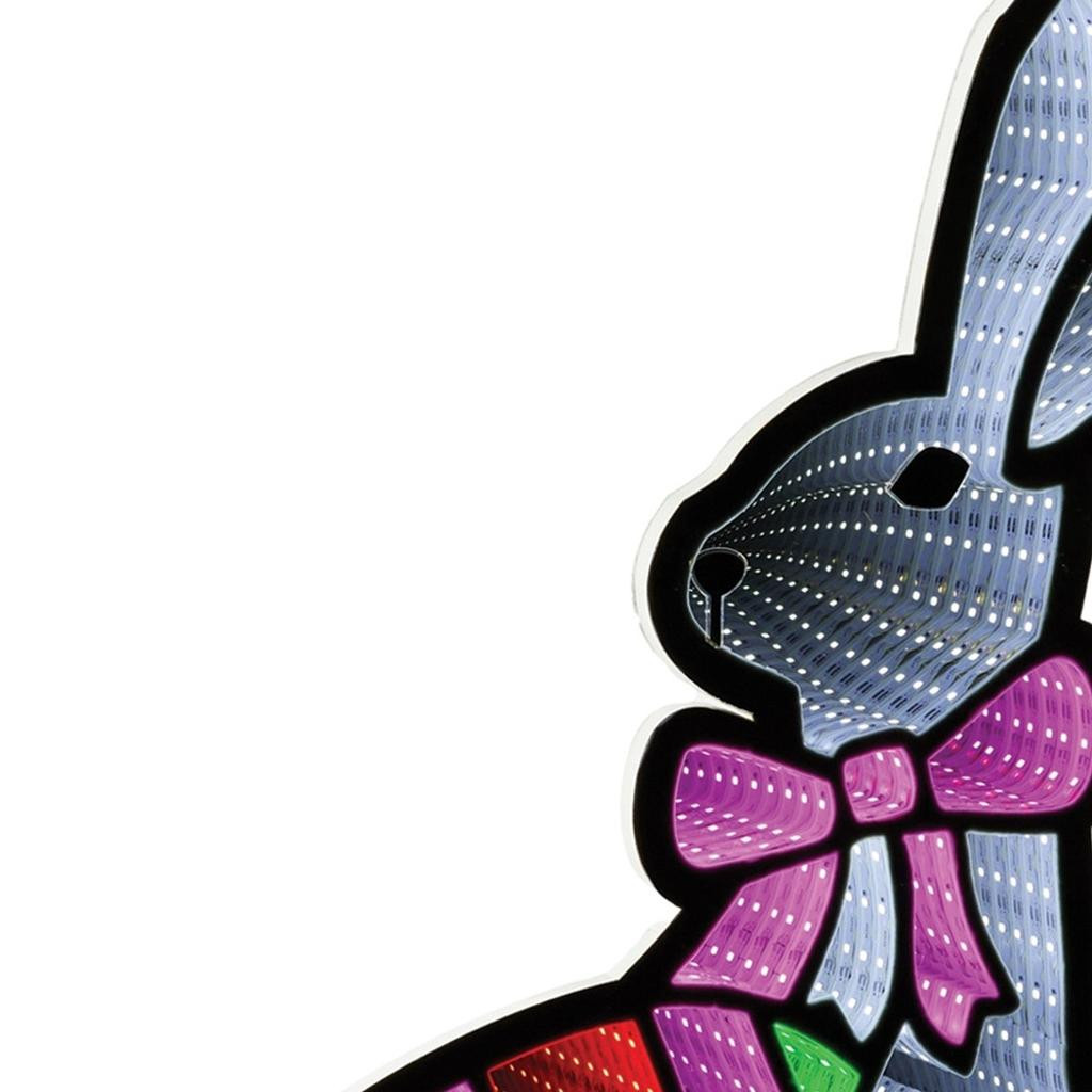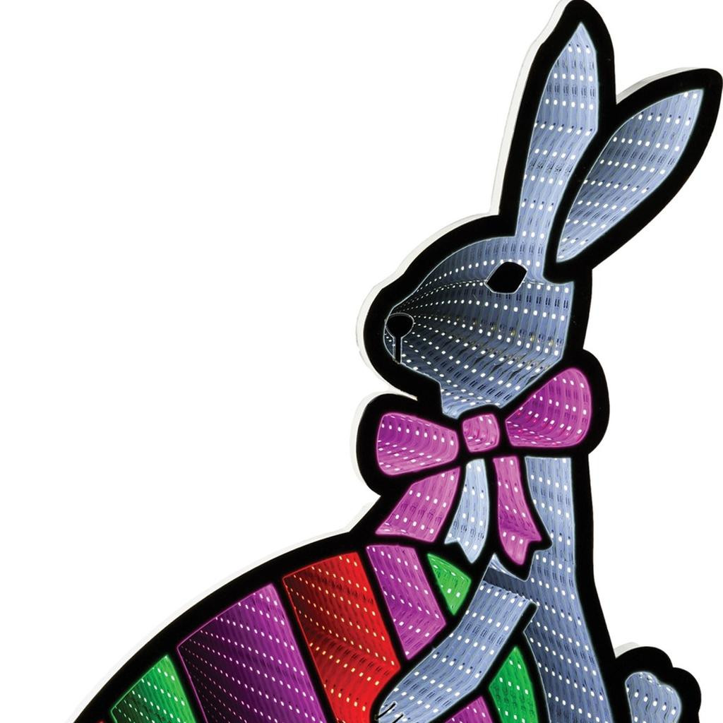 Bring some sizzle to your space with this eye-catching 24-inch white pink green and red plastic rabbit tabletop sculpture with led. Update your room with this woodland animal decor. Led light provides an illuminating effect that adds to the decorative appeal of this special piece. It's a perfect addition for those who love an up-to-the-minute look and feel. 23.50-inch h x 17.50-inch w x 2.00-inch d.