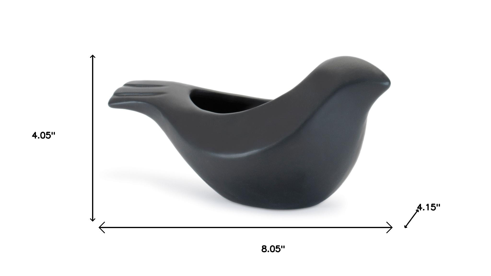 Unique and decorative, this set of two black ceramic bird decorative canister will leave a lasting impression. This pretty bird brings a touch of elegance and some outdoor beauty to your space. Great to use on its own or mix with other decorations for the perfect look. 4.05-inch h x 8.05-inch w x 4.15-inch d.