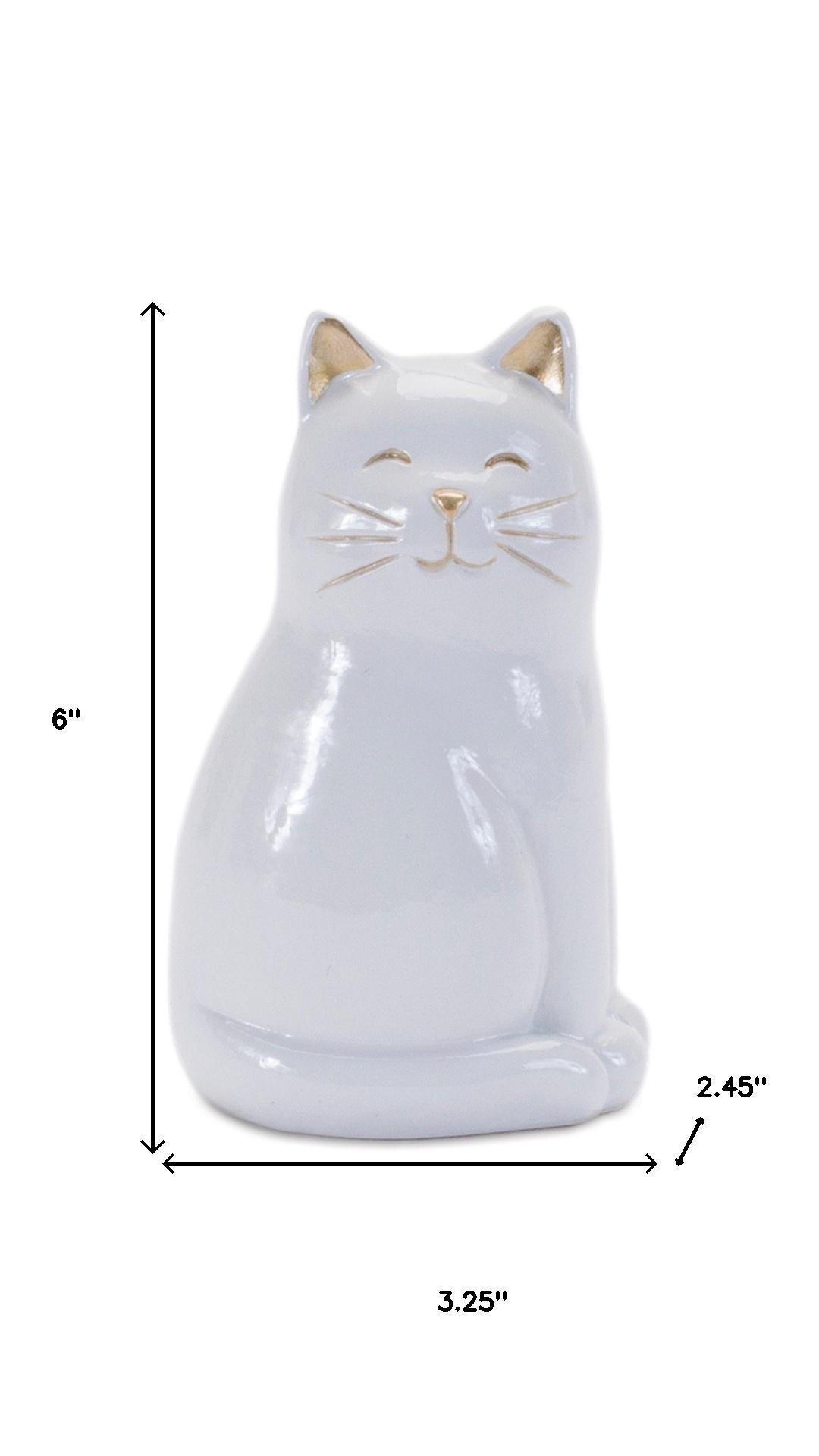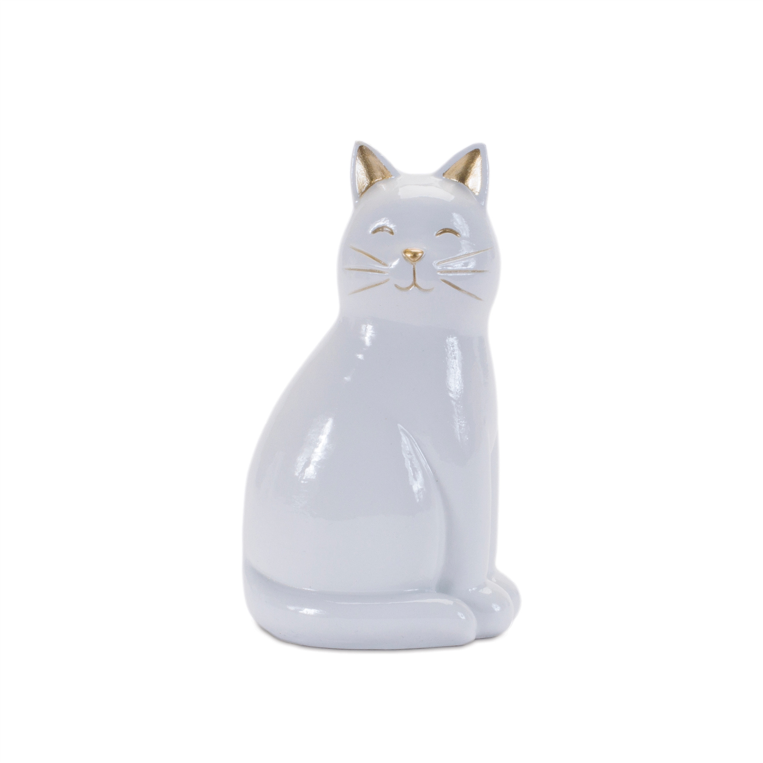 Add an air of fashion to your room and rejuvenate the space with this set of six white and gold polyresin cat figurine. This great feline accent will bring a smile to your face. It's a perfect addition for those who love an up-to-the-minute look and feel. 6.00-inch h x 3.25-inch w x 2.45-inch d.