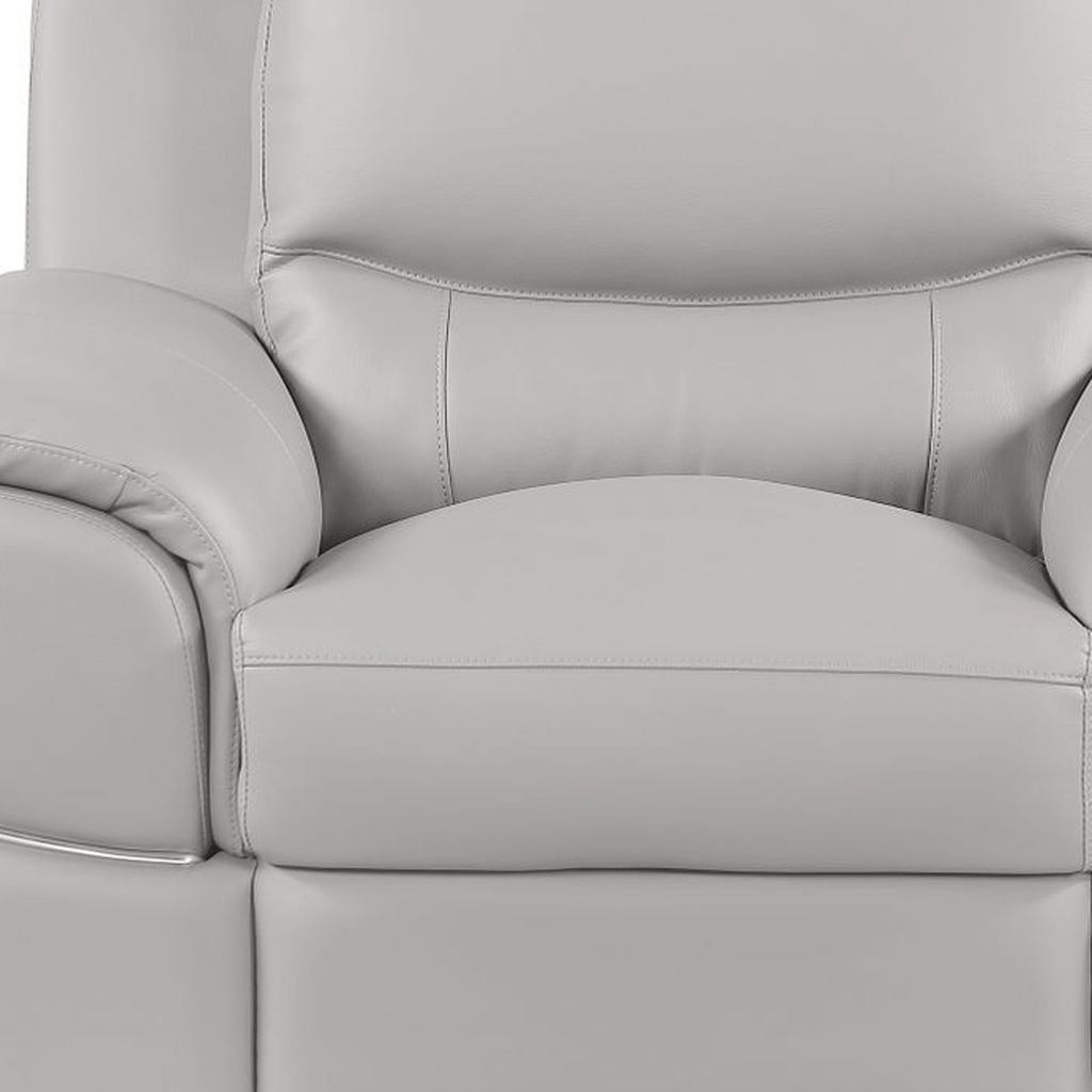 Designer grade genuine leather gives this reclining chair a level of class and comfort to make your seating experience exceptional every day. From morning coffee to evening tv/movie nights and everything in between, this cozy chair will be a welcome addition to your rest and relaxation routine. Recliners are a comfortable and practical option for living room, family room, den, bedroom, or nursery. 35.00-inch h x 45.00-inch w x 34.00-inch d.