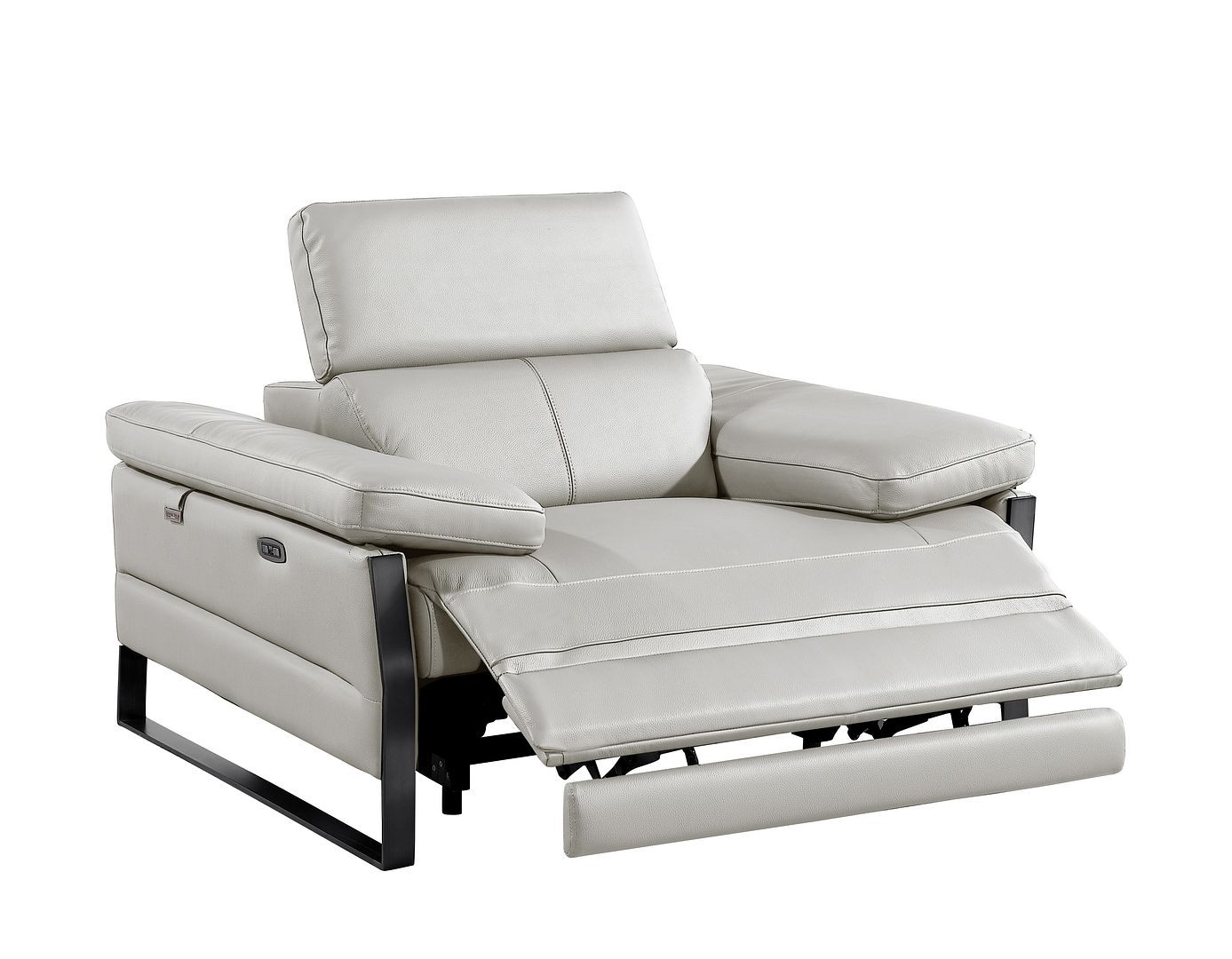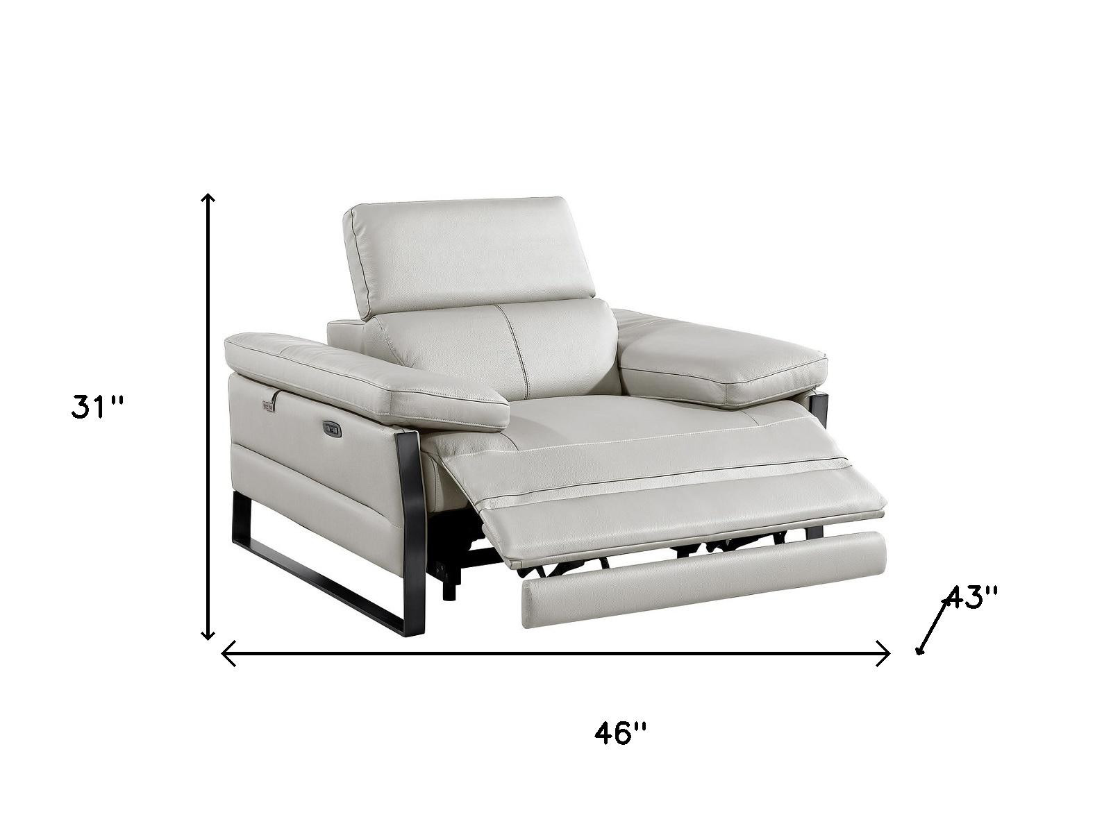 Comfortable and designed with convenience in mind, this 46-inch ash gray italian leather power wall hugger recliner with usb has everything you are looking for. Soft and supple high grade italian leather upholstery makes this chair a great place to rest, nap, or read. The push-button controls make it easy to adjust the angle of your recline. A space-saving option, this wall hugger recliner can be installed in close proximity to the wall because it requires minimal clearance. From morning coffee to evening tv/movie nights and everything in between, this cozy chair will be a welcome addition to your rest and relaxation routine. Take relaxation to the next level with this comfy reclining chair. 31.00-inch h x 46.00-inch w x 43.00-inch d.
