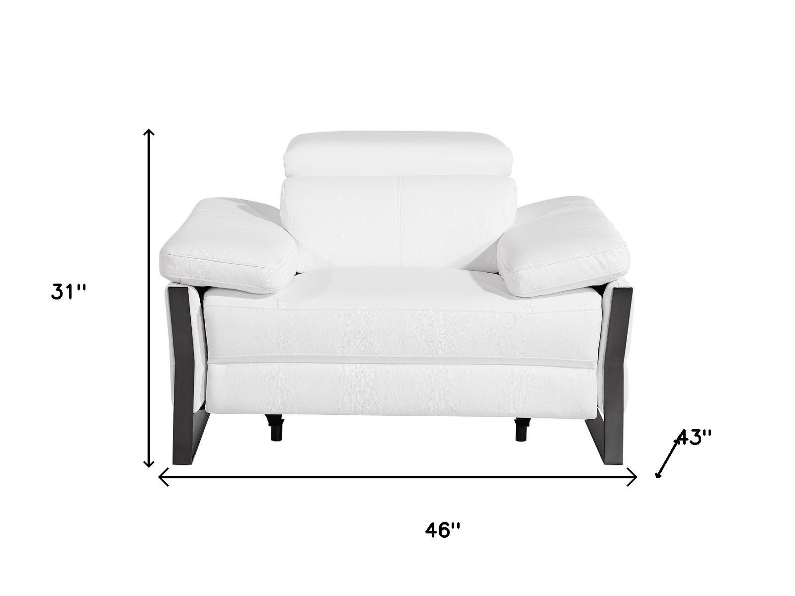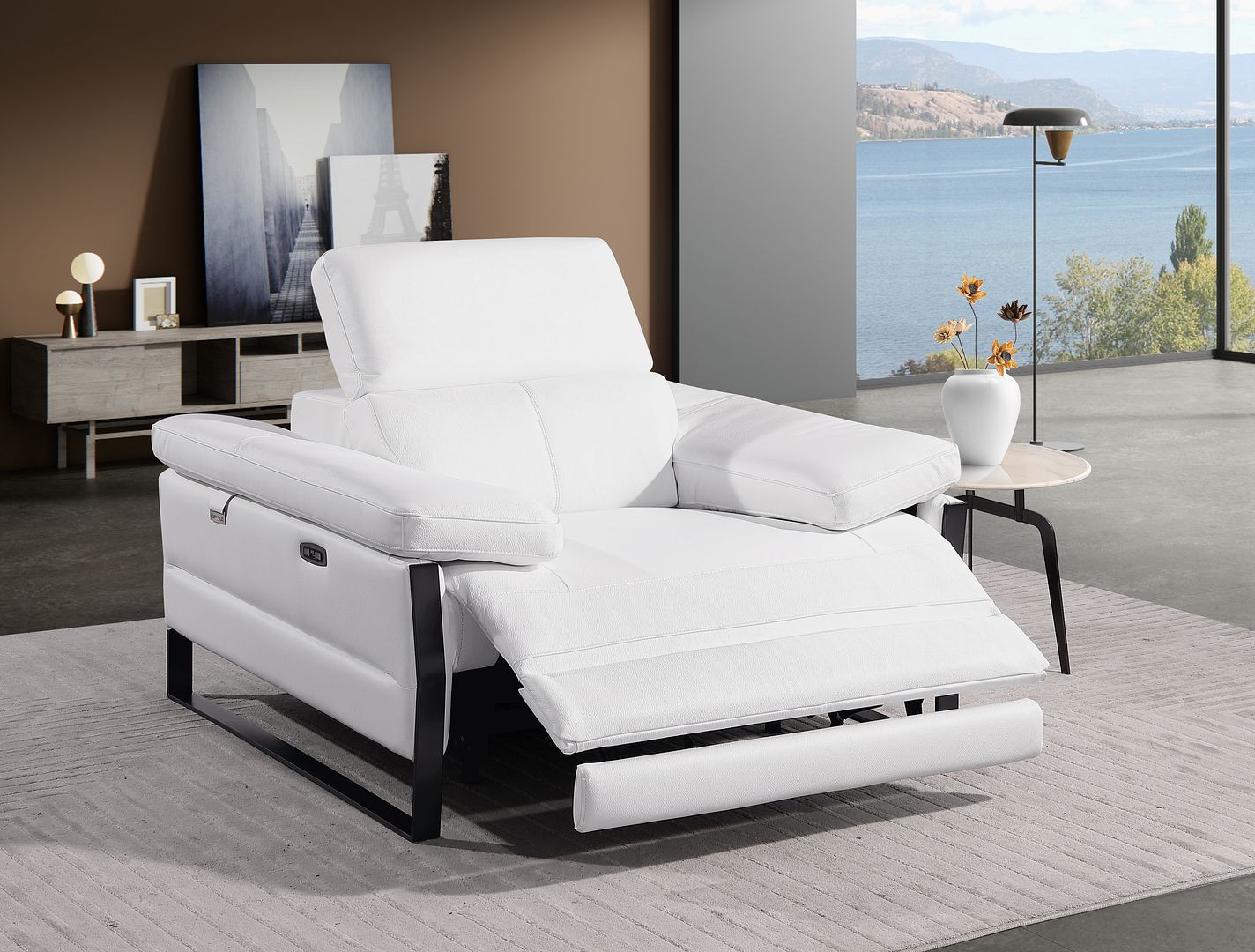 With this 46-inch white italian leather power wall hugger recliner with usb, you can experience the comfort of cozy with a design that looks every bit of today. Designer grade italian leather gives this reclining chair a level of class and comfort to make your seating experience exceptional every day. The white of this chair is neutral to will blend with most any décor aesthetic. The push-button controls make it easy to adjust the angle of your recline. A space-saving option, this wall hugger recliner can be installed in close proximity to the wall because it requires minimal clearance. From morning coffee to evening tv/movie nights and everything in between, this cozy chair will be a welcome addition to your rest and relaxation routine. Recliners are a comfortable and practical option for living room, family room, den, bedroom, or nursery. 31.00-inch h x 46.00-inch w x 43.00-inch d.