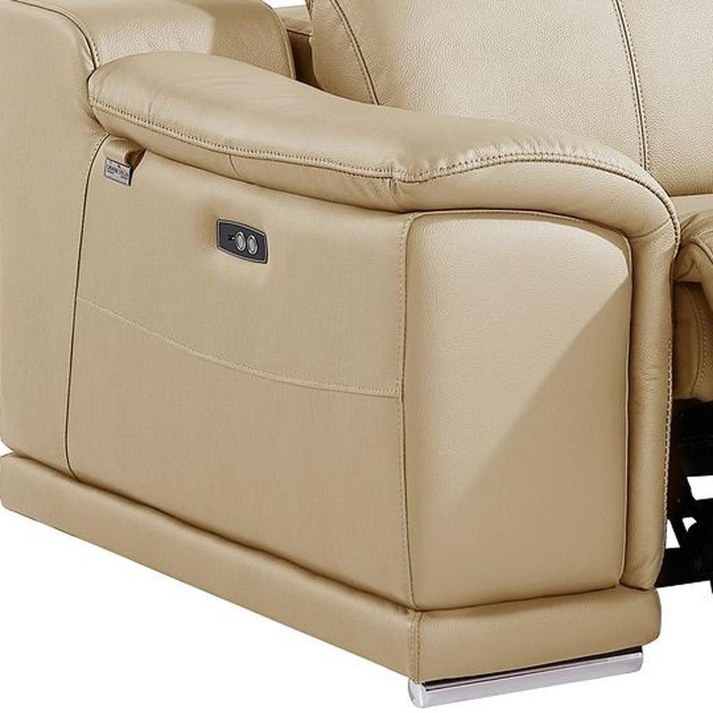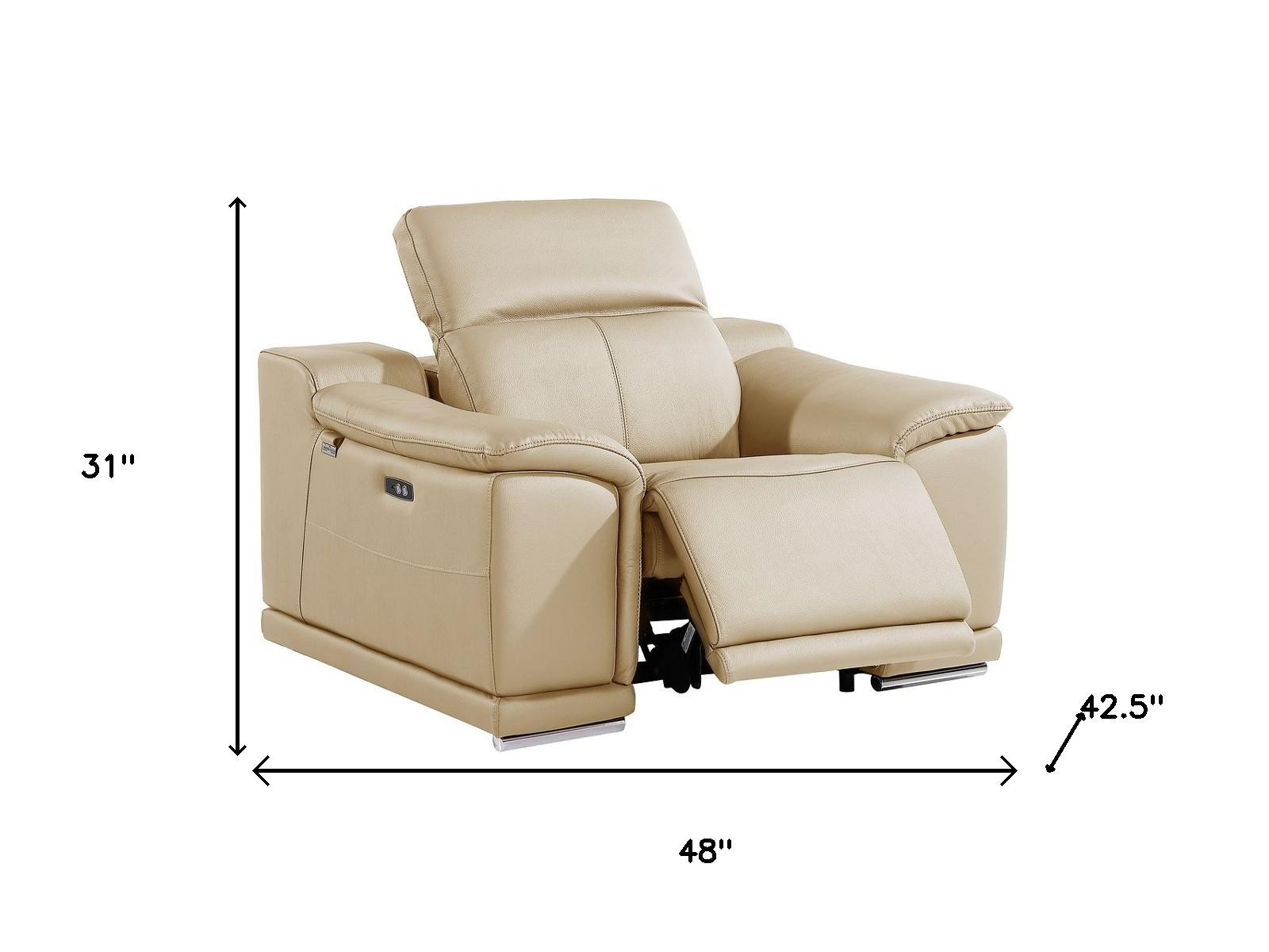 With this 48-inch beige italian leather power wall hugger recliner with usb, you can experience the comfort of cozy with a design that looks every bit of today. Soft and supple high grade italian leather upholstery makes this chair a great place to rest, nap, or read. You'll love that this stylish recliner comes in a neutral beige that fits nicely with any décor. The push-button controls make it easy to adjust the angle of your recline. A space-saving option, this wall hugger recliner can be installed in close proximity to the wall because it requires minimal clearance. Whether you are starting your day, ending your day, or sneaking in a cat nap in between, this chair is a welcome addition to your space and self-care routine. Recliners are a comfortable and practical option for living room, family room, den, bedroom, or nursery. 31.00-inch h x 48.00-inch w x 42.50-inch d.