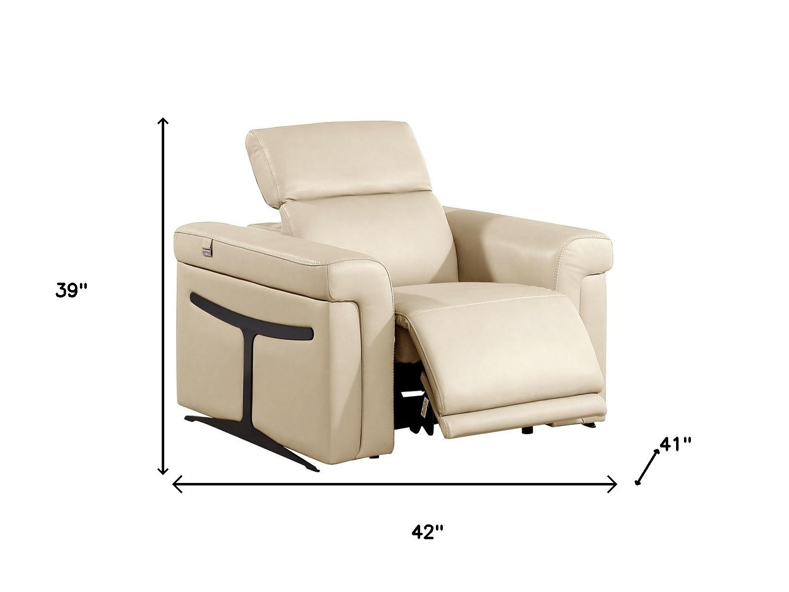 Just what you need, the 42-inch beige italian leather power wall hugger recliner with usb is supremely comfortable and great looking. Upholstered in high grade, italian leather, this chair will provide a soft and luxurious way for you to relax and rest. You'll love that this stylish recliner comes in a neutral beige that fits nicely with any décor. The push-button controls make it easy to adjust the angle of your recline. A space-saving option, this wall hugger recliner can be installed in close proximity to the wall because it requires minimal clearance. Whether you are starting your day, ending your day, or sneaking in a cat nap in between, this chair is a welcome addition to your space and self-care routine. Take relaxation to the next level with this comfy reclining chair. 39.00-inch h x 42.00-inch w x 41.00-inch d.