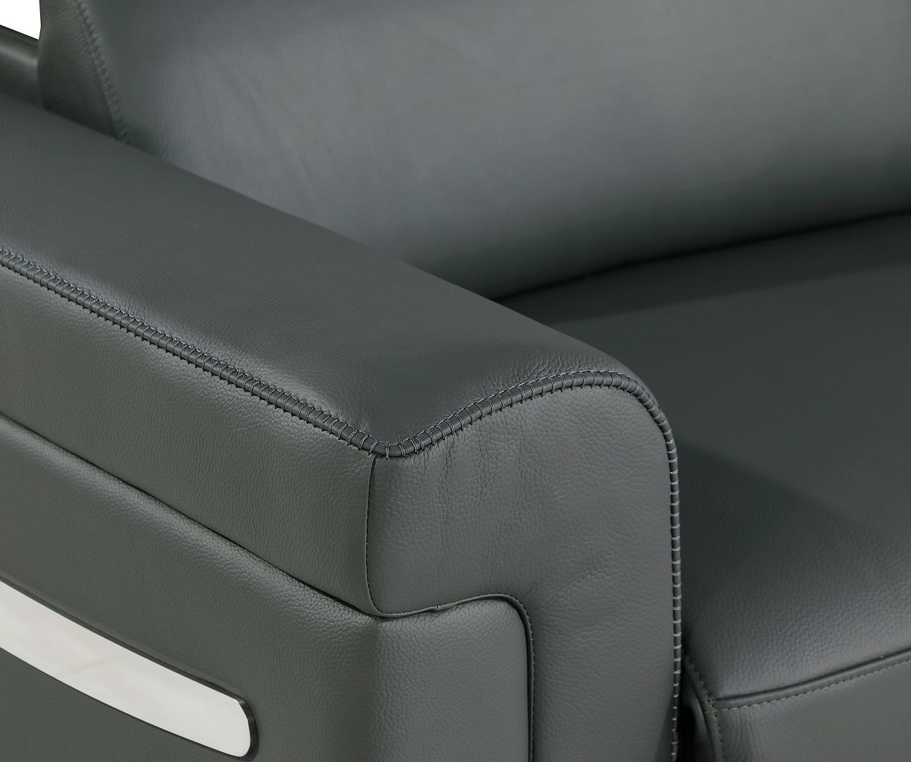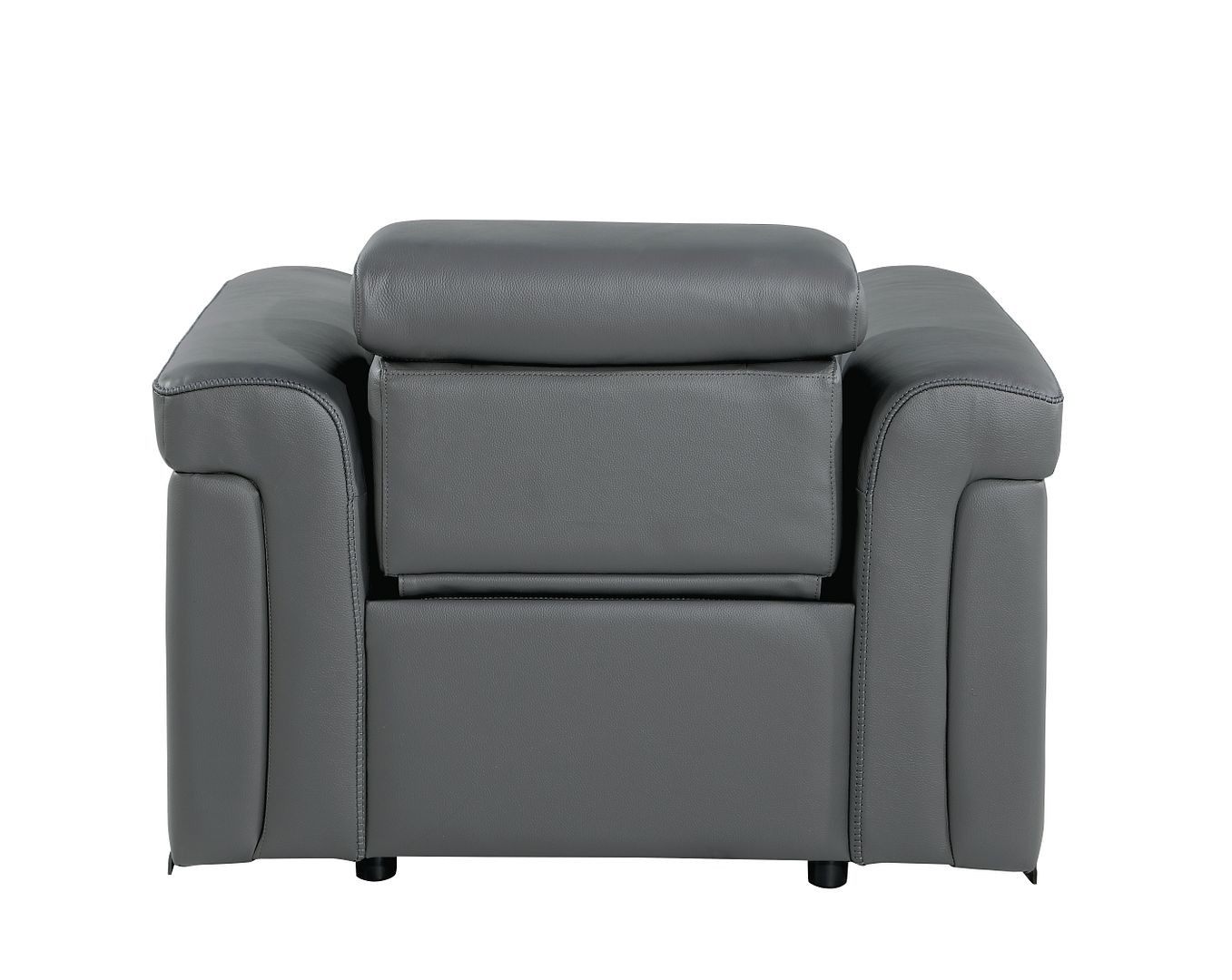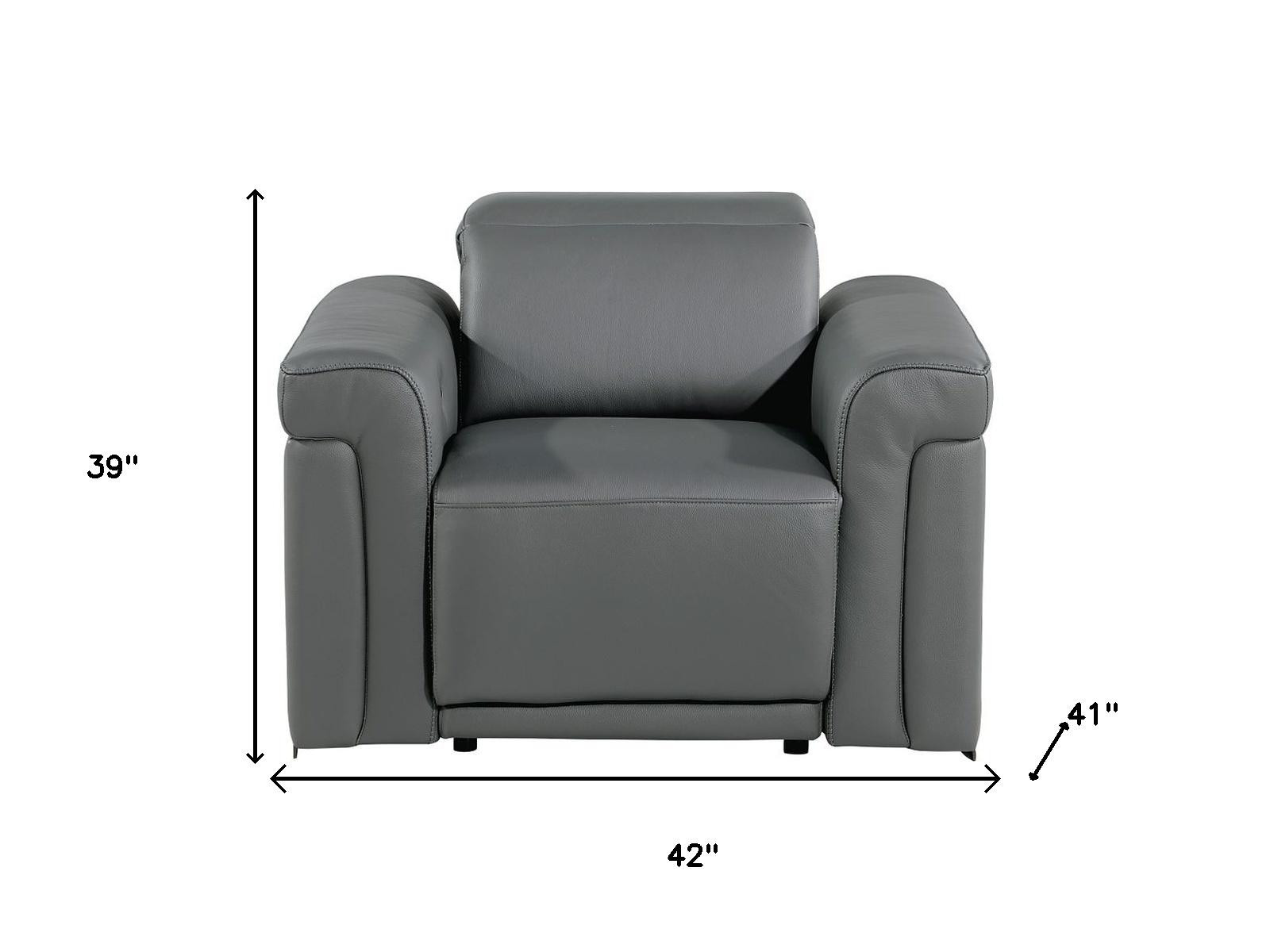 Achieve maximum comfort and relaxation with the 42-inch dark gray italian leather power wall hugger recliner with usb. Soft and supple high grade italian leather upholstery makes this chair a great place to rest, nap, or read. The push-button controls make it easy to adjust the angle of your recline. A space-saving option, this wall hugger recliner can be installed in close proximity to the wall because it requires minimal clearance. From morning coffee to evening tv/movie nights and everything in between, this cozy chair will be a welcome addition to your rest and relaxation routine. Take relaxation to the next level with this comfy reclining chair. 39.00-inch h x 42.00-inch w x 41.00-inch d.