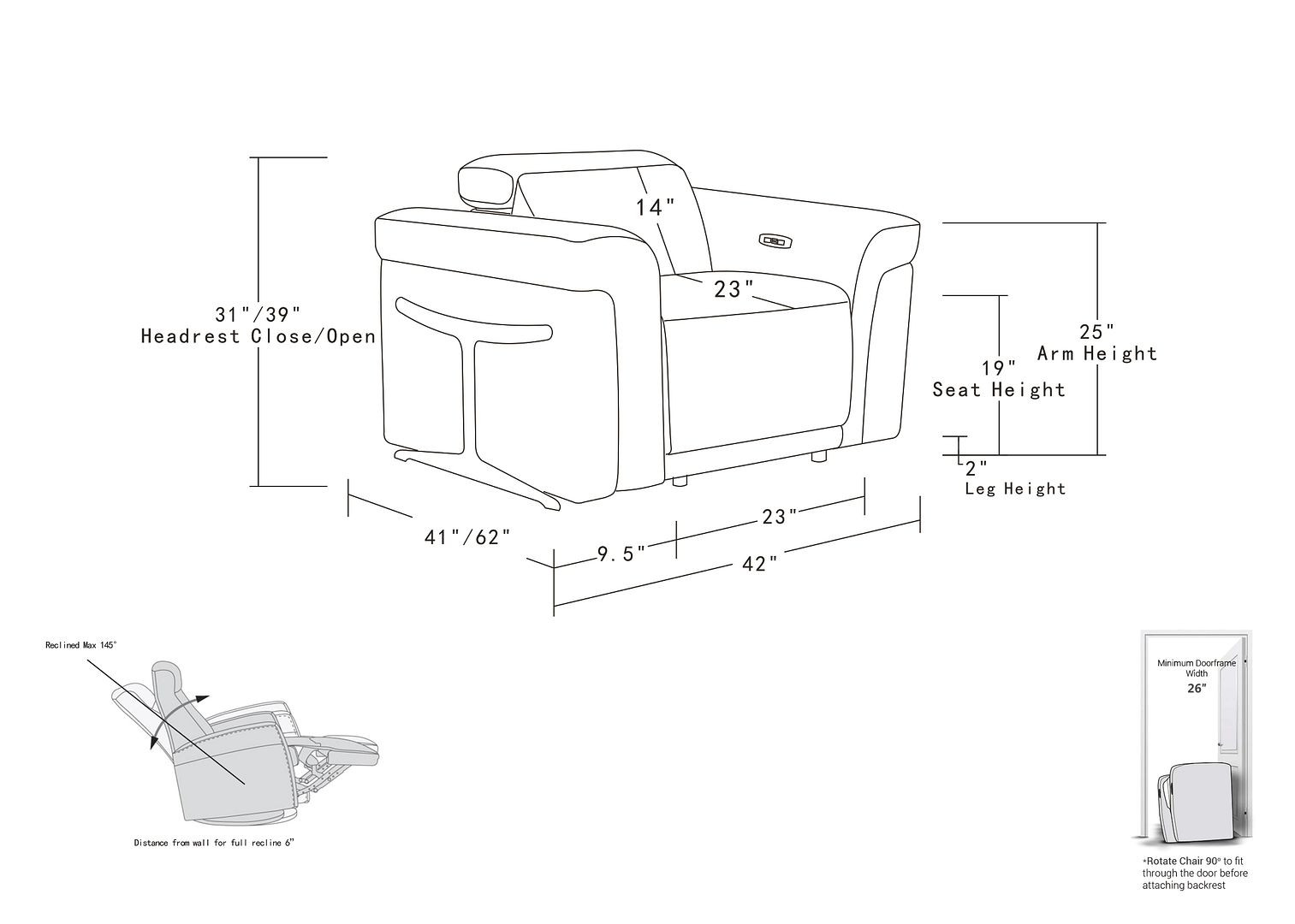 | Arm Height - Floor to Arm: |