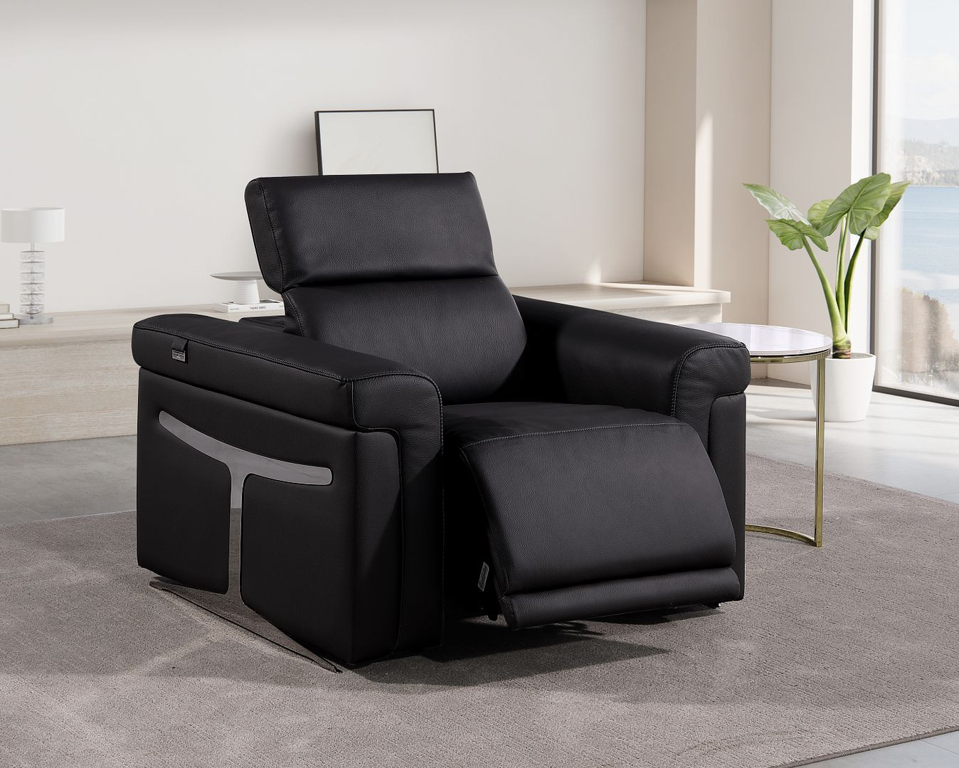 leather recliner chair, Italian leather power recliner, top grain leather reclining chair, leather armchair with USB, modern Italian leather recliner, luxury leather power recliner, chair with adjustable headrest and lumbar support, stainless steel frame recliner, Chrome leg leather chair, Italian leather home theater seating |