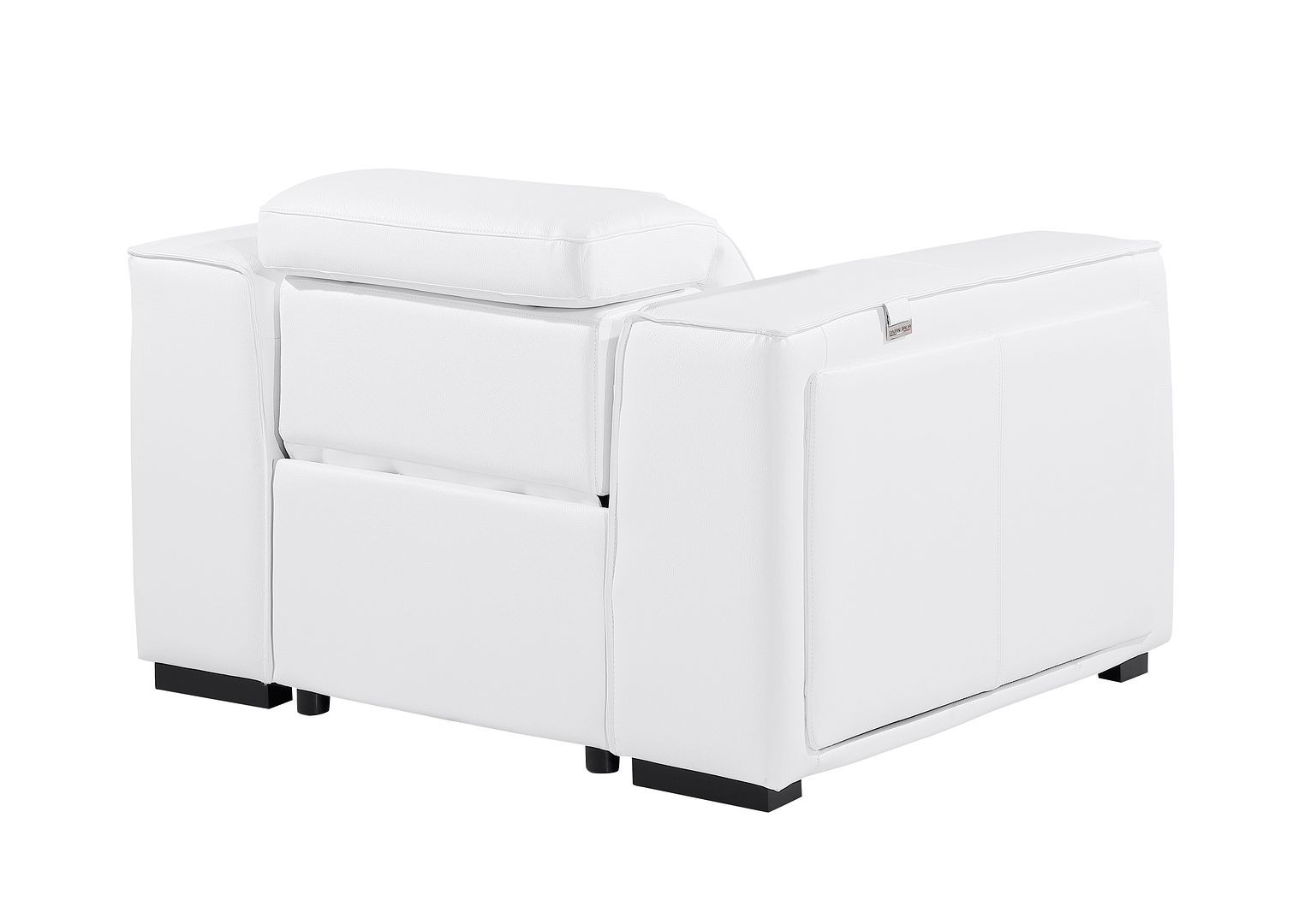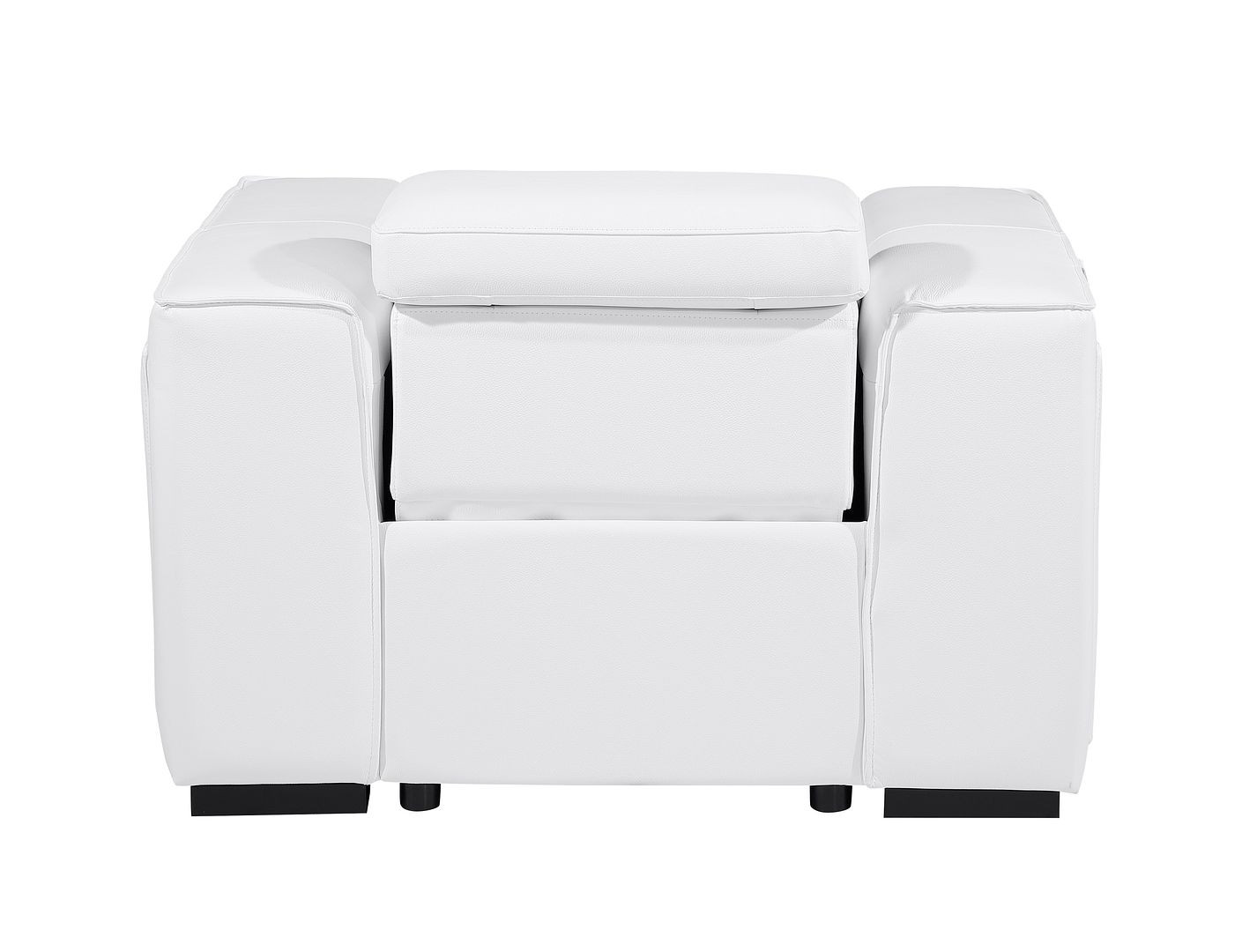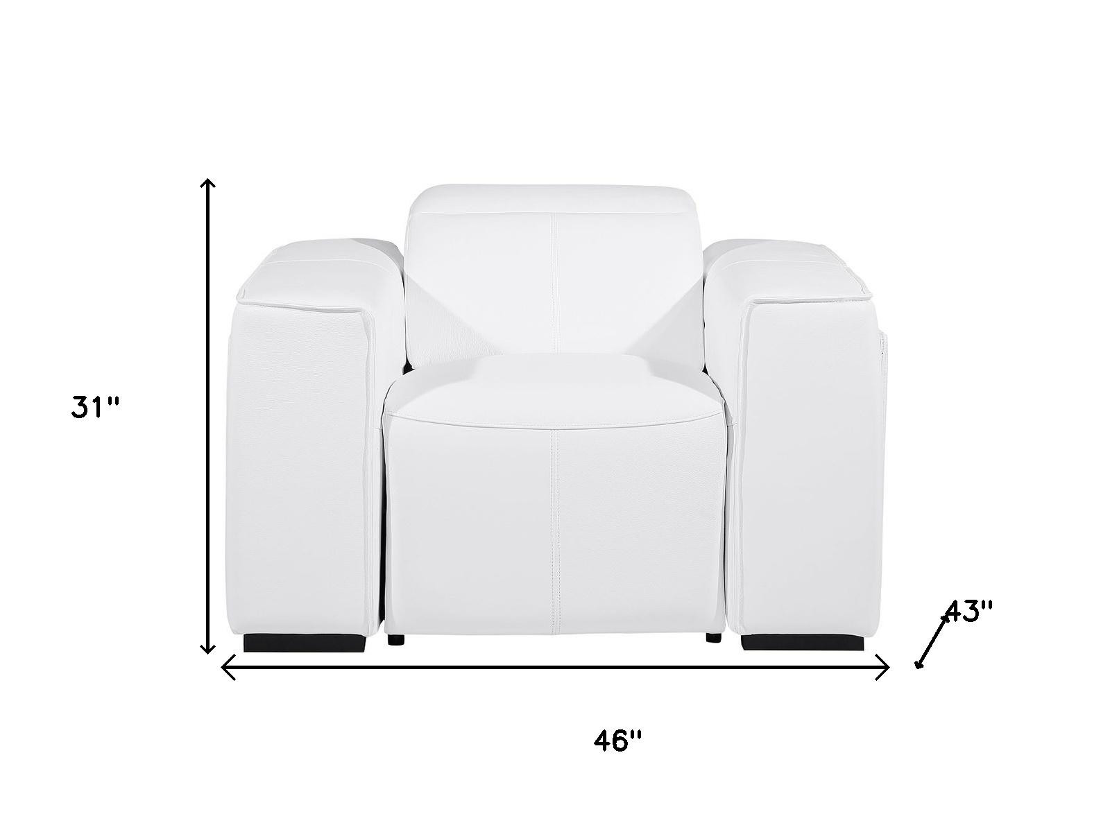 With this 46-inch white italian leather power wall hugger recliner with usb, you can experience the comfort of cozy with a design that looks every bit of today. Upholstered in high grade, italian leather, this chair will provide a soft and luxurious way for you to relax and rest. The white of this chair is neutral to will blend with most any décor aesthetic. The push-button controls make it easy to adjust the angle of your recline. A space-saving option, this wall hugger recliner can be installed in close proximity to the wall because it requires minimal clearance. Whether you are starting your day, ending your day, or sneaking in a cat nap in between, this chair is a welcome addition to your space and self-care routine. Recliners are a comfortable and practical option for living room, family room, den, bedroom, or nursery. 31.00-inch h x 46.00-inch w x 43.00-inch d.