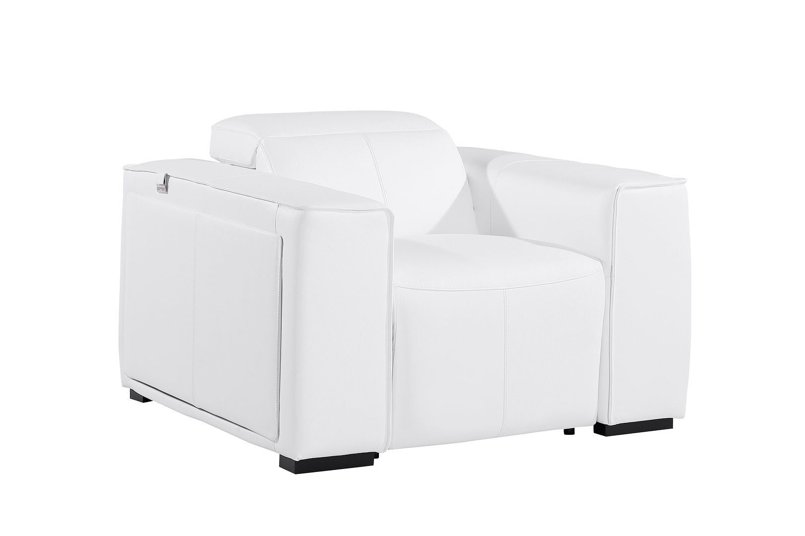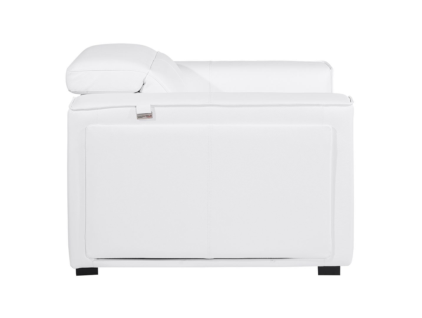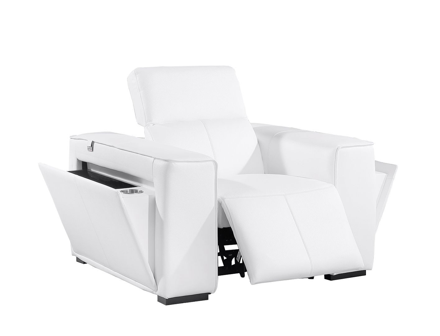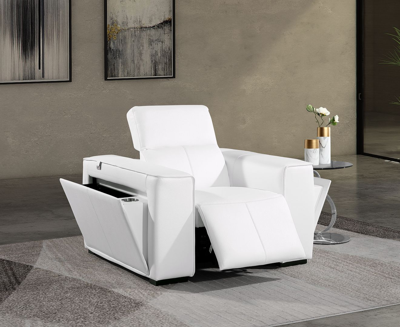 With this 46-inch white italian leather power wall hugger recliner with usb, you can experience the comfort of cozy with a design that looks every bit of today. Upholstered in high grade, italian leather, this chair will provide a soft and luxurious way for you to relax and rest. The white of this chair is neutral to will blend with most any décor aesthetic. The push-button controls make it easy to adjust the angle of your recline. A space-saving option, this wall hugger recliner can be installed in close proximity to the wall because it requires minimal clearance. Whether you are starting your day, ending your day, or sneaking in a cat nap in between, this chair is a welcome addition to your space and self-care routine. Recliners are a comfortable and practical option for living room, family room, den, bedroom, or nursery. 31.00-inch h x 46.00-inch w x 43.00-inch d.