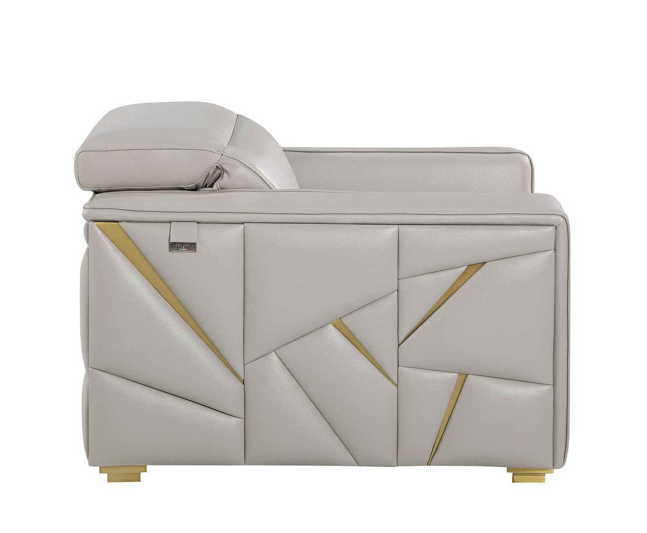 light gray italian leather chair, luxury modern leather chair, gold accent armchair, top grain leather armchair, contemporary italian design chair, light gray gold base chair, designer italian leather chair, adjustable headrest armchair, geometric side panel chair, modern luxury home furniture, comfortable leather lounge chair, elegant light gray chair, neutral tone italian chair, high end designer chair, premium italian seating, gold detailed armchair, small space accent chair, modern luxury living room chair, solid hardwood frame chair |