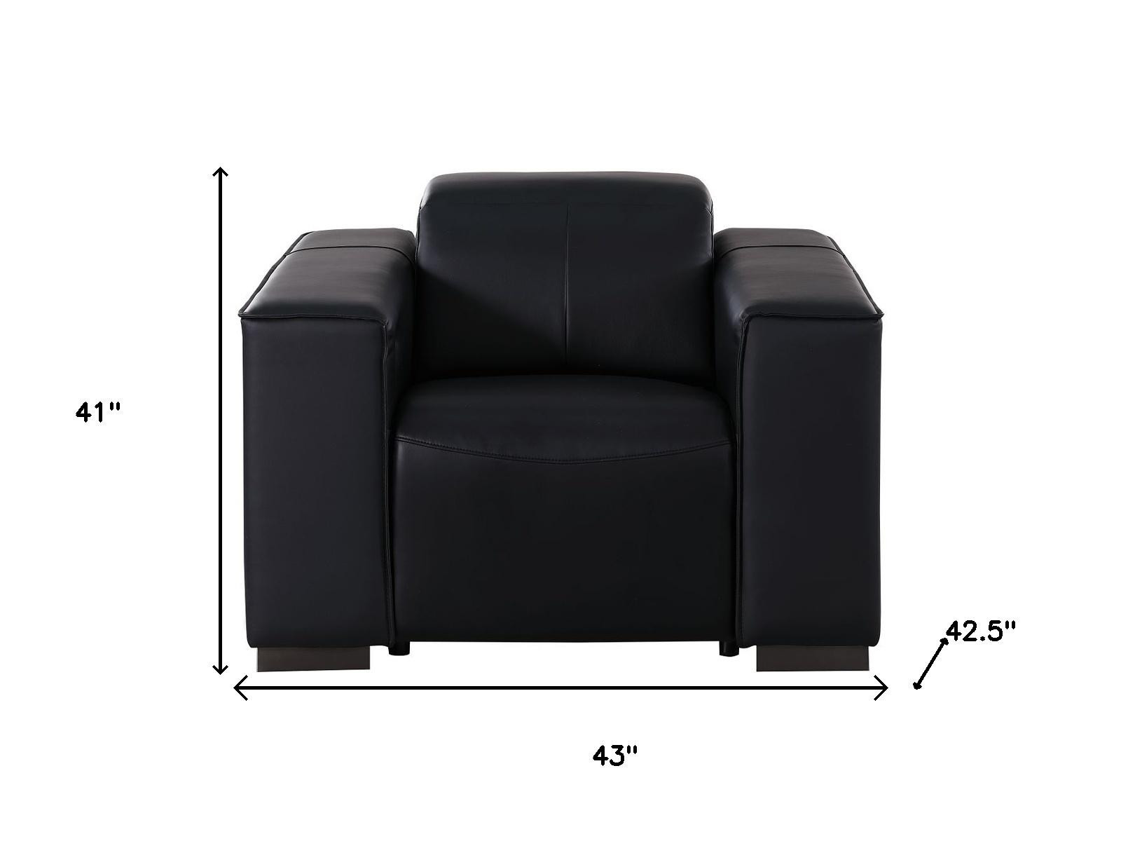 Just what you need, the 43-inch black genuine leather power wall hugger recliner with usb is supremely comfortable and great looking. Soft and supple high grade genuine leather upholstery makes this chair a great place to rest, nap, or read. Black upholstery gives this chair a chic and modern look. The power push button mechanism will allow you to smoothly adjust to your most comfortable position. A space-saving option, this wall hugger recliner can be installed in close proximity to the wall because it requires minimal clearance. From morning coffee to evening tv/movie nights and everything in between, this cozy chair will be a welcome addition to your rest and relaxation routine. Take relaxation to the next level with this comfy reclining chair. 41.00-inch h x 43.00-inch w x 42.50-inch d.