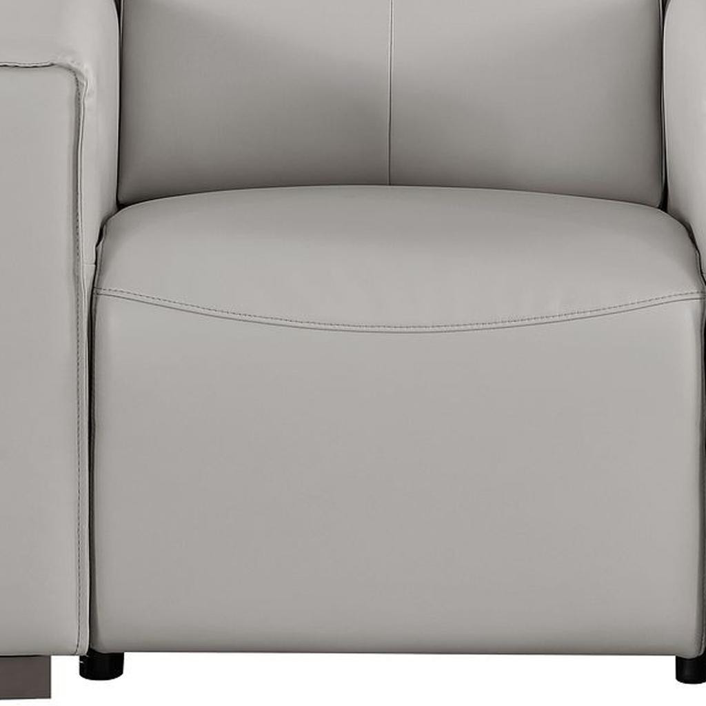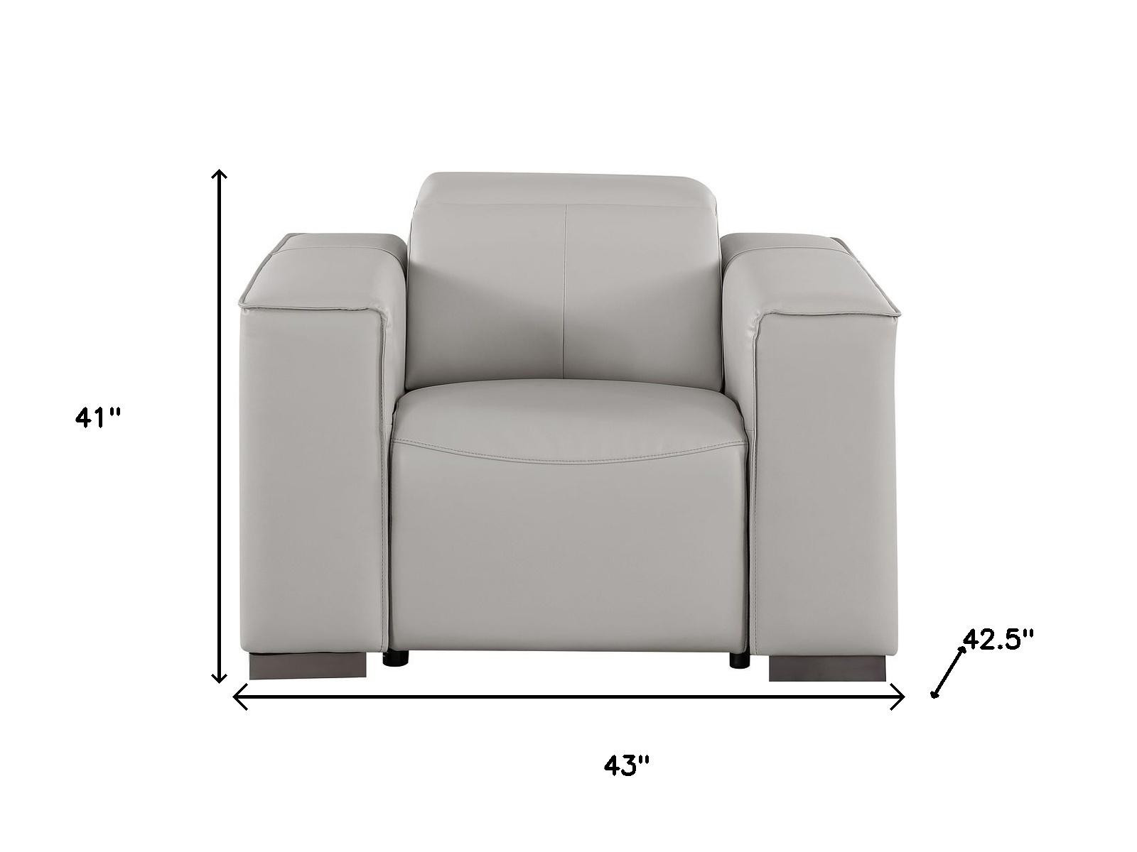 With this 43-inch ash gray genuine leather power wall hugger recliner with usb, you can experience the comfort of cozy with a design that looks every bit of today. Upholstered in high grade, genuine leather, this chair will provide a soft and luxurious way for you to relax and rest. The power push button mechanism will allow you to smoothly adjust to your most comfortable position. A space-saving option, this wall hugger recliner can be installed in close proximity to the wall because it requires minimal clearance. Whether you are starting your day, ending your day, or sneaking in a cat nap in between, this chair is a welcome addition to your space and self-care routine. Take relaxation to the next level with this comfy reclining chair. 41.00-inch h x 43.00-inch w x 42.50-inch d.