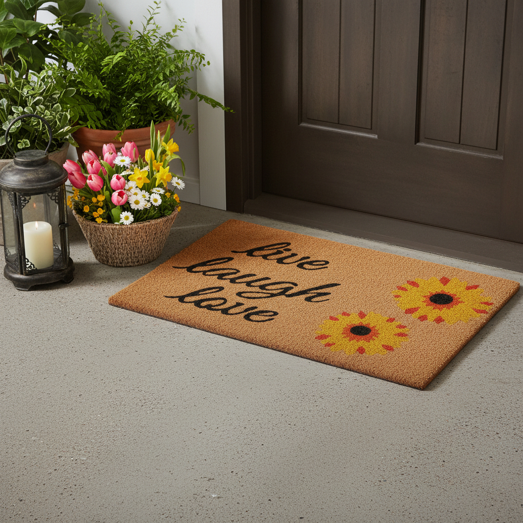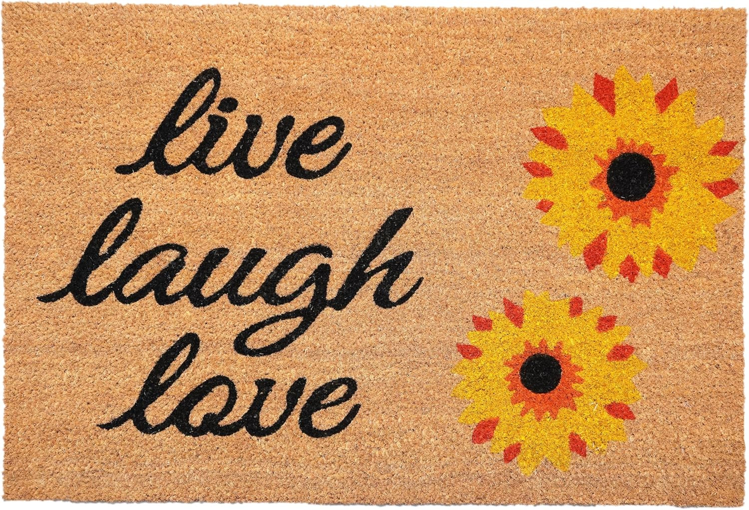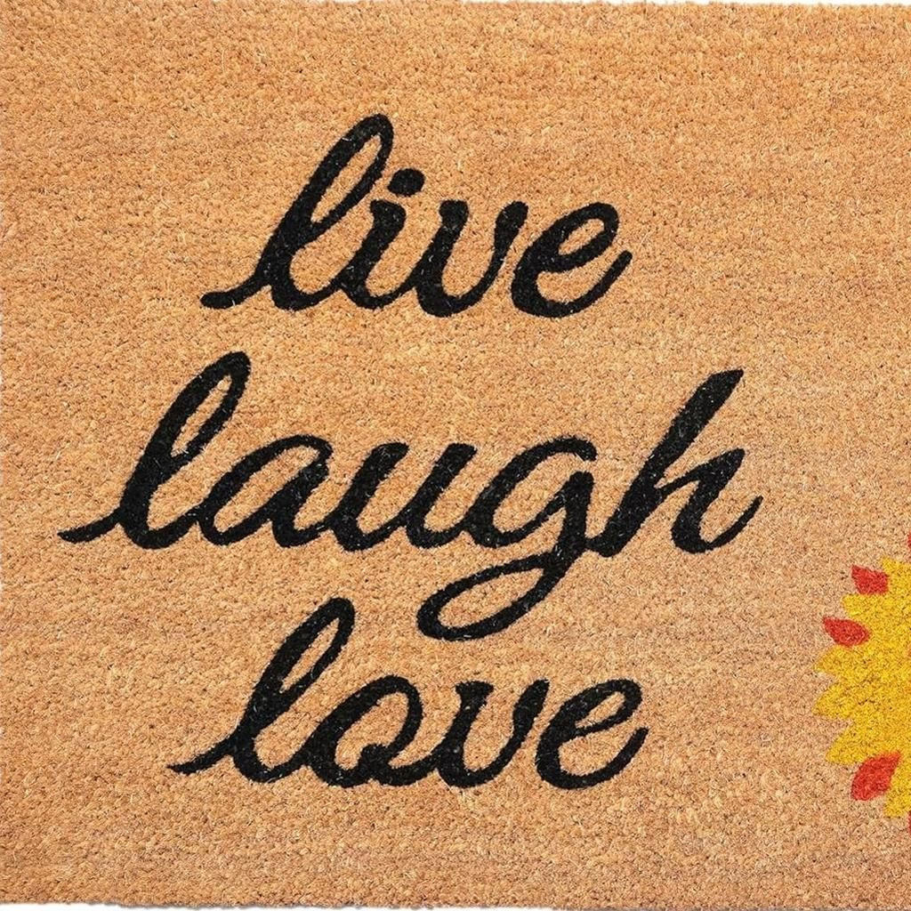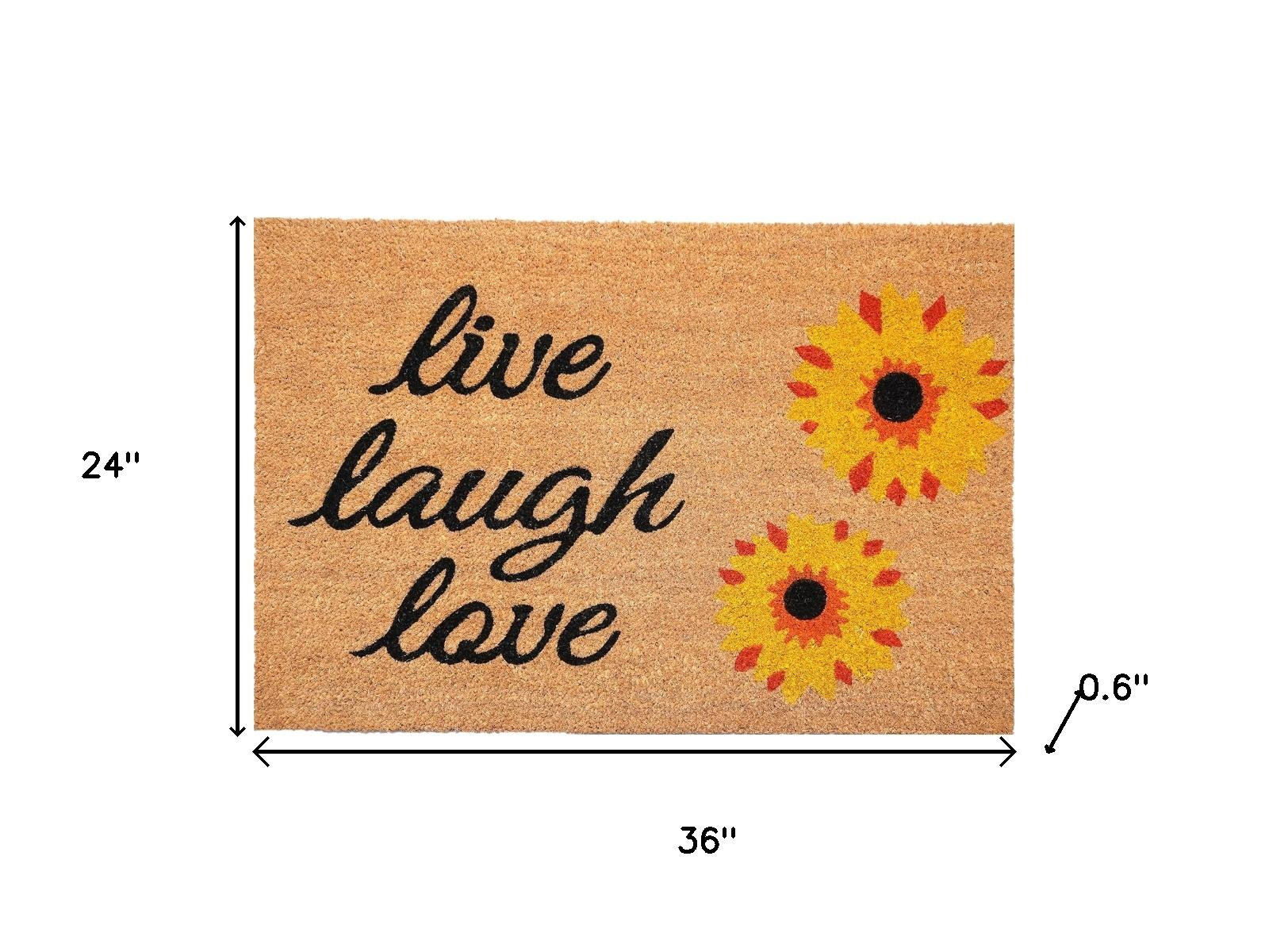 Known for it's extreme durability and ability to withstand heavy foot traffic, this 24-inch x 36-inch brown black and yellow floral live laugh love outdoor coir door mat is an ideal option for the front door or entrance way of your home or business. Crafted from coconut husks, this mat is not only functional but is an an eco-friendly and visually appealing accessory. The naturally bristled texture of coir is an efficient way to clean dirt and mud from shoes and is easy to clean and maintain. 24.00-inch h x 36.00-inch w x 0.60-inch d.