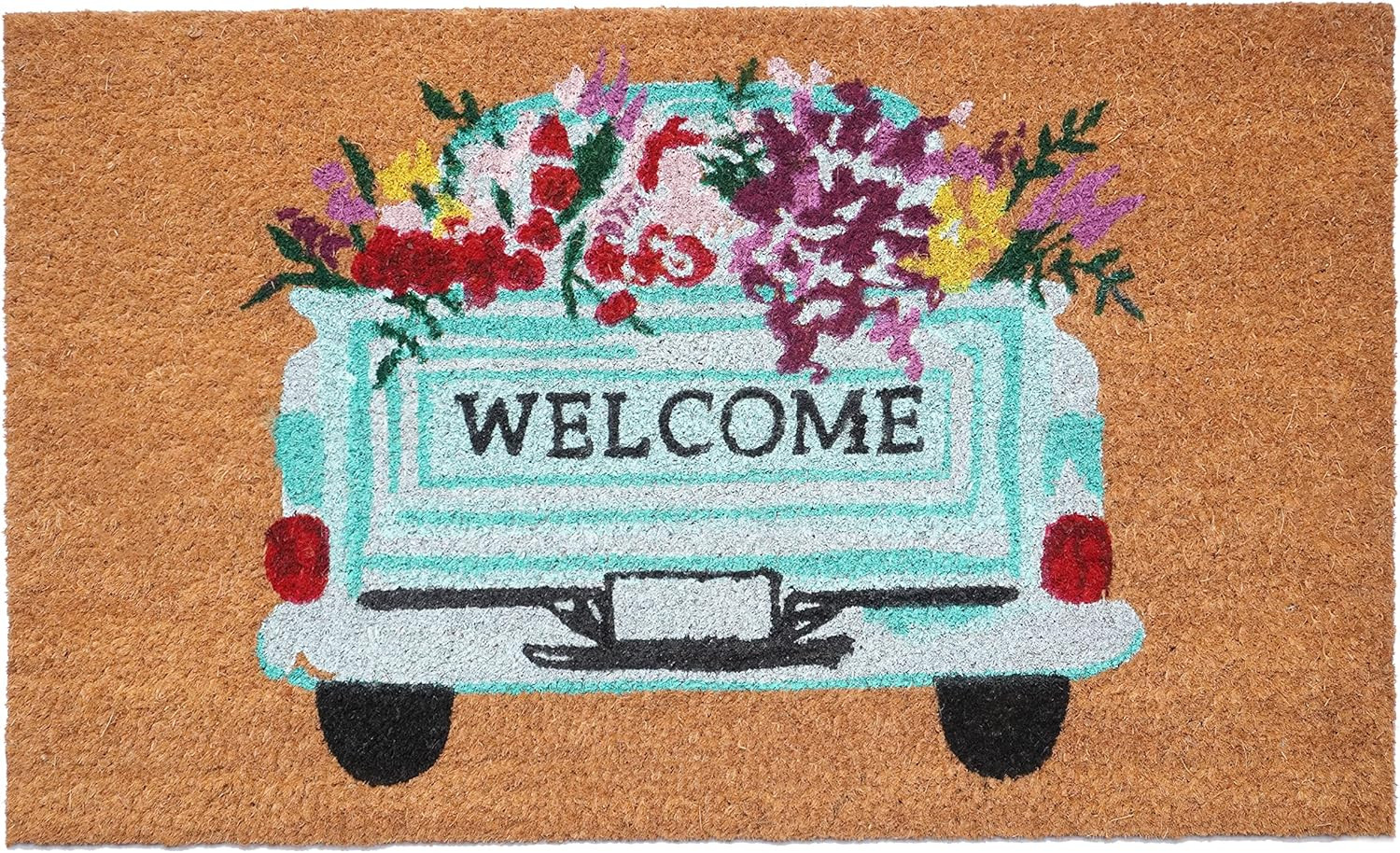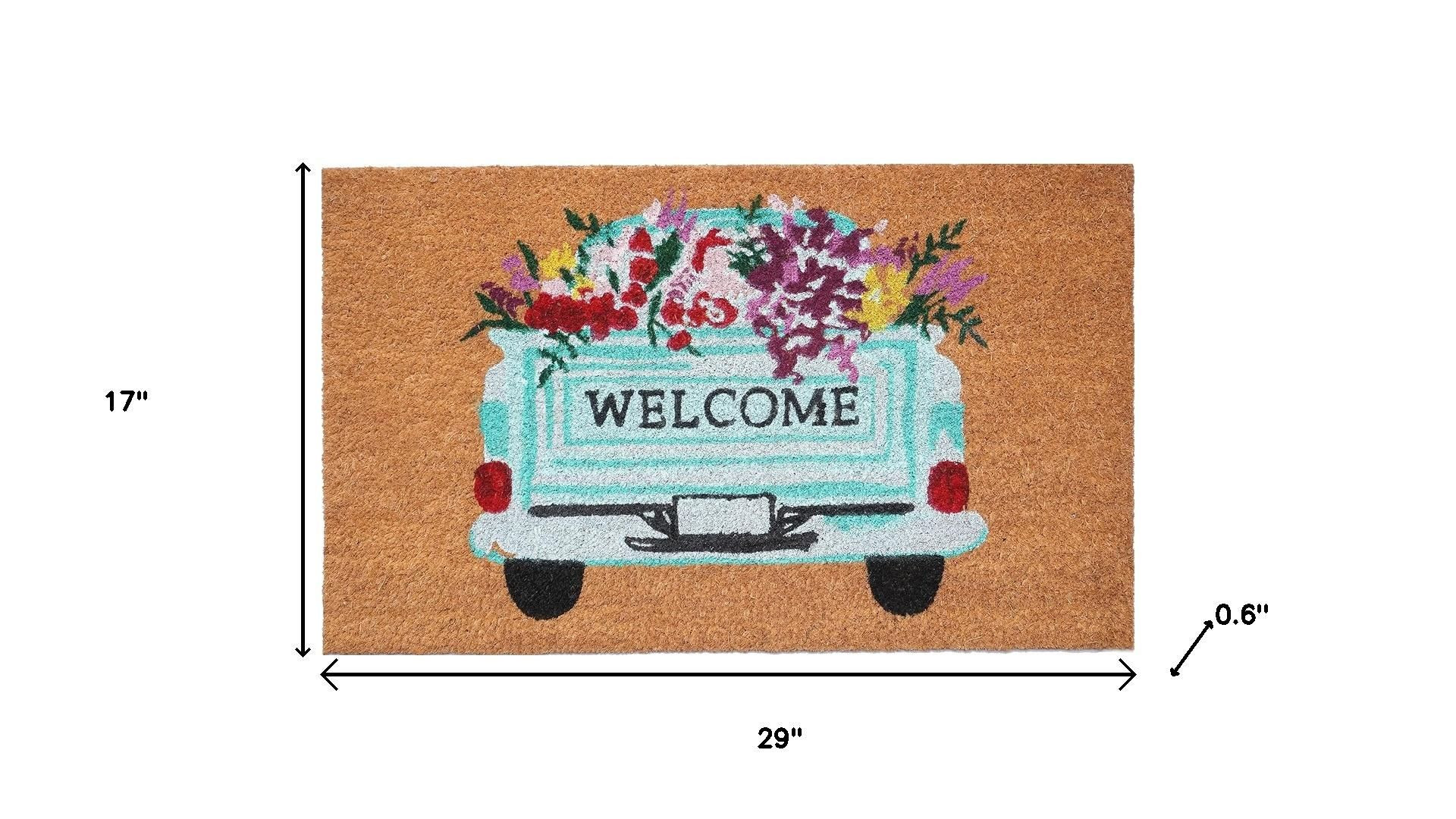 Known for it's extreme durability and ability to withstand heavy foot traffic, this 17-inch x 29-inch brown aqua and red floral welcome outdoor coir door mat is an ideal option for the front door or entrance way of your home or business. Crafted from coconut husks, this mat is not only functional but is an an eco-friendly and visually appealing accessory. The naturally bristled texture of coir is an efficient way to clean dirt and mud from shoes and is easy to clean and maintain. 17.00-inch h x 29.00-inch w x 0.60-inch d.