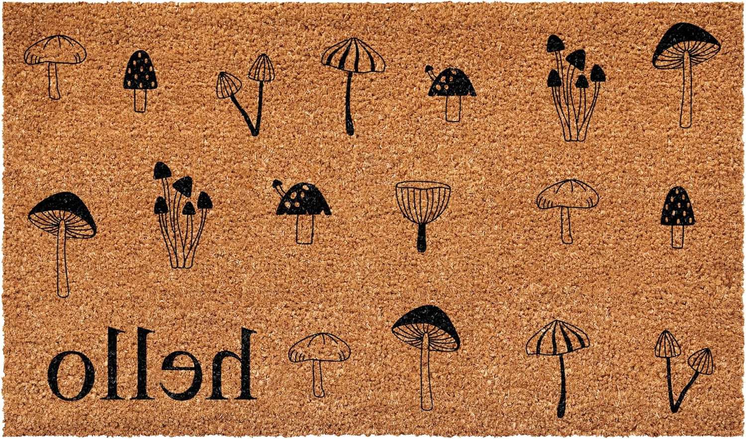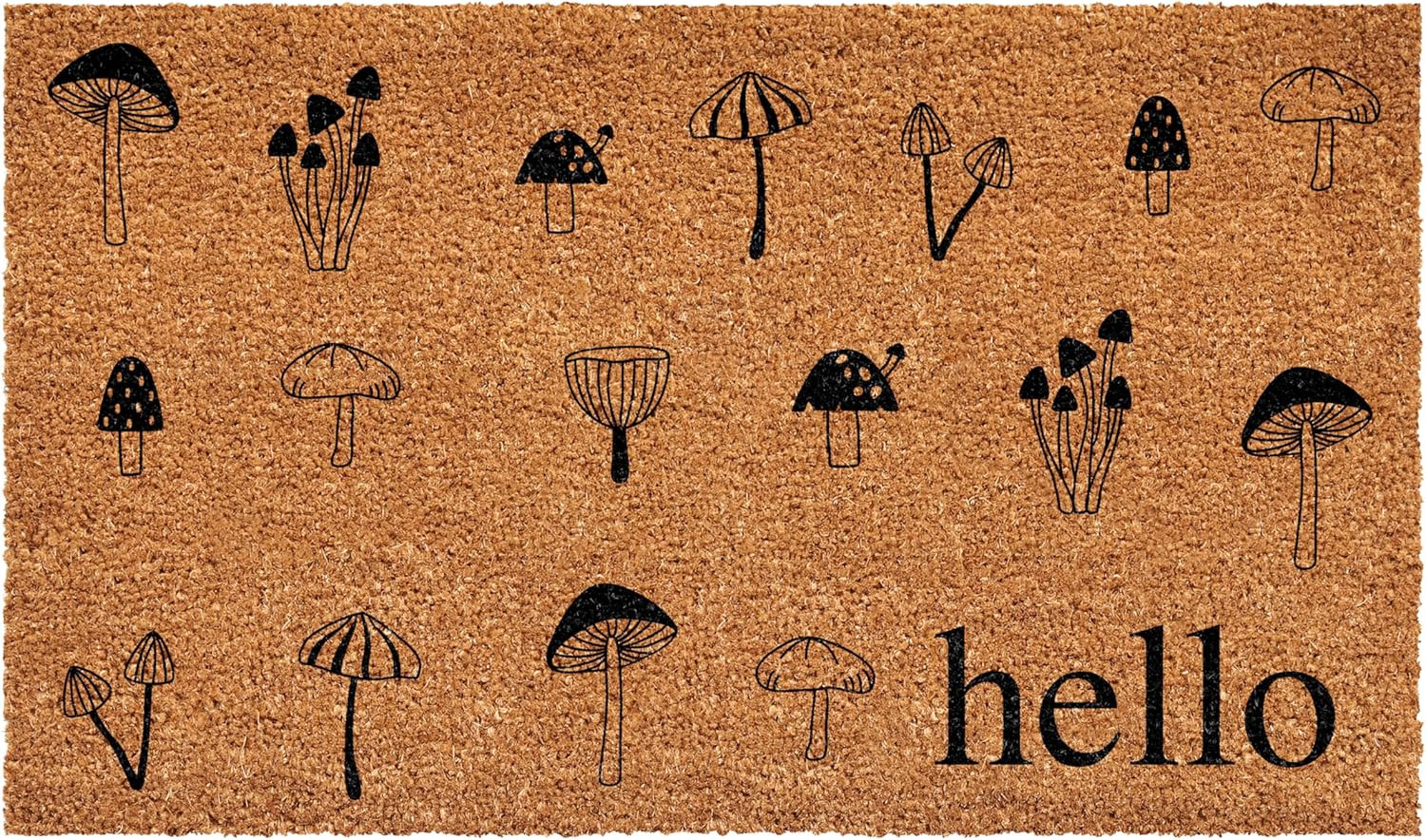 Known for it's extreme durability and ability to withstand heavy foot traffic, this 24-inch x 36-inch brown and black mushrooms hello outdoor coir door mat is an ideal option for the front door or entrance way of your home or business. Crafted from coconut husks, this mat is not only functional but is an an eco-friendly and visually appealing accessory. The naturally bristled texture of coir is an efficient way to clean dirt and mud from shoes and is easy to clean and maintain. 24.00-inch h x 36.00-inch w x 0.60-inch d.