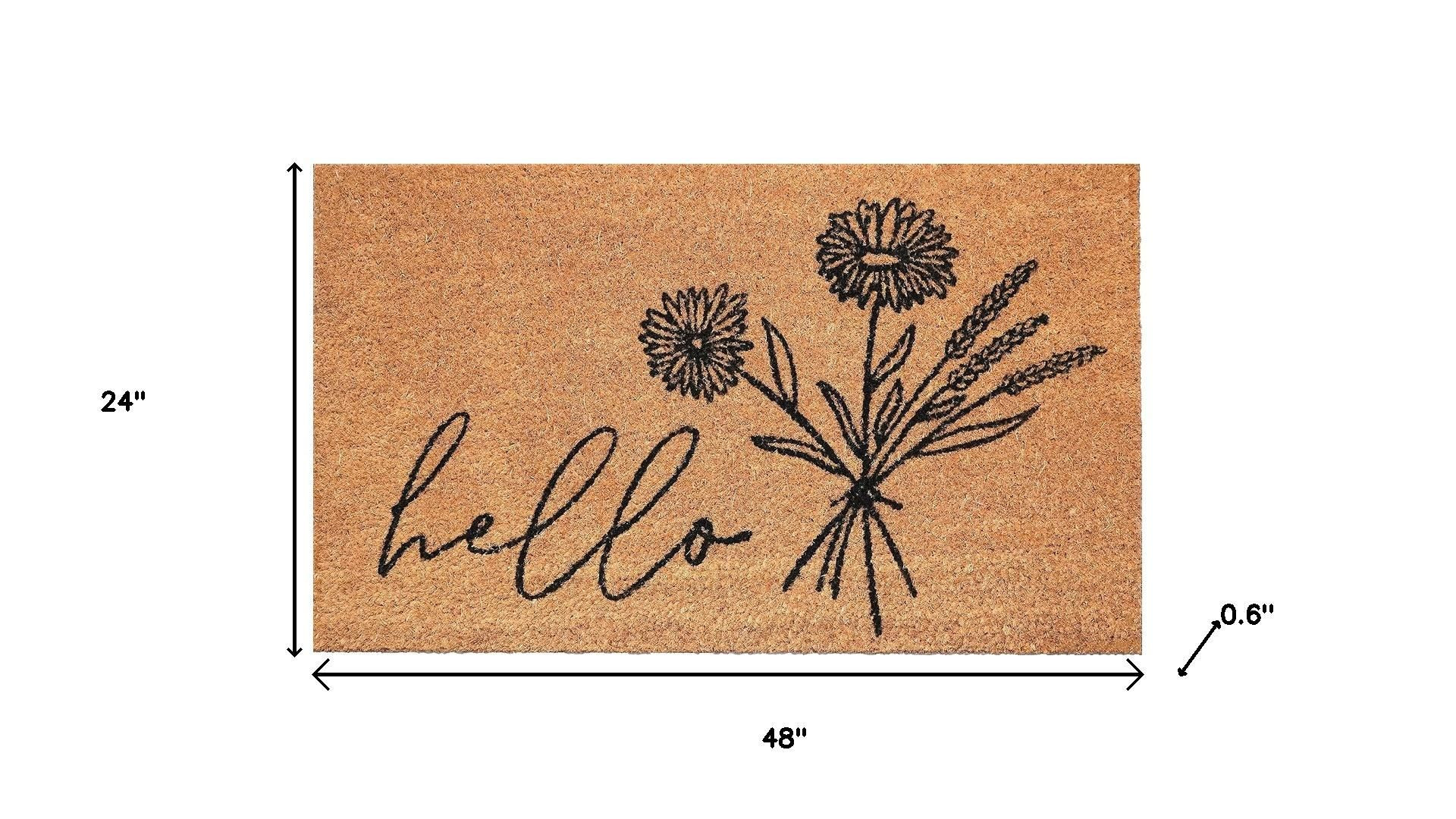 hello outdoor coir door mat, outdoor coir door mat, coir door mat, floral hello outdoor coir door, 24" X 48" brown black floral |