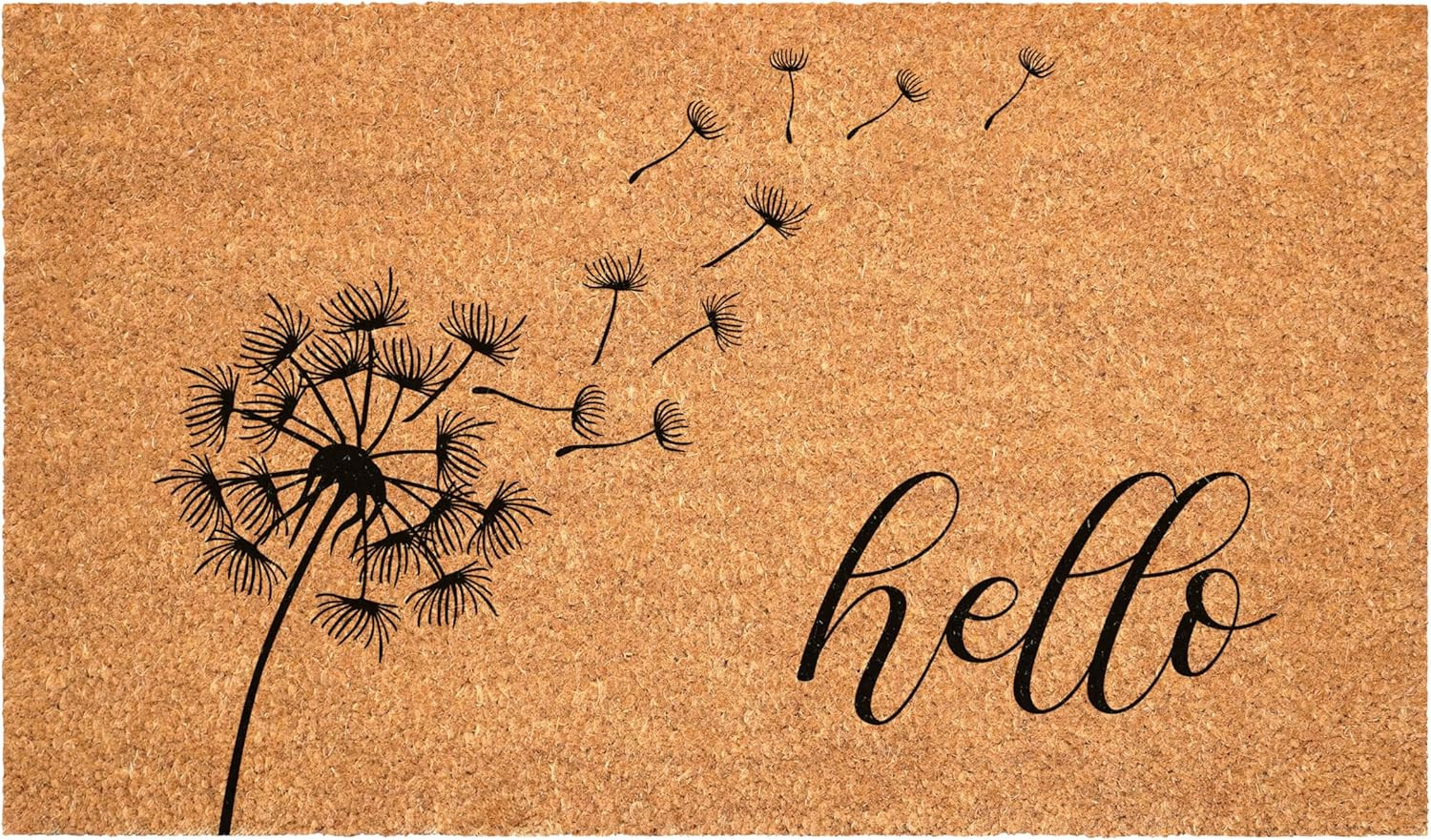 Known for it's extreme durability and ability to withstand heavy foot traffic, this 24-inch x 36-inch brown and black floral hello outdoor coir door mat is an ideal option for the front door or entrance way of your home or business. Crafted from coconut husks, this mat is not only functional but is an an eco-friendly and visually appealing accessory. The naturally bristled texture of coir is an efficient way to clean dirt and mud from shoes and is easy to clean and maintain. 24.00-inch h x 36.00-inch w x 0.60-inch d.