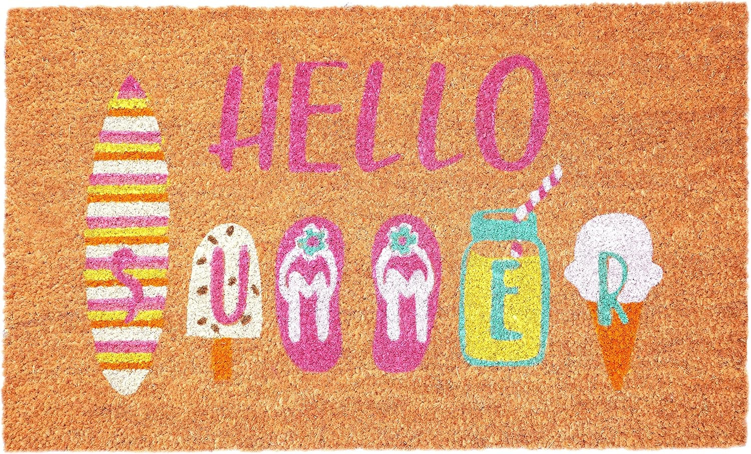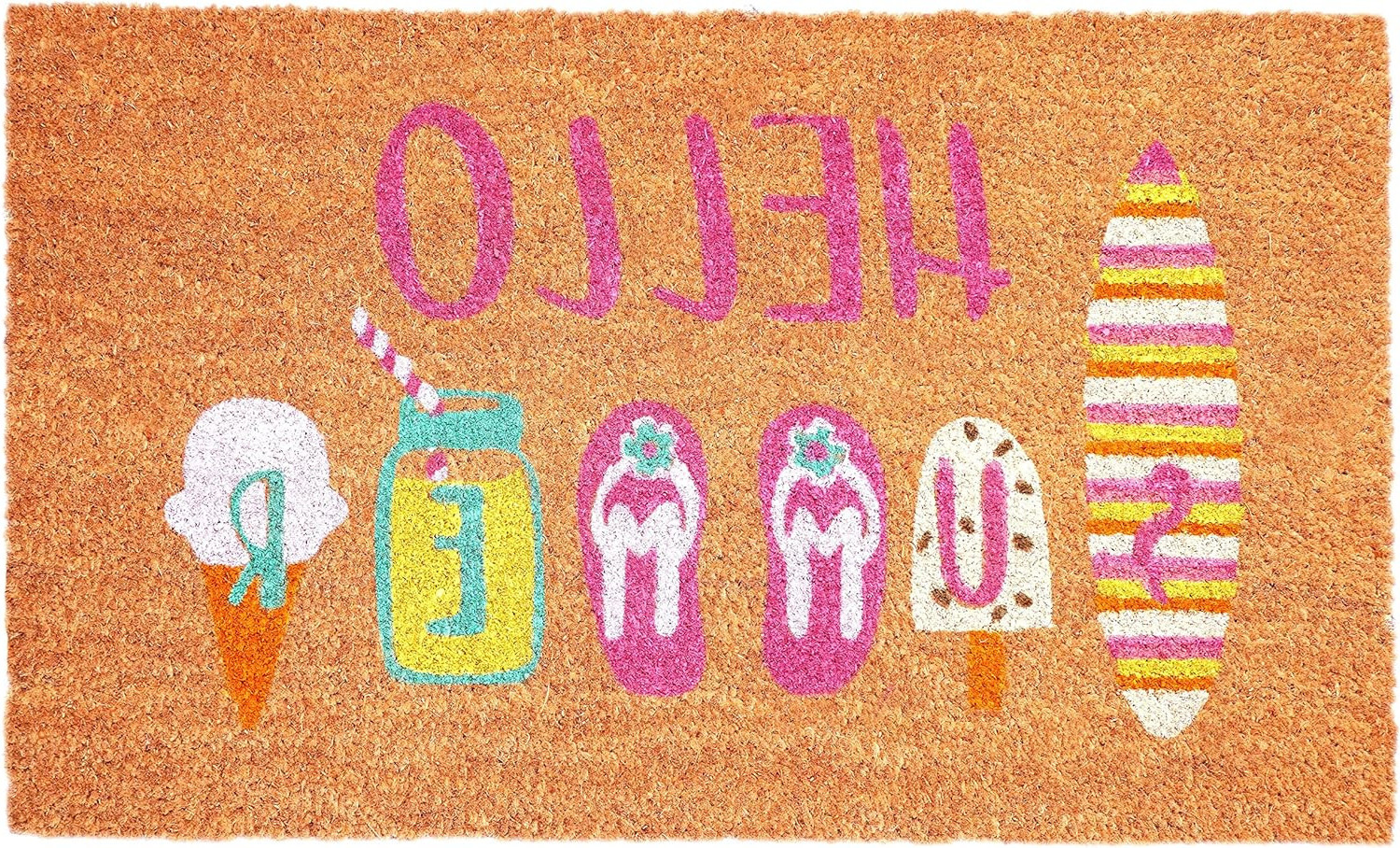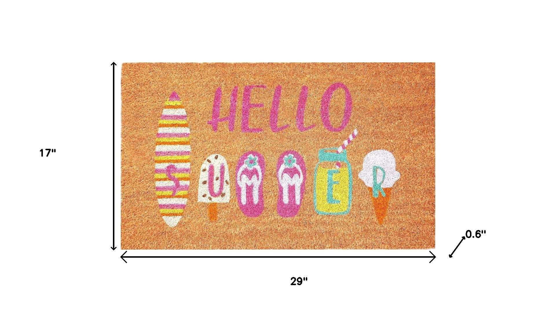 summer outdoor coir door mat, outdoor coir door mat, coir door mat, 17" X 29" brown pink white, hello summer outdoor coir door |