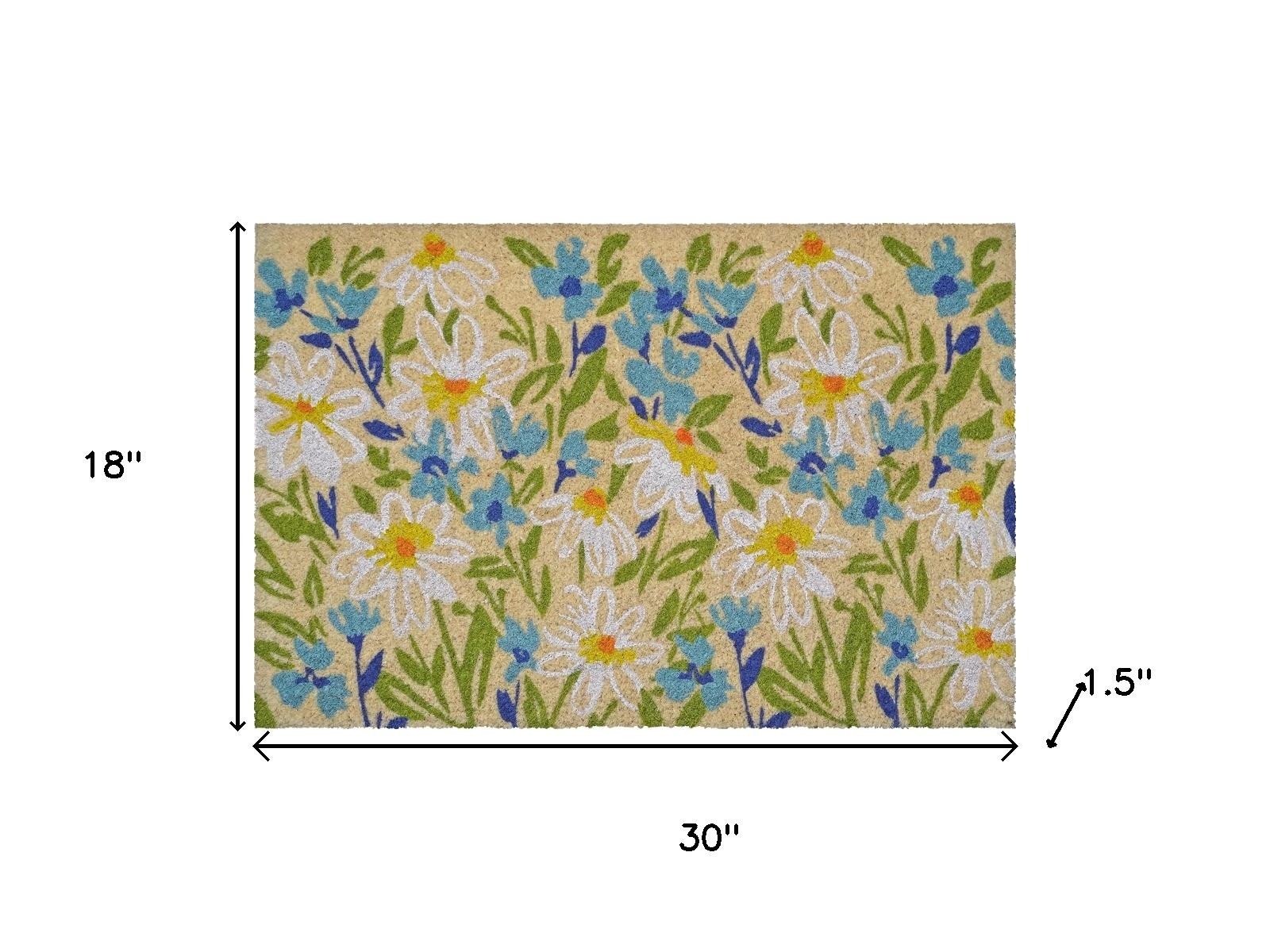 Known for it's extreme durability and ability to withstand heavy foot traffic, this 18-inch x 30-inch brown light blue and green floral outdoor coir door mat is an ideal option for the front door or entrance way of your home or business. Crafted from coconut husks, this mat is not only functional but is an an eco-friendly and visually appealing accessory. The naturally bristled texture of coir is an efficient way to clean dirt and mud from shoes and is easy to clean and maintain. 18.00-inch h x 30.00-inch w x 1.50-inch d.
