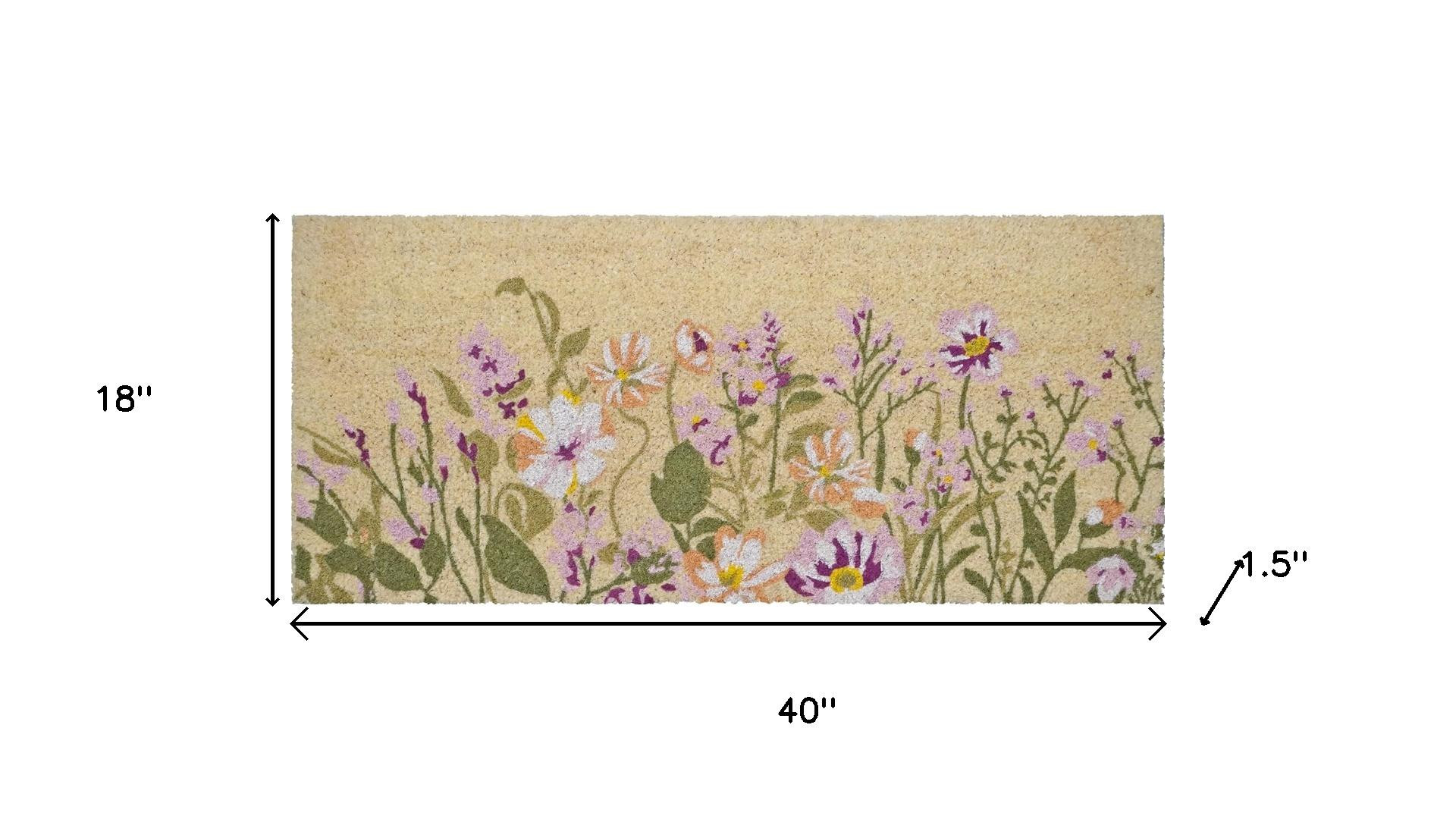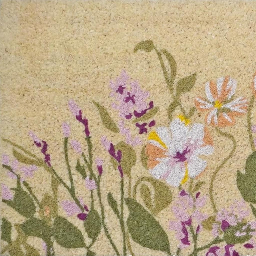 Known for it's extreme durability and ability to withstand heavy foot traffic, this 18-inch x 40-inch brown green and purple floral outdoor coir door mat is an ideal option for the front door or entrance way of your home or business. Crafted from coconut husks, this mat is not only functional but is an an eco-friendly and visually appealing accessory. The naturally bristled texture of coir is an efficient way to clean dirt and mud from shoes and is easy to clean and maintain. 18.00-inch h x 40.00-inch w x 1.50-inch d.
