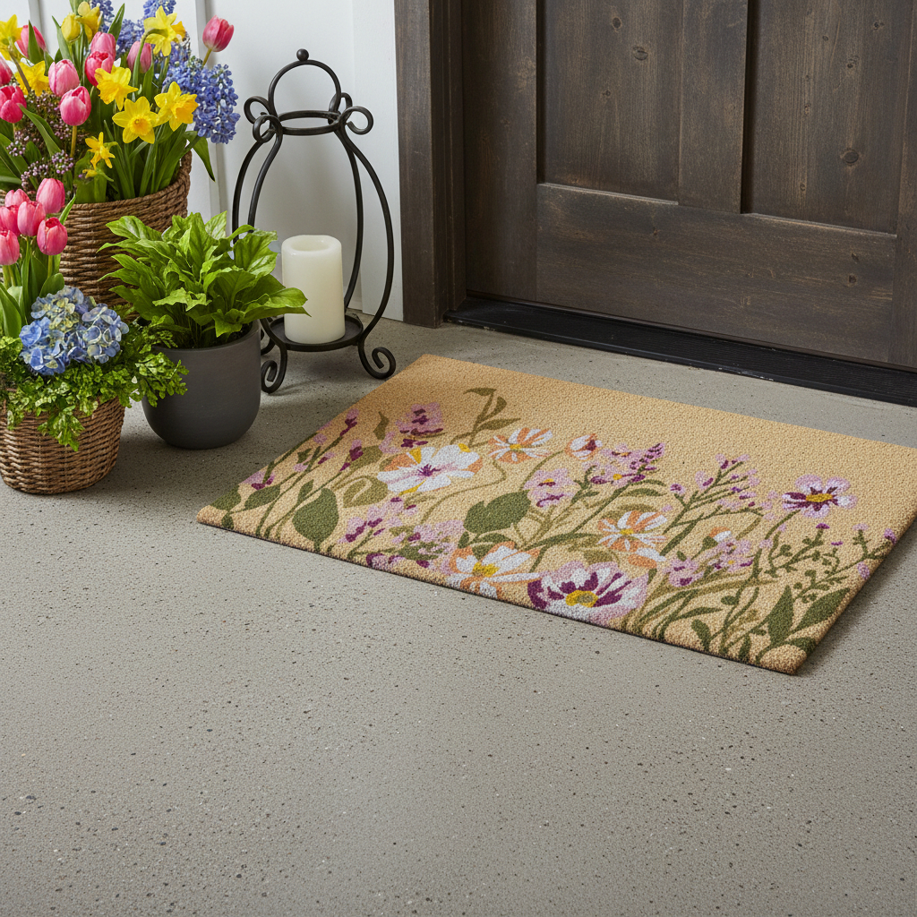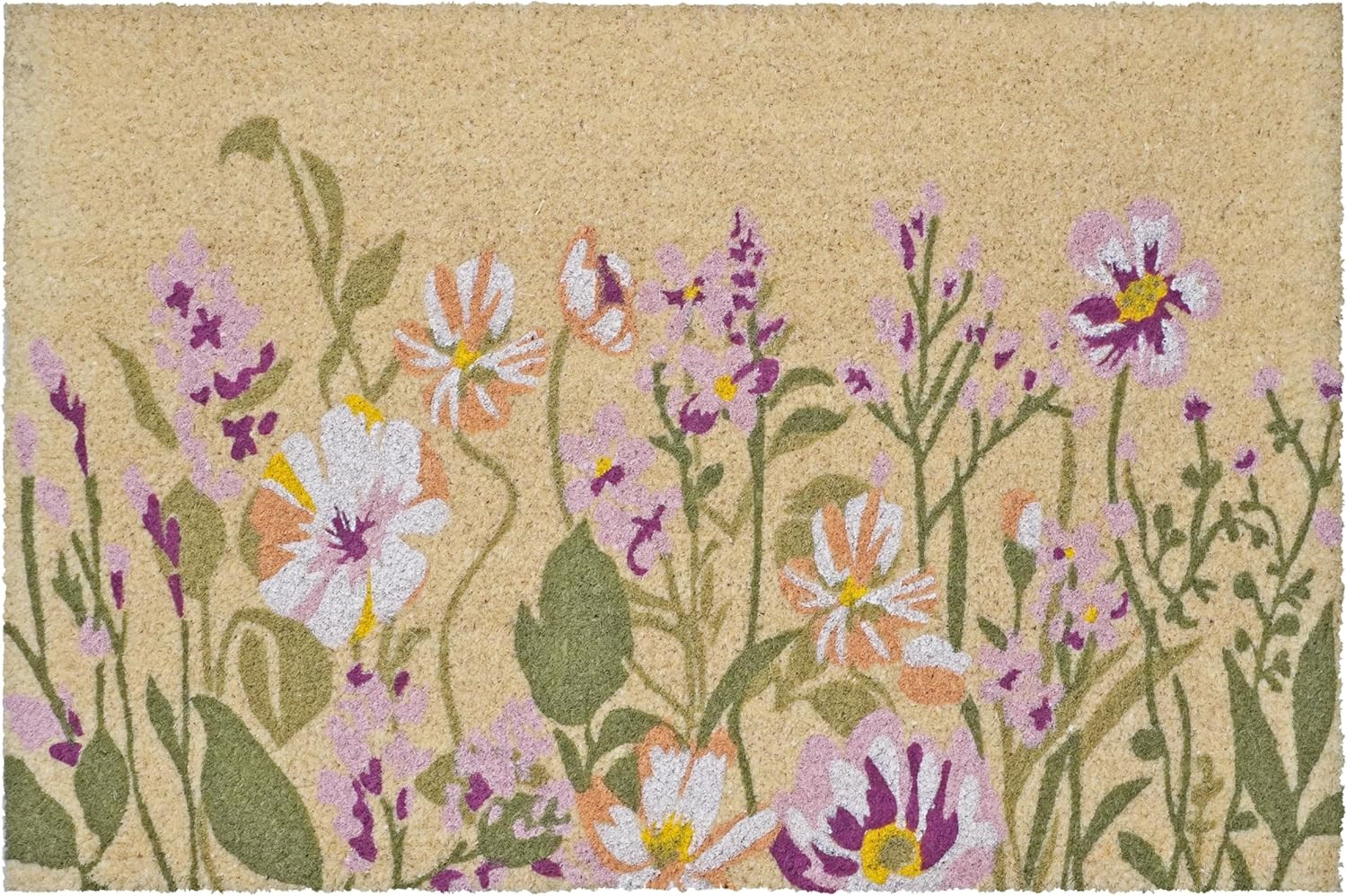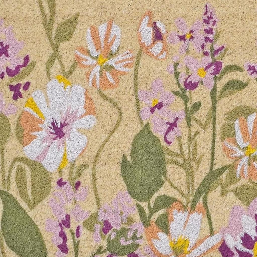 floral outdoor coir door mat, outdoor coir door mat, coir door mat, lavender floral outdoor coir door, 24" X 36" brown green lavender |
