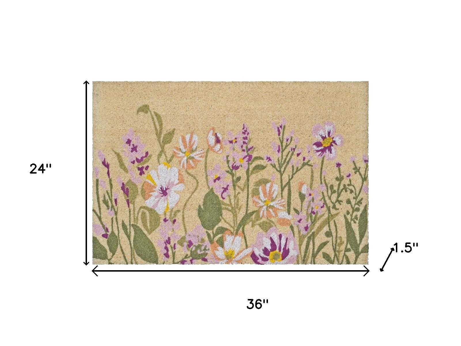 Known for it's extreme durability and ability to withstand heavy foot traffic, this 24-inch x 36-inch brown green and purple floral outdoor coir door mat is an ideal option for the front door or entrance way of your home or business. Crafted from coconut husks, this mat is not only functional but is an an eco-friendly and visually appealing accessory. The naturally bristled texture of coir is an efficient way to clean dirt and mud from shoes and is easy to clean and maintain. 24.00-inch h x 36.00-inch w x 1.50-inch d.