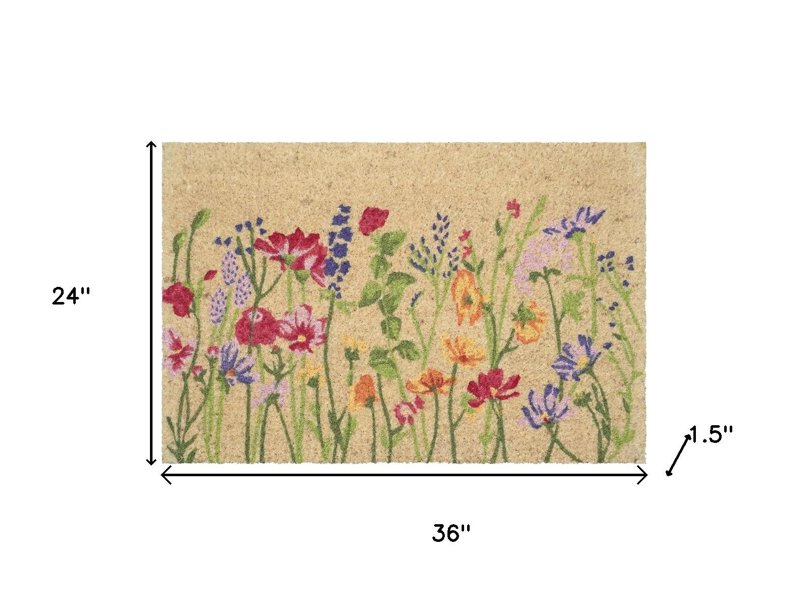 Known for it's extreme durability and ability to withstand heavy foot traffic, this 24-inch x 36-inch brown green and purple floral outdoor coir door mat is an ideal option for the front door or entrance way of your home or business. Crafted from coconut husks, this mat is not only functional but is an an eco-friendly and visually appealing accessory. The naturally bristled texture of coir is an efficient way to clean dirt and mud from shoes and is easy to clean and maintain. 24.00-inch h x 36.00-inch w x 1.50-inch d.