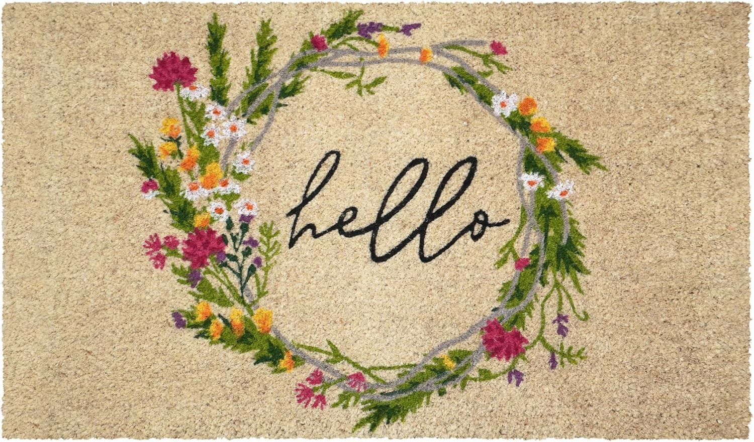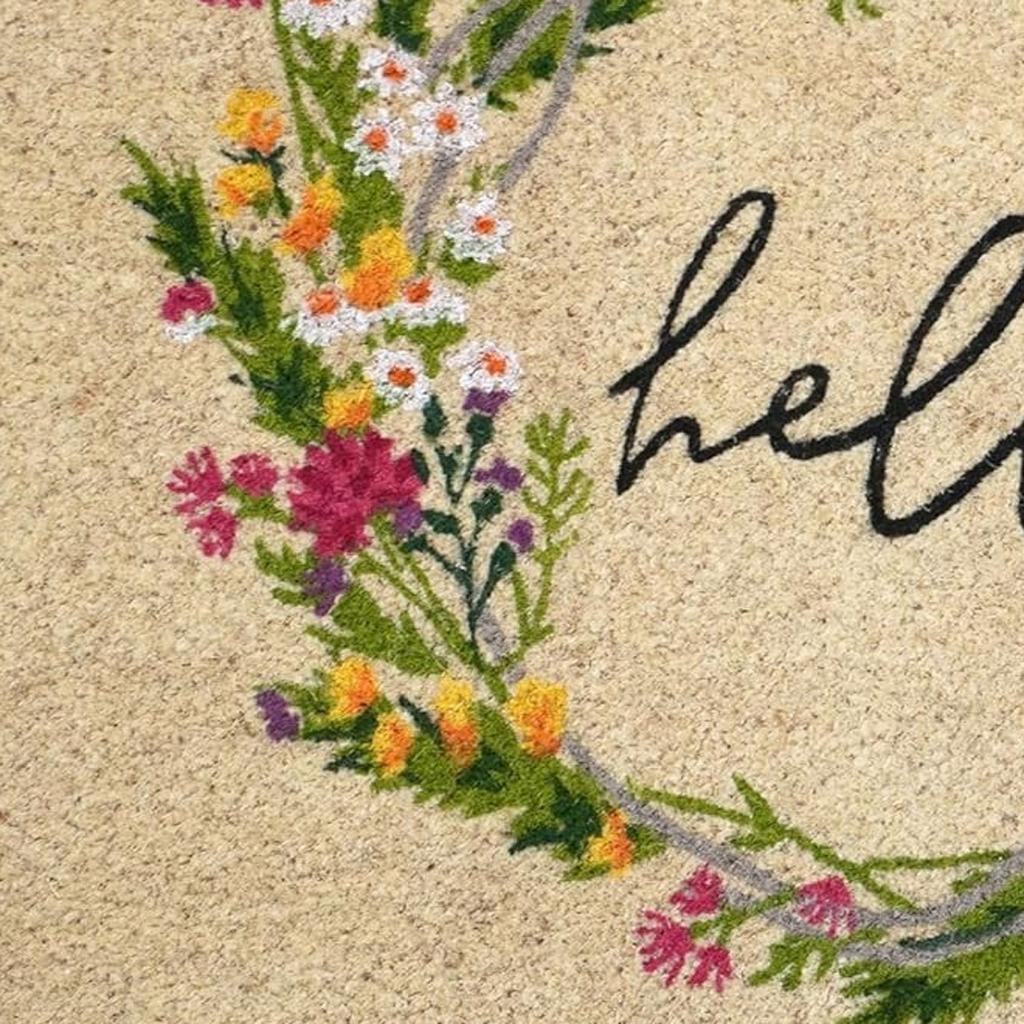hello outdoor coir door mat, outdoor coir door mat, coir door mat, floral hello outdoor coir door, 18" X 30" brown green |