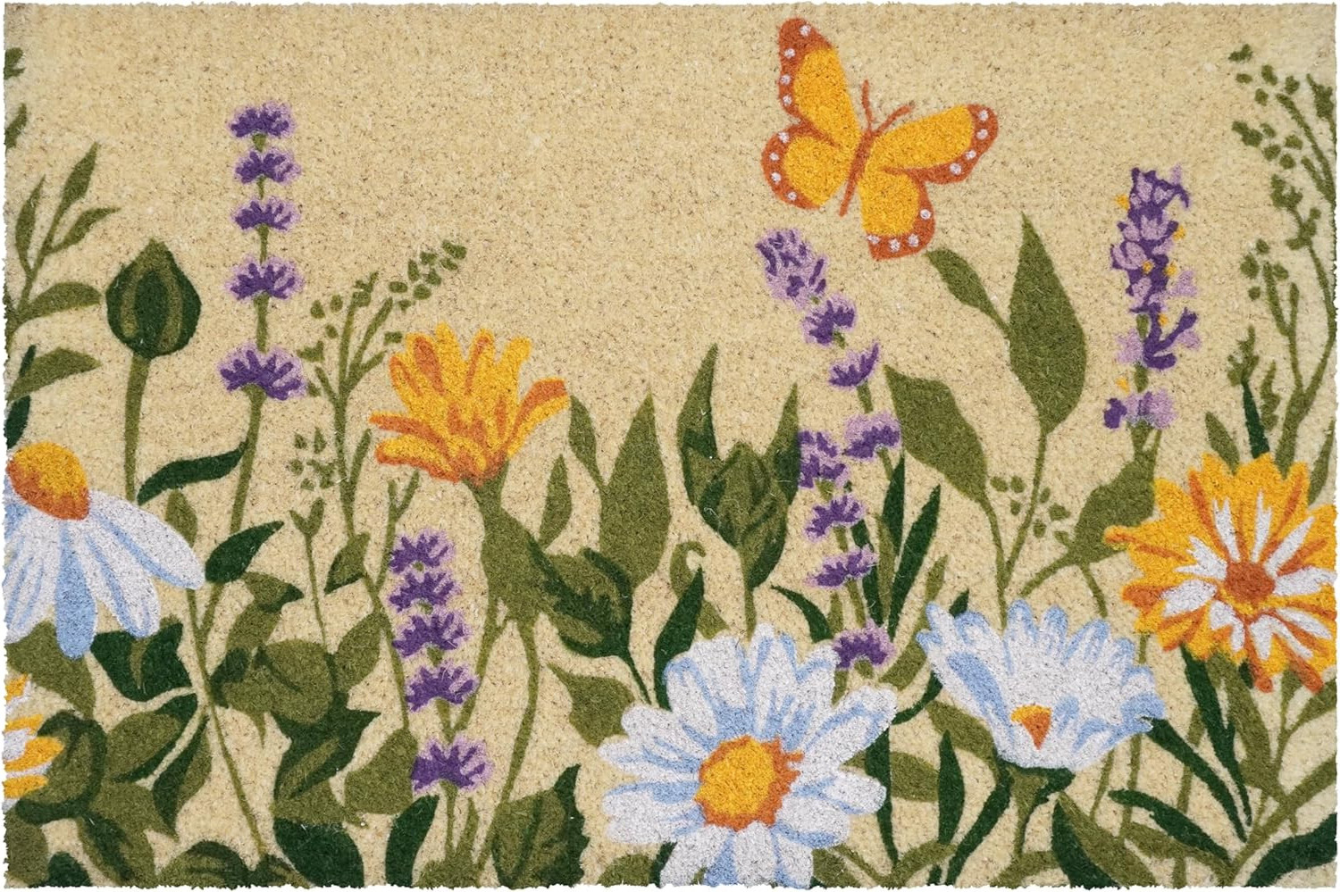 Known for it's extreme durability and ability to withstand heavy foot traffic, this 24-inch x 36-inch brown green and orange floral outdoor coir door mat is an ideal option for the front door or entrance way of your home or business. Crafted from coconut husks, this mat is not only functional but is an an eco-friendly and visually appealing accessory. The naturally bristled texture of coir is an efficient way to clean dirt and mud from shoes and is easy to clean and maintain. 24.00-inch h x 36.00-inch w x 1.50-inch d.