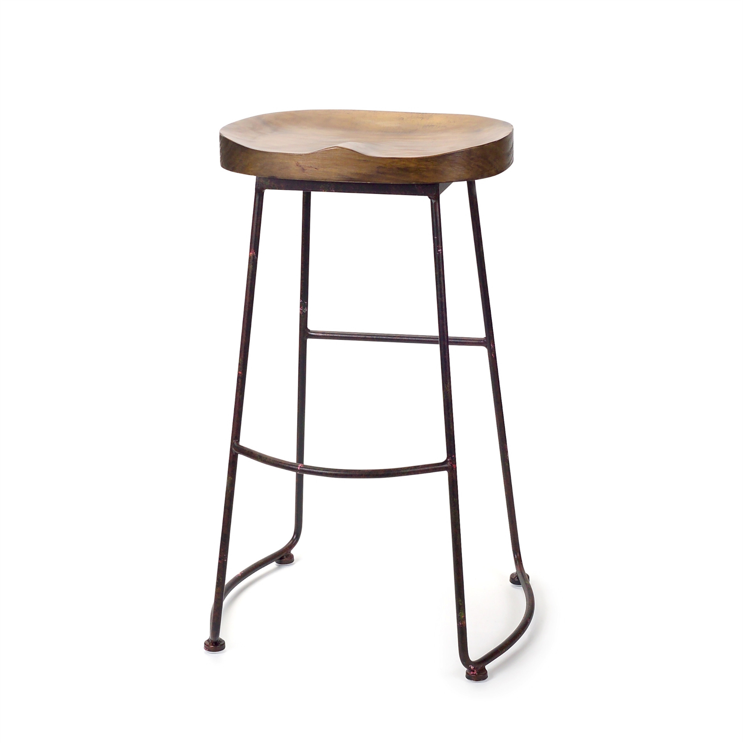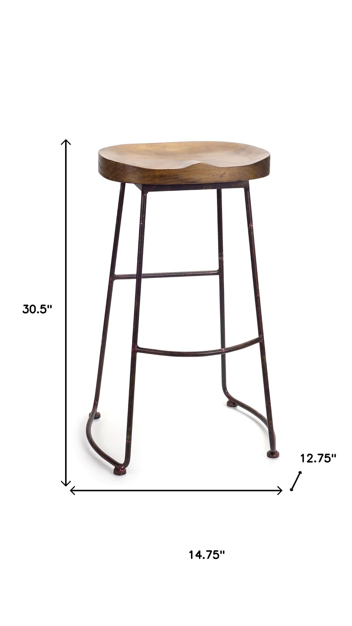 The perfect way to add some extra seating in your home, this 30-inch brown and black wood and steel bar height bar stool will elevate the look and vibe of your room. Featuring a stylish bucket seat design, it combines rustic charm with modern durability. The warm rustic brown manufactured wood tractor saddle style seat provides a comfortable resting place, while the sturdy, modern black steel frame with footrest ensures stability and longevity for years of enjoyment. 30.50-inch h x 14.75-inch w x 12.75-inch d.