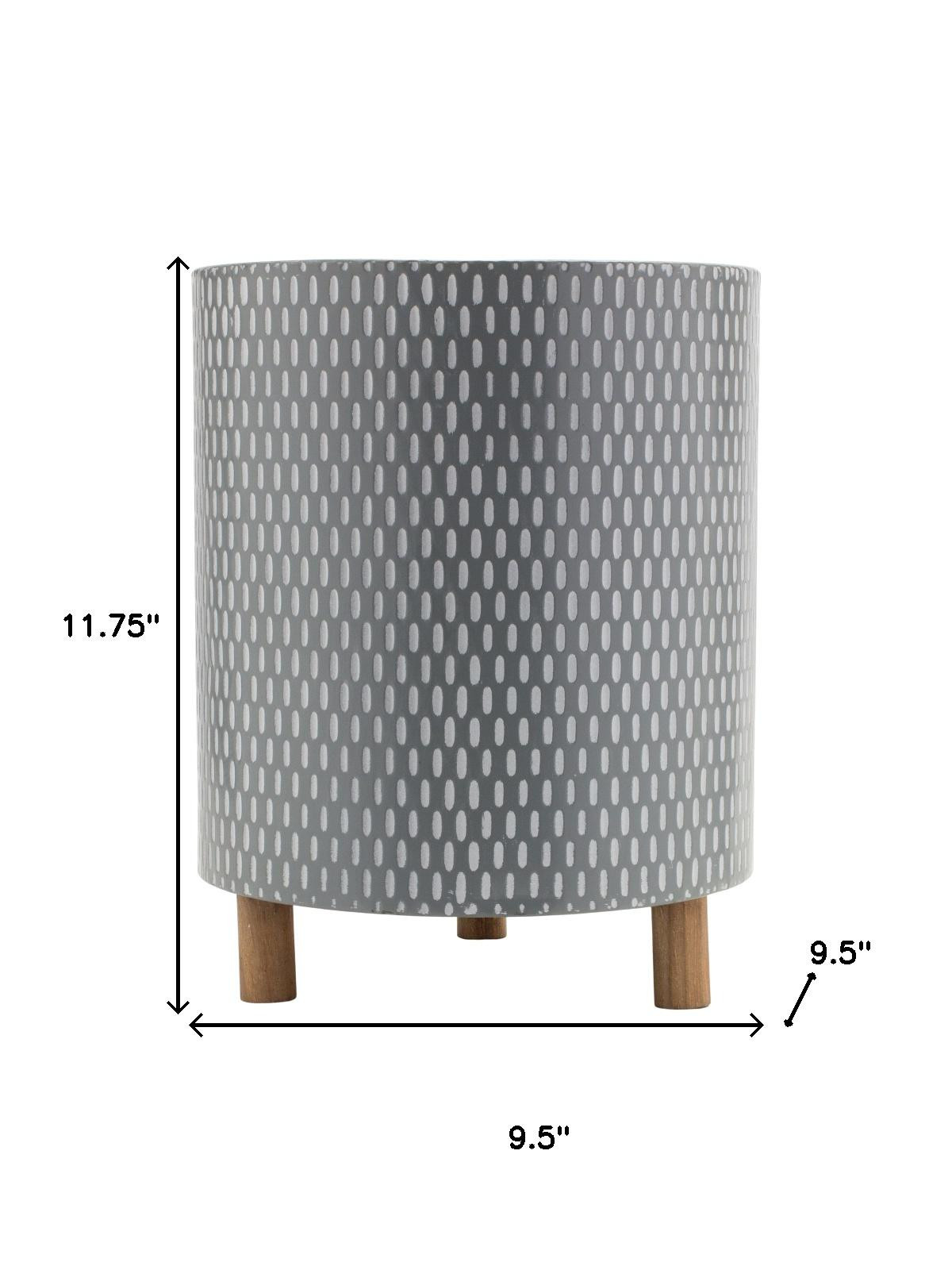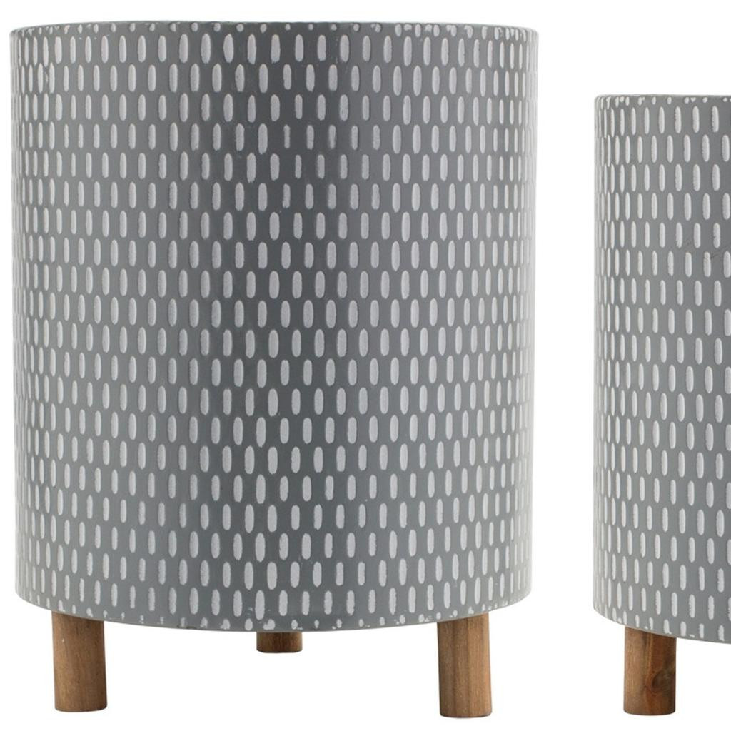 Set of three blue white and gray wood and metal 58 ounce geometric round pot planters enhances your indoor space with a modern touch. Crafted from a combination of wood and metal, these planters offer both durability and aesthetic appeal. The round shape adds a soft contrast to angular decor, making them versatile for various design themes. Each planter holds up to 58 ounces, providing ample space for your favorite plants. With three unique pieces included in the set, you can create an eye-catching display or separate them throughout your home to bring unity to your decor. Their geometric design and vibrant colors will surely brighten any room while showcasing your beloved greenery. 11.75-inch h x 9.50-inch w x 9.50-inch d.