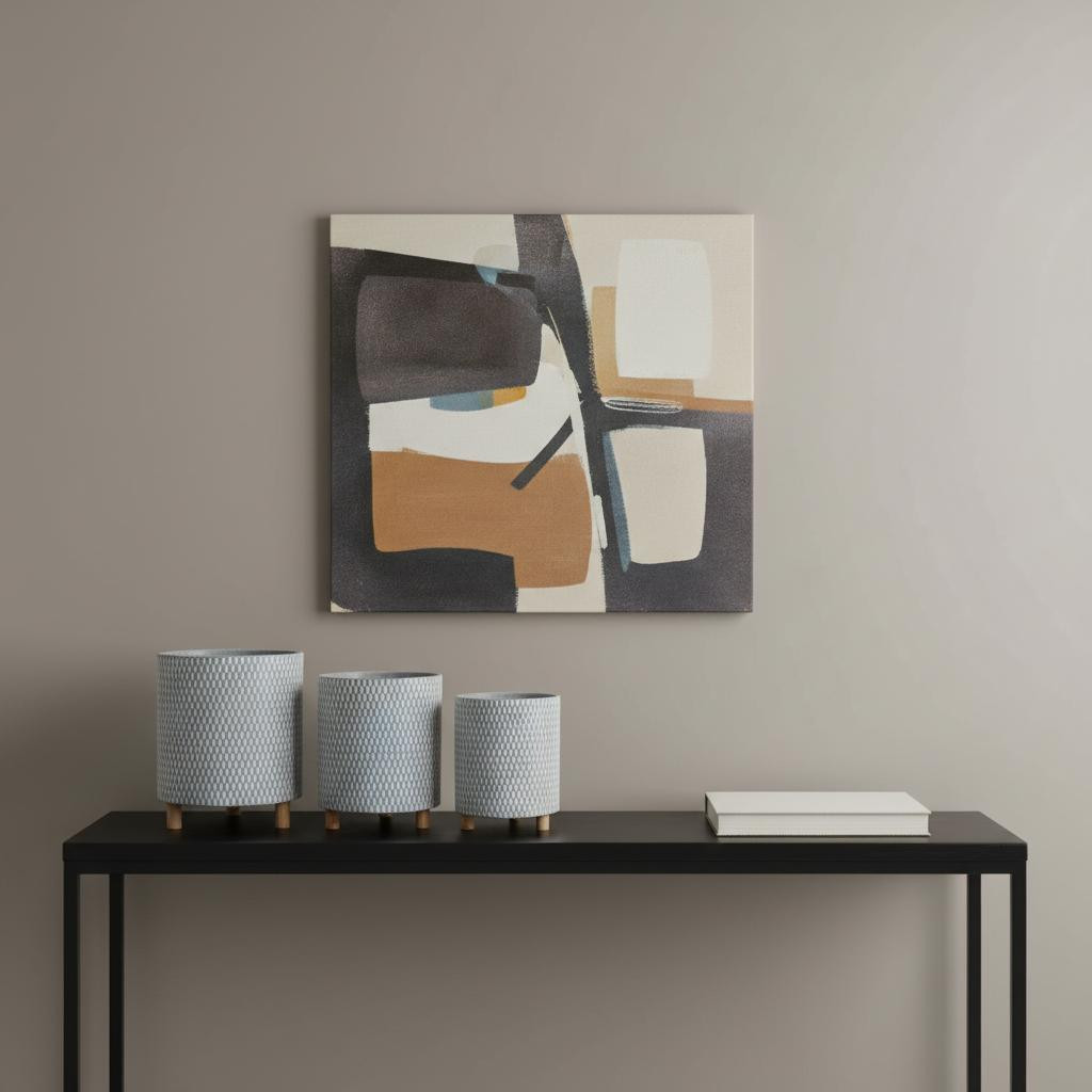 ounce geometric round pot planters, geometric round pot planters, round pot planters, blue white gray wood, wood metal ounce geometric |