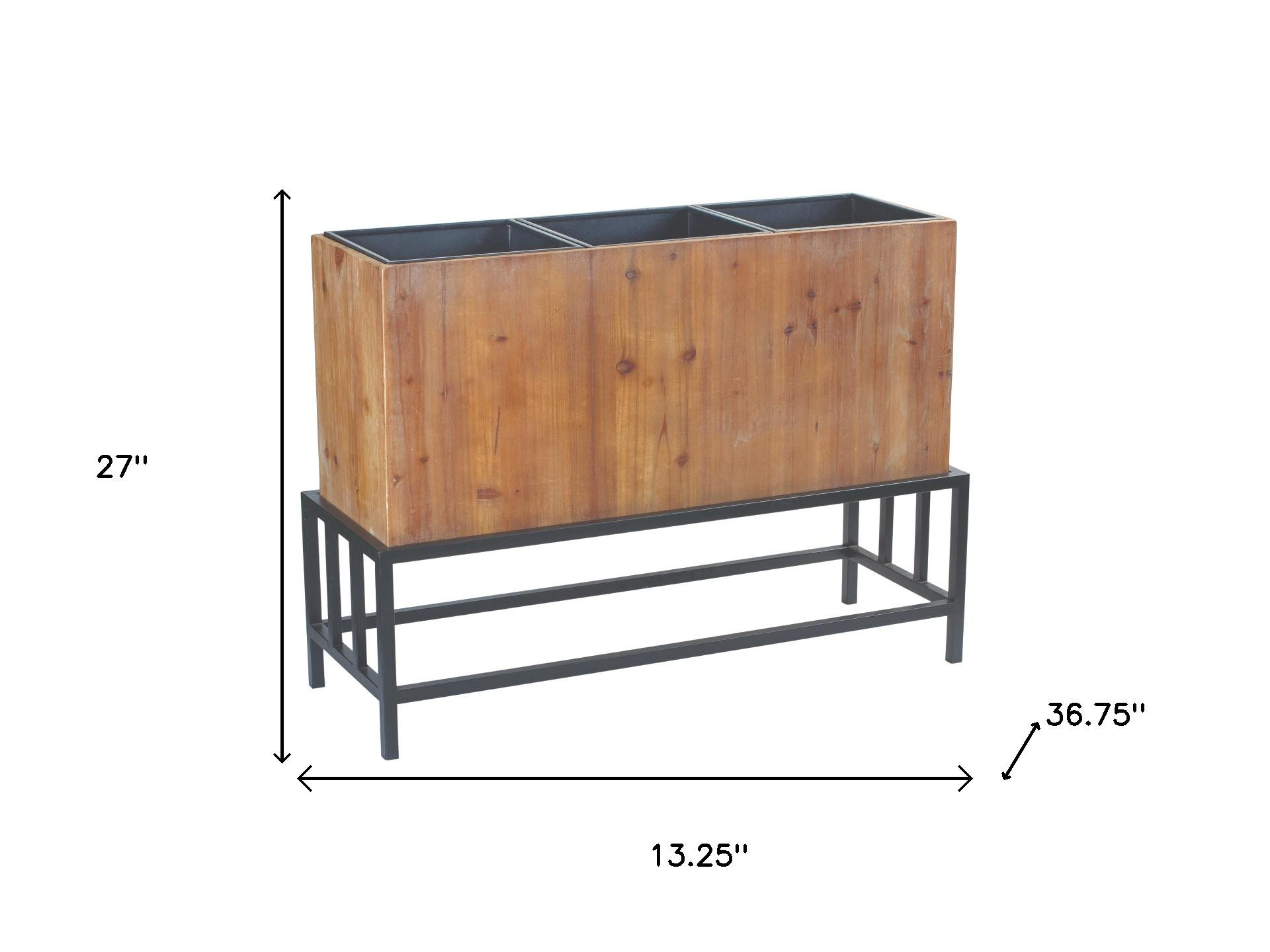 The black and natural metal 444 ounce rectangular elevated planter adds a touch of sophistication to your indoor gardening. Designed with an elevated structure, this planter allows for easier access to your plants while minimizing back strain. Its sleek rectangular shape provides ample space for a variety of plants, making it a versatile addition to any décor. Crafted from durable metal, it ensures longevity while enhancing your interior with its modern aesthetic. The combination of black and natural finishes complements various design styles, seamlessly blending into your home environment. This planter is ideal for showcasing your favorite herbs, flowers, or succulents, turning your living space into a vibrant green oasis. Enjoy the beauty and functionality this piece brings to your home. 27.00-inch h x 36.75-inch w x 13.25-inch d.