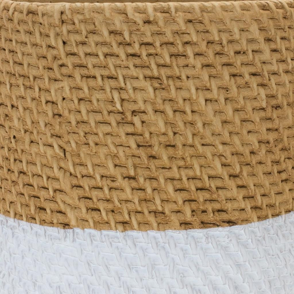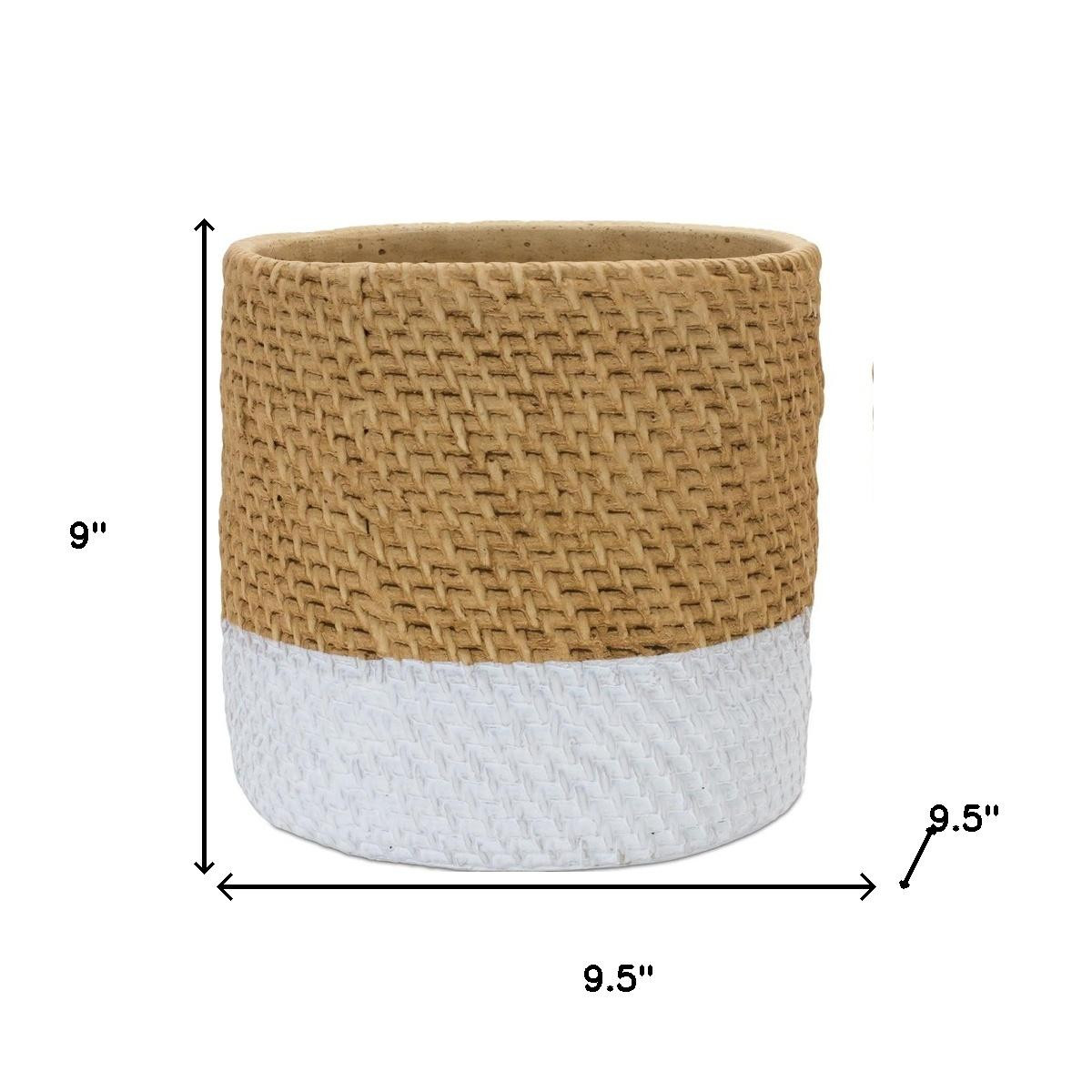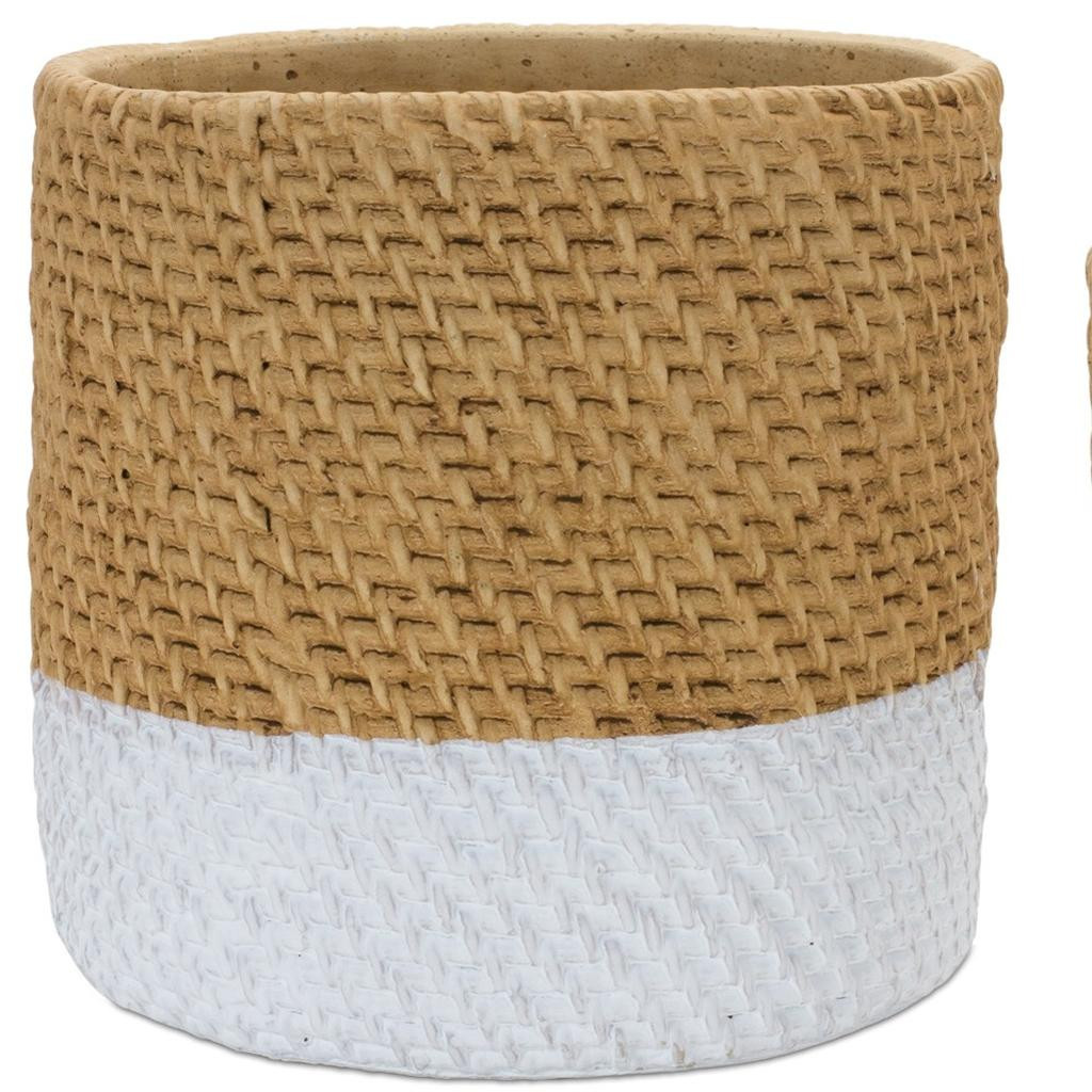 Set of two brown and white cement 22 ounce two toned round pot planters is the perfect addition to elevate your indoor gardening. Crafted from durable cement, these planters offer a stylish two-toned finish that complements any decor. Their round shape provides a classic look, making them ideal for displaying your favorite plants. Each planter has a capacity of 22 ounces, ensuring ample space for roots to grow and thrive. With two planters included, you can create beautiful arrangements or simply enjoy them as individual statement pieces. These pot planters are designed to enhance your living space while promoting a serene atmosphere, making them a great choice for plant lovers and home decorators alike. 9.00-inch h x 9.50-inch w x 9.50-inch d.