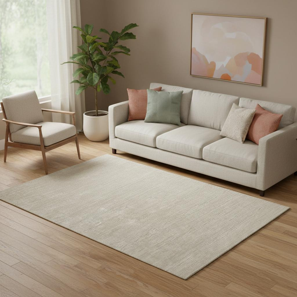 Add some artistry to your room with this 5-foot x 8-foot ivory hand woven area rug. Ideal for spaces with kids and pets, this rug is stain resistant to help repel dirt and spilled liquids. Crafted by skilled artisans, this hand woven rug is genuine and unique. No two will be exactly alike. Built to last, this rug crafted from nylon fibers is known for its durability and long lasting appeal. Rugs are a great way to showcase your style, hide imperfections, warm your home and reduce noise. This larger sized, casual styled rug is ready to create a focal point or statement piece in your room. 60.00-inch h x 96.00-inch w x 0.43-inch d.