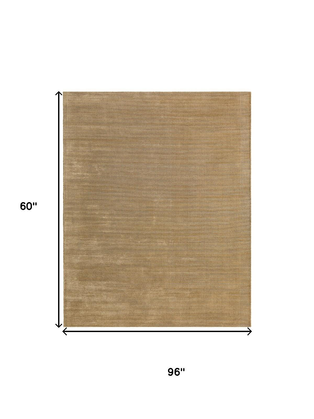 Add some artistry to your room with this 5-foot x 8-foot gold hand woven area rug. Ideal for spaces with kids and pets, this rug is stain resistant to help repel dirt and spilled liquids. Crafted by skilled artisans, this hand woven rug is genuine and unique. No two will be exactly alike. Built to last, this rug crafted from nylon fibers is known for its durability and long lasting appeal. Rugs are a great way to showcase your style, hide imperfections, warm your home and reduce noise. This larger sized, casual styled rug is ready to create a focal point or statement piece in your room. 60.00-inch h x 96.00-inch w x 0.43-inch d.