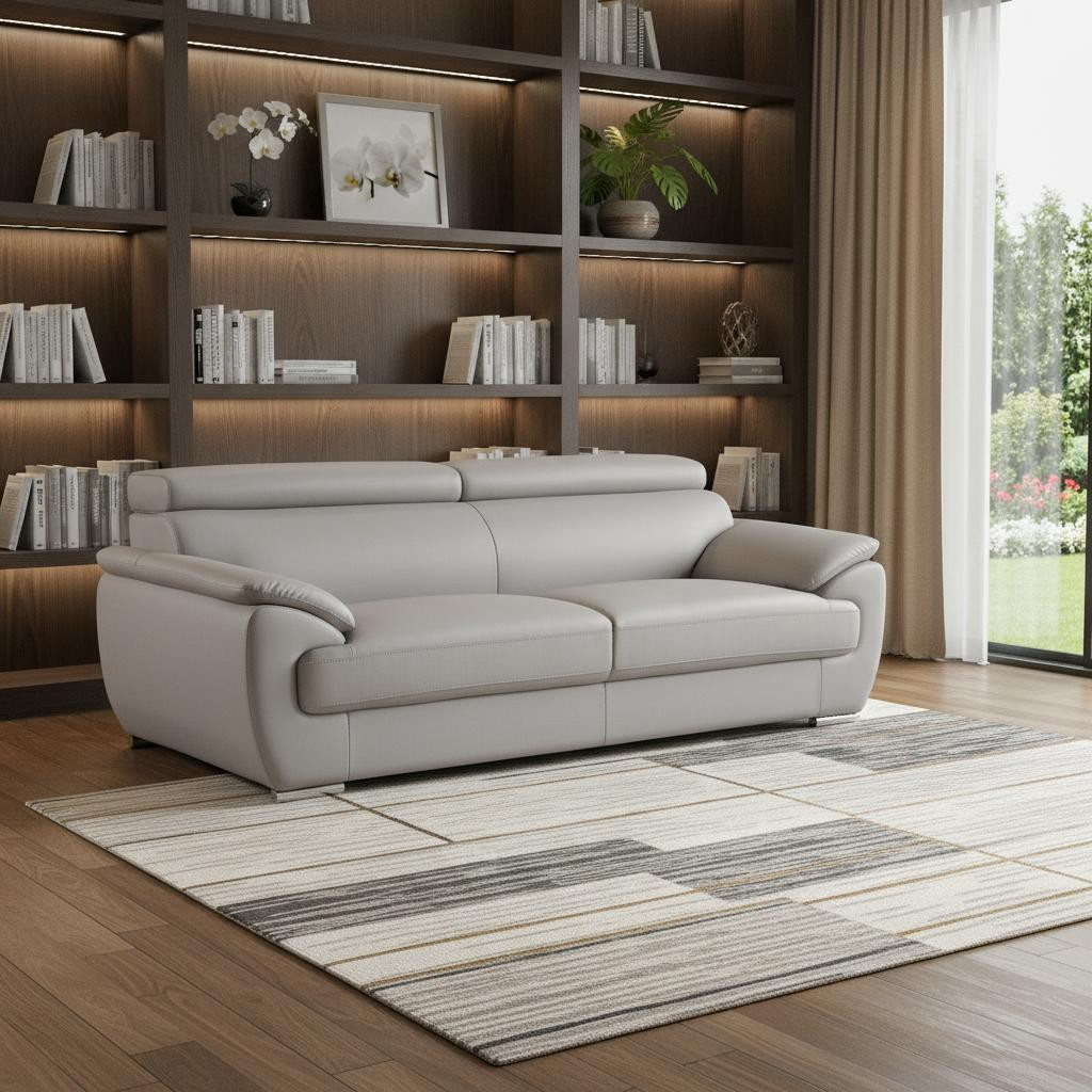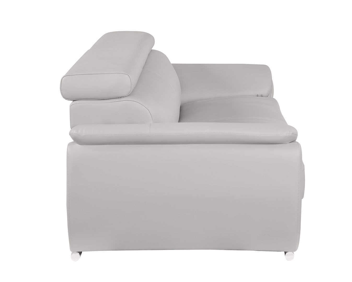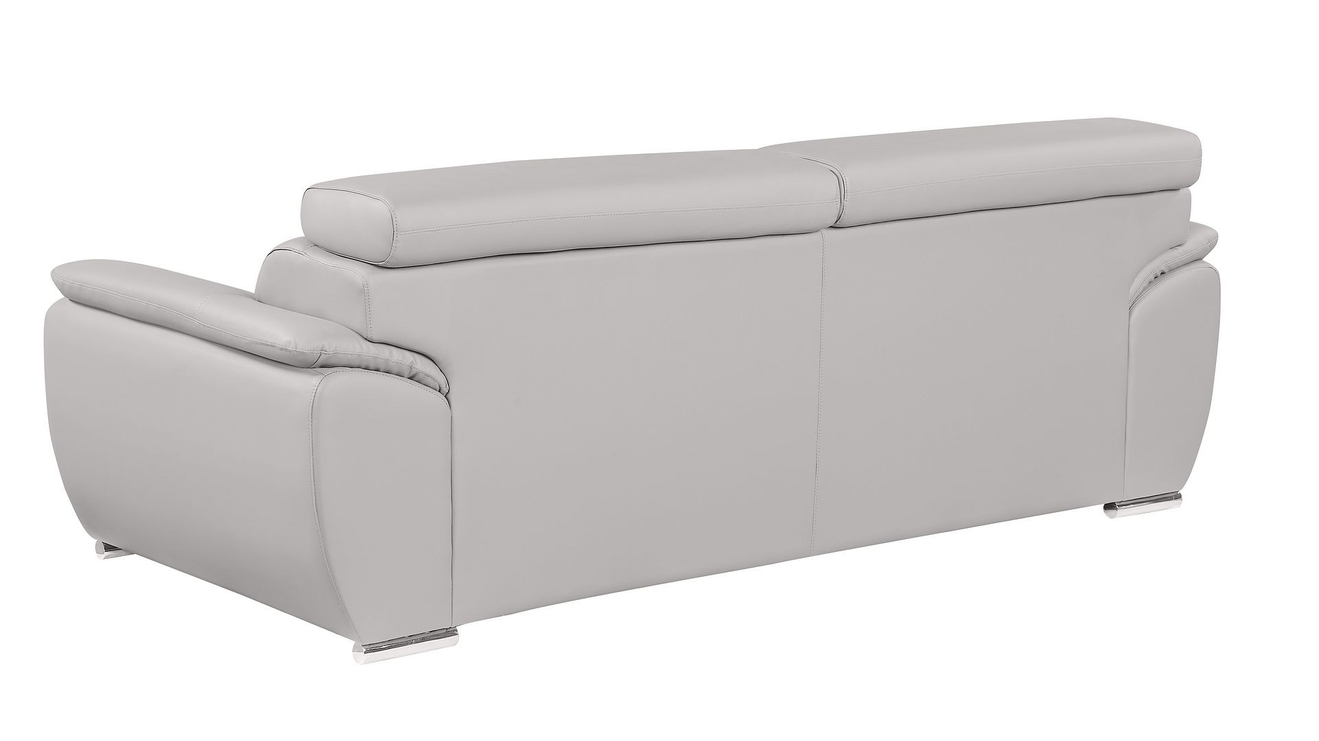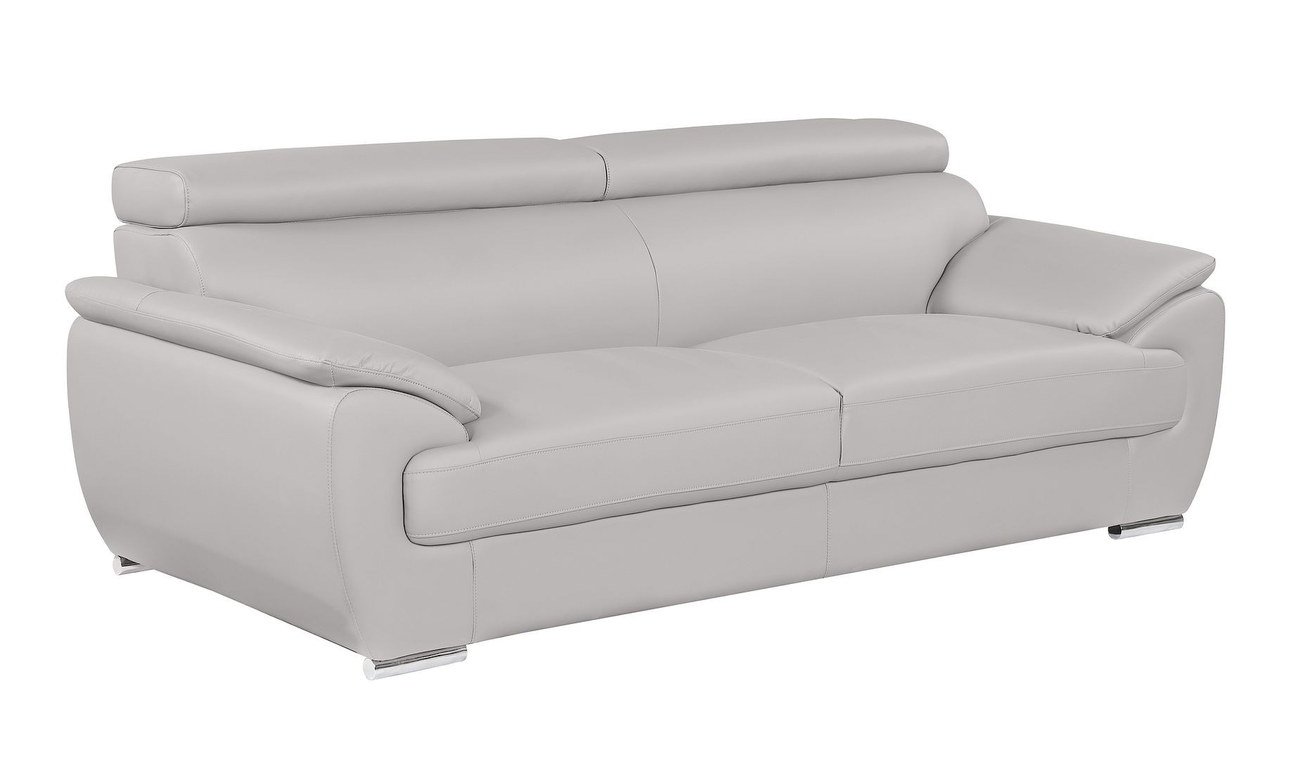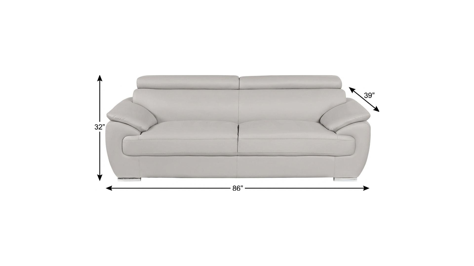 Superior construction from fabulously soft and high grade leather gives this 86-inch light gray top grain leather sofa a leg up on the competition. The premium leather used makes your lounging luxuriously comfortable and adds an elegant appeal to your space. Solid colors give you lots of decorative options and are easy to work into your decor scheme. Pocket spring construction gives this piece strong support and makes it comfortable to sit even for long periods of time. Round arms offer a comfy place to rest. Silver metal legs effortlessly elevate the room and add a touch of contemporary design. Built to last, this sofa will be a great centerpiece for your room. 32.00-inch h x 86.00-inch w x 39.00-inch d.