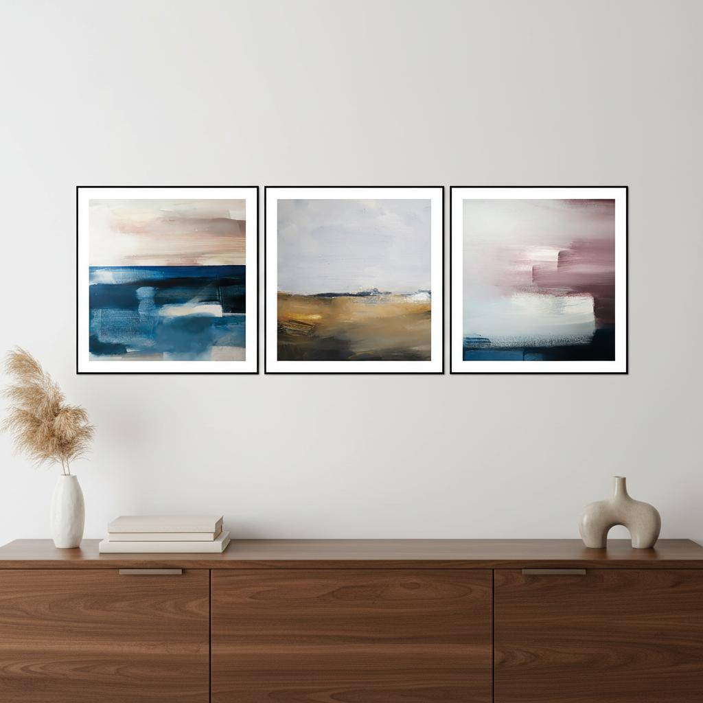 This set of three isla black framed minimalistic wall art will add a beautiful decorative accent to your decor. Reproduced for you on canvas, this hanging decorative accent will be a trendy and fashionable way to dress your walls. Hang on your wall to add some up to date fashion and decoration. Utilize this opportunity to create a focal point in the room with this fabulous wall decor option. 28.00-inch h x 28.00-inch w x 1.00-inch d.