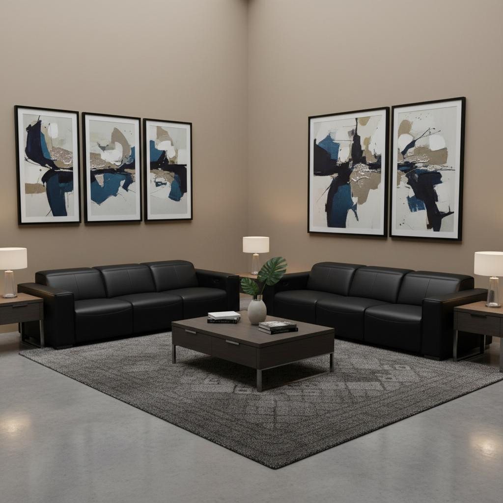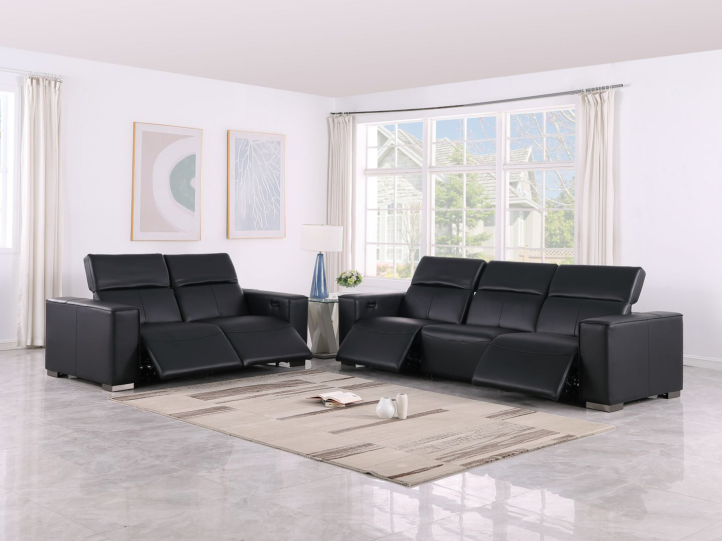 Step into a world of unparalleled seating comfort with our remarkable two piece black genuine leather five person seating set. Prepare to enter the realm of ultimate relaxation with this reclining sofa that offers unparalleled comfort and luxurious lounging. Upholstered in supple and luxurious genuine leather, this set has a rich and warm appeal. Solid or two-tone colorations allow you to blend easily with most any decor. Sinuous springs seat construction provides excellent comfort by offering a responsive and supportive seating experience. The inclusion of a loveseat into your mix allows a fashionable seating option in a compact design. 41.00-inch h x 110.00-inch w x 42.50-inch d.