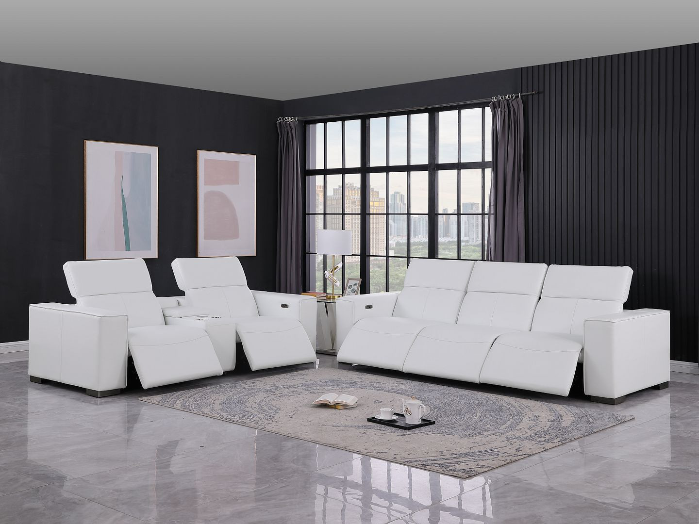 When it comes to indoor seating, this two piece white genuine leather five person seating set has everything you need to get set and ready to relax. Prepare to enter the realm of ultimate relaxation with this reclining sofa that offers unparalleled comfort and luxurious lounging. Upholstered in supple and luxurious genuine leather, this set has a rich and warm appeal. Solid or two-tone colorations allow you to blend easily with most any decor. Sinuous springs seat construction provides excellent comfort by offering a responsive and supportive seating experience. The inclusion of a loveseat into your mix allows a fashionable seating option in a compact design. 41.00-inch h x 110.00-inch w x 42.50-inch d.