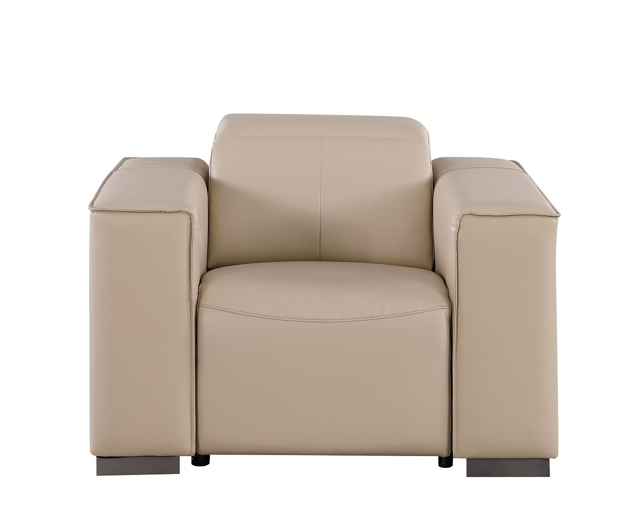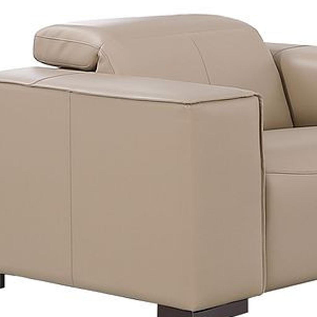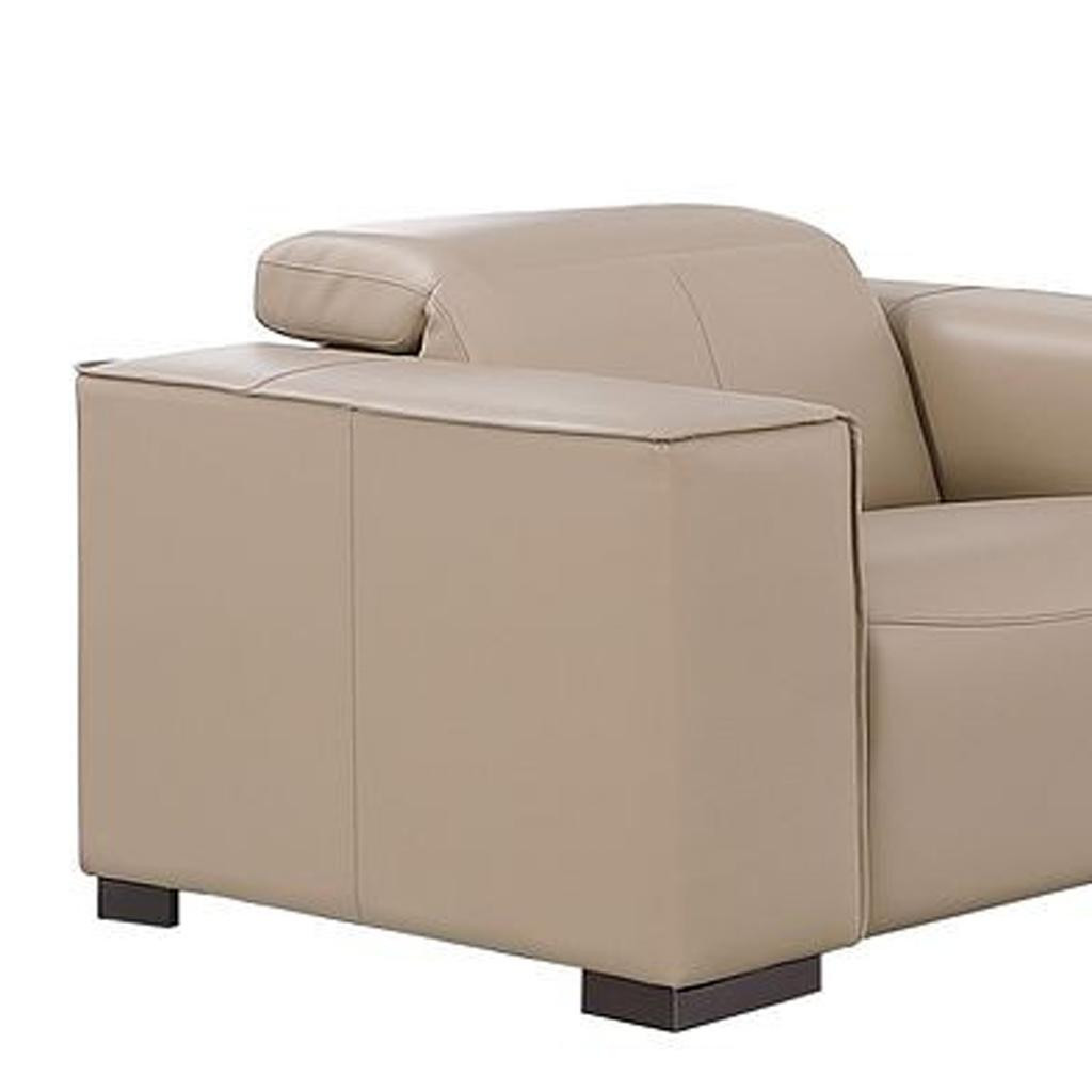 Prepare to amaze even the most discerning critics with our two piece beige genuine leather five person seating set. The reclining sofa will transform your space into a cozy haven for leisurely activities, movie nights, or even quick power naps. Upholstered in supple and luxurious genuine leather, this set has a rich and warm appeal. Solid or two-tone colorations allow you to blend easily with most any decor. The presence of sinuous springs seat construction helps distribute weight evenly, reducing pressure points. The inclusion of a loveseat into your mix allows a fashionable seating option in a compact design. 41.00-inch h x 110.00-inch w x 42.50-inch d.