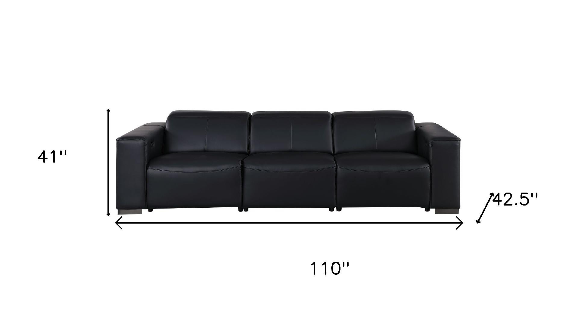 Step into a world of unparalleled seating comfort with our remarkable two piece black genuine leather five person seating set. Prepare to enter the realm of ultimate relaxation with this reclining sofa that offers unparalleled comfort and luxurious lounging. Upholstered in supple and luxurious genuine leather, this set has a rich and warm appeal. Solid or two-tone colorations allow you to blend easily with most any decor. The presence of sinuous springs seat construction helps distribute weight evenly, reducing pressure points. The inclusion of a loveseat into your mix allows a fashionable seating option in a compact design. 41.00-inch h x 110.00-inch w x 42.50-inch d.