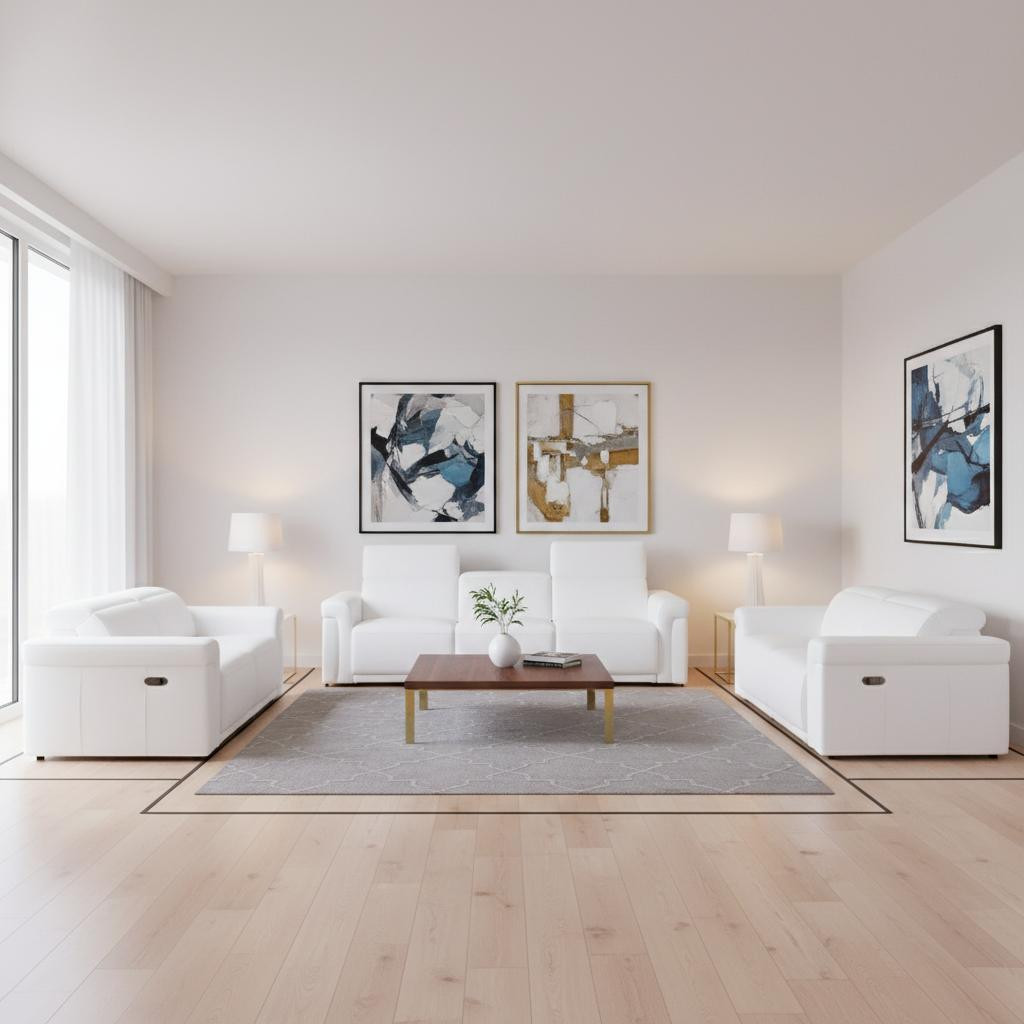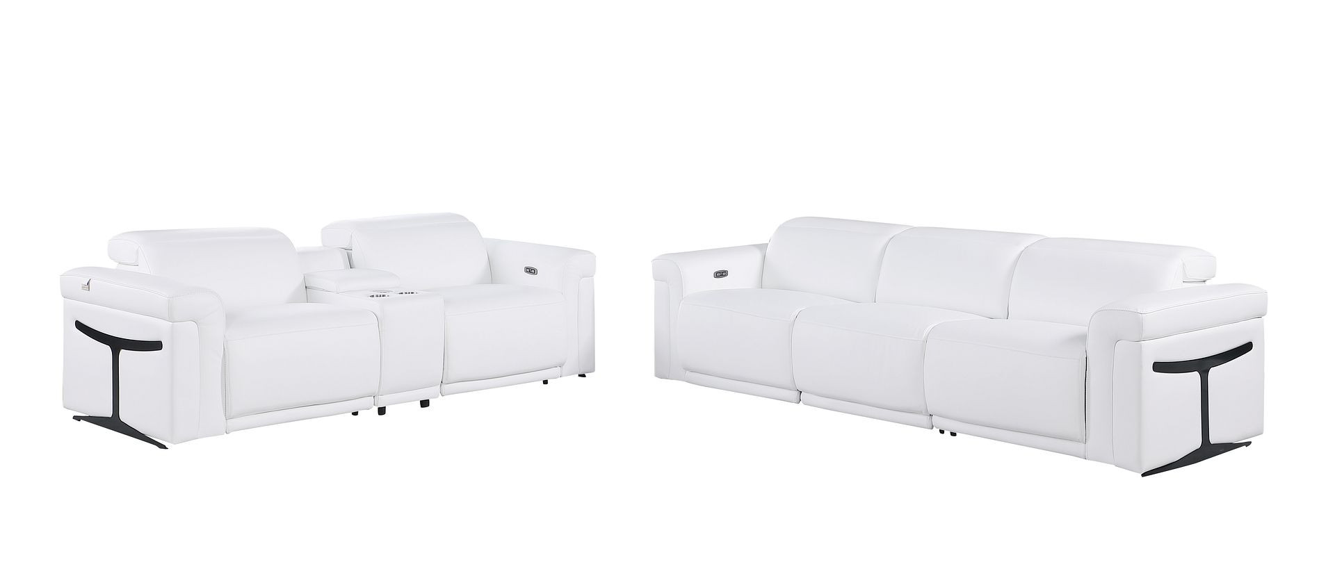 Step into a world of unparalleled seating comfort with our remarkable two piece white italian leather five person seating set. The reclining sofa will transform your space into a cozy haven for leisurely activities, movie nights, or even quick power naps. Upholstered in supple and luxurious italian leather, this set has a rich and warm appeal. Solid or two-tone colorations allow you to blend easily with most any decor. Sinuous springs seat construction provides excellent comfort by offering a responsive and supportive seating experience. The inclusion of a loveseat into your mix allows a fashionable seating option in a compact design. 39.00-inch h x 100.00-inch w x 41.00-inch d.