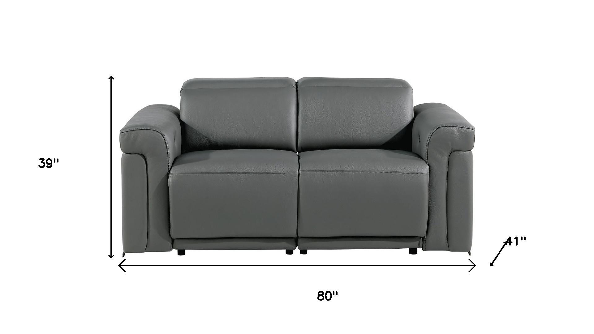 When it comes to indoor seating, this two piece dark gray italian leather five person seating set has everything you need to get set and ready to relax. The reclining sofa will transform your space into a cozy haven for leisurely activities, movie nights, or even quick power naps. Upholstered in supple and luxurious italian leather, this set has a rich and warm appeal. Solid or two-tone colorations allow you to blend easily with most any decor. The presence of sinuous springs seat construction helps distribute weight evenly, reducing pressure points. The inclusion of a loveseat into your mix allows a fashionable seating option in a compact design. 39.00-inch h x 80.00-inch w x 41.00-inch d.