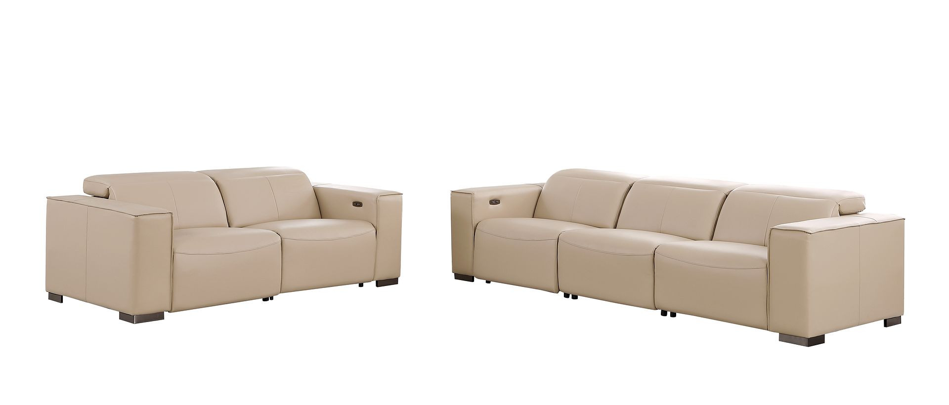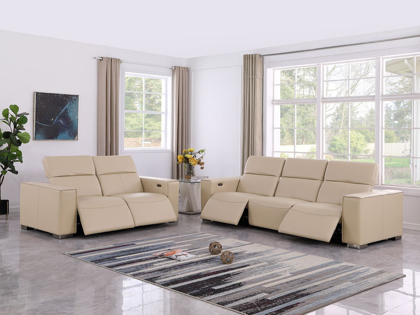 Prepare to amaze even the most discerning critics with our two piece beige genuine leather five person seating set. The reclining sofa will transform your space into a cozy haven for leisurely activities, movie nights, or even quick power naps. Upholstered in supple and luxurious genuine leather, this set has a rich and warm appeal. Solid or two-tone colorations allow you to blend easily with most any decor. The presence of sinuous springs seat construction helps distribute weight evenly, reducing pressure points. The inclusion of a loveseat into your mix allows a fashionable seating option in a compact design. 41.00-inch h x 110.00-inch w x 42.50-inch d.