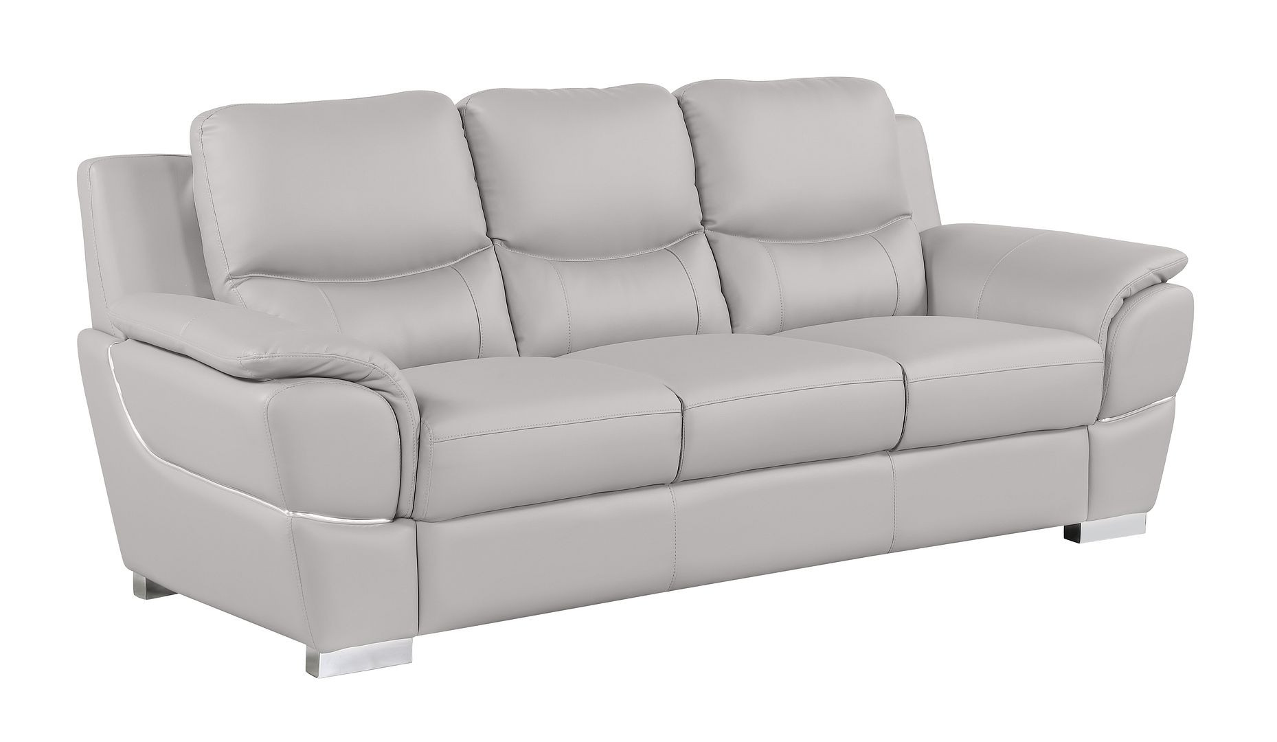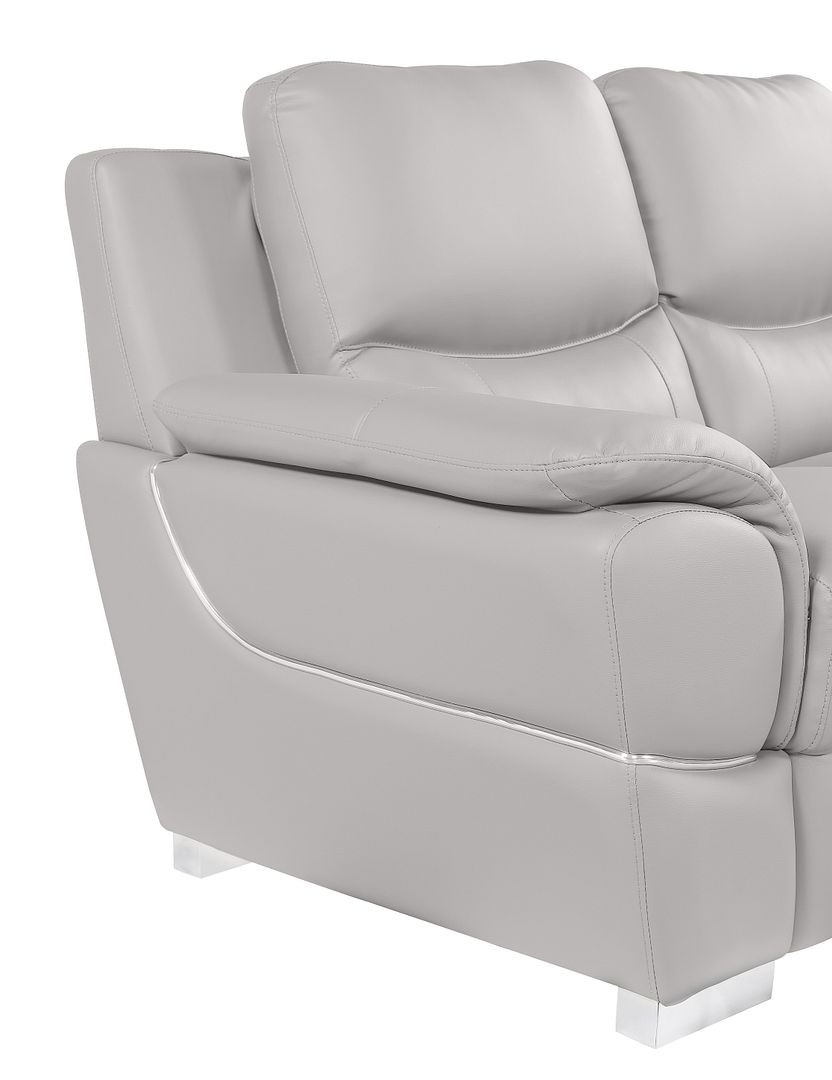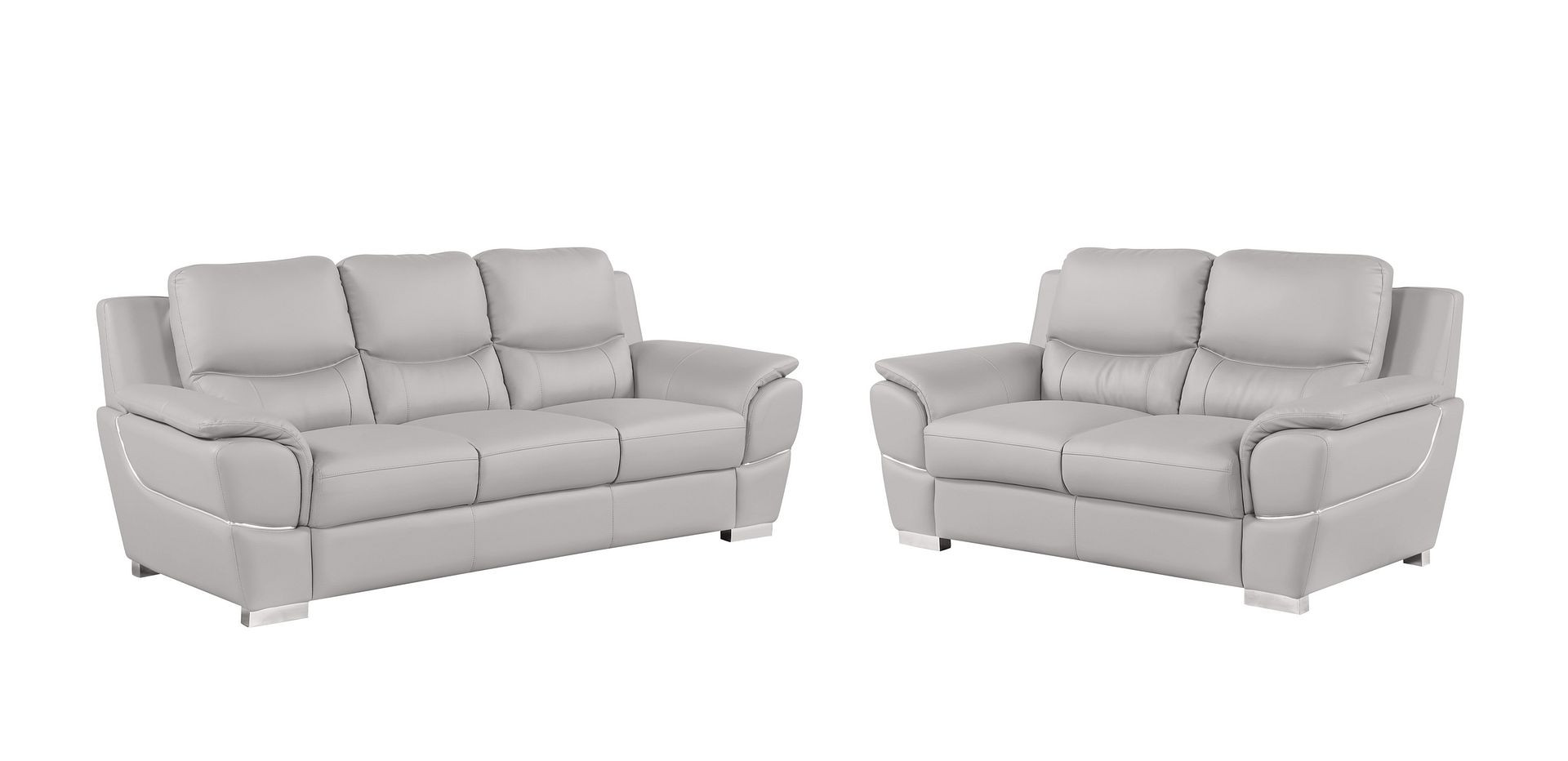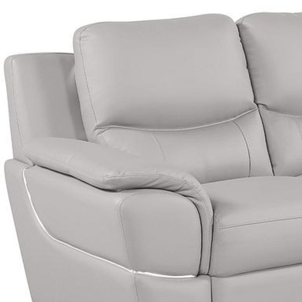 When it comes to indoor seating, this two piece light gray leather five person seating set has everything you need to get set and ready to relax. Upholstered in supple and luxurious leather, this set has a rich and warm appeal. Solid or two-tone colorations allow you to blend easily with most any decor. The presence of sinuous springs seat construction helps distribute weight evenly, reducing pressure points. The inclusion of a loveseat into your mix allows a fashionable seating option in a compact design. 35.00-inch h x 85.00-inch w x 34.00-inch d.